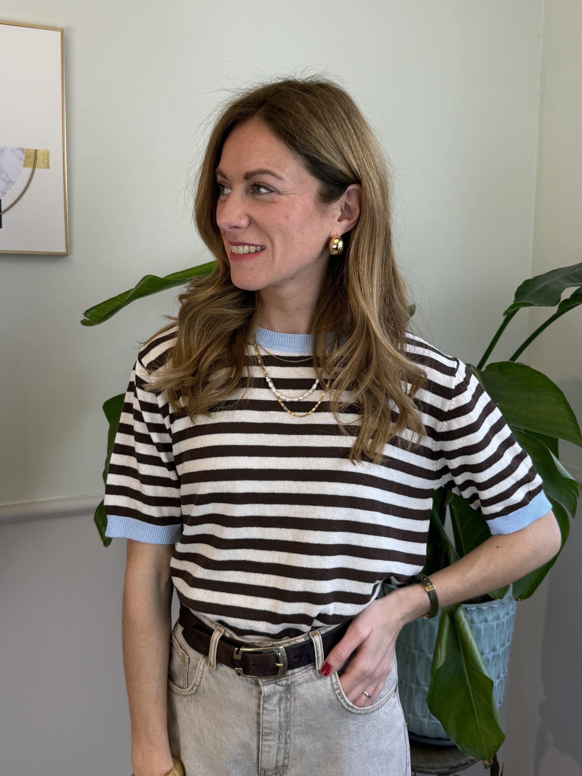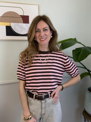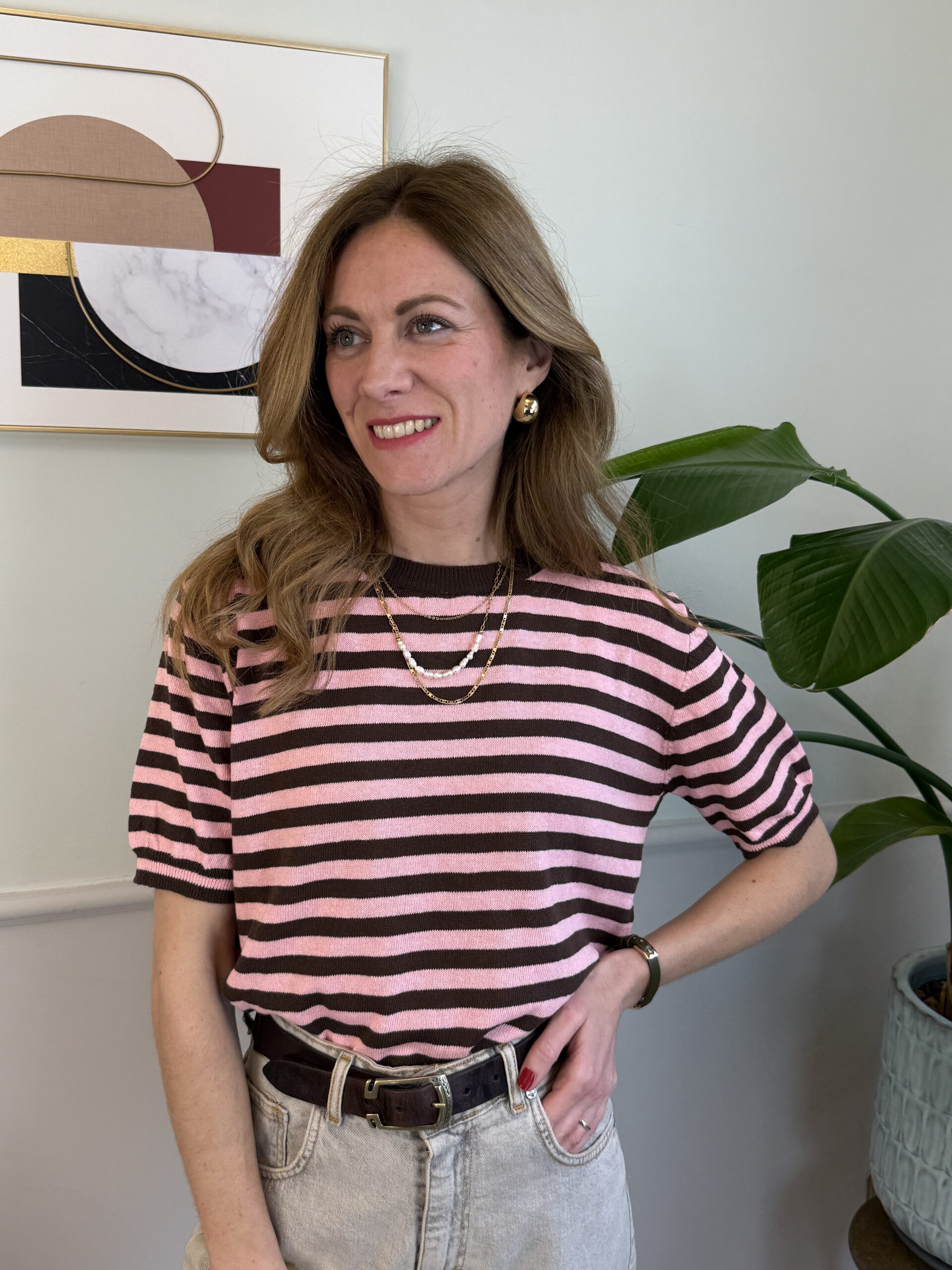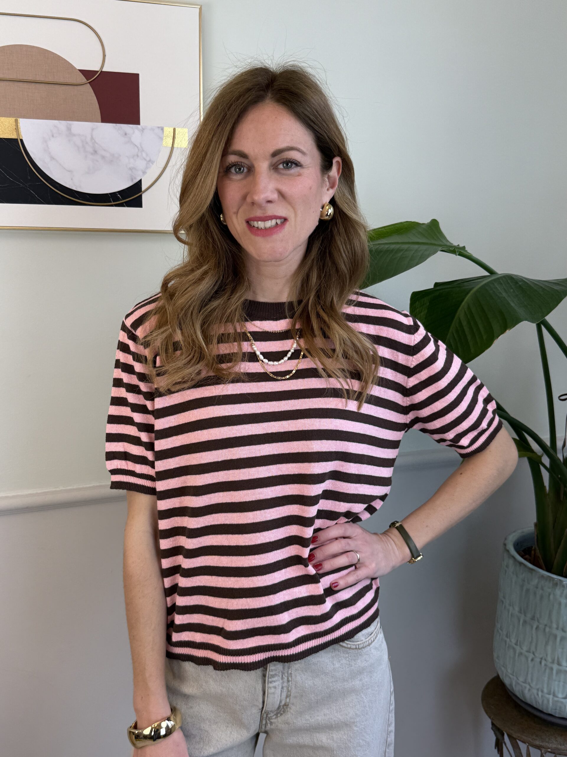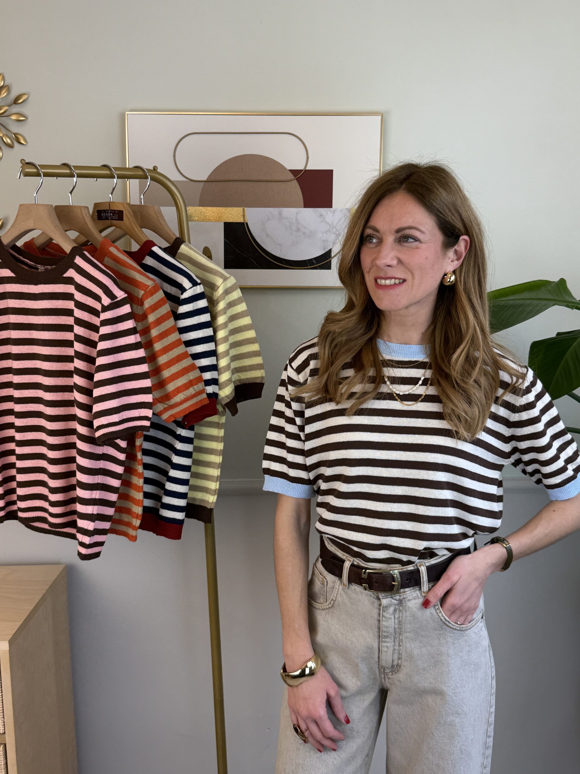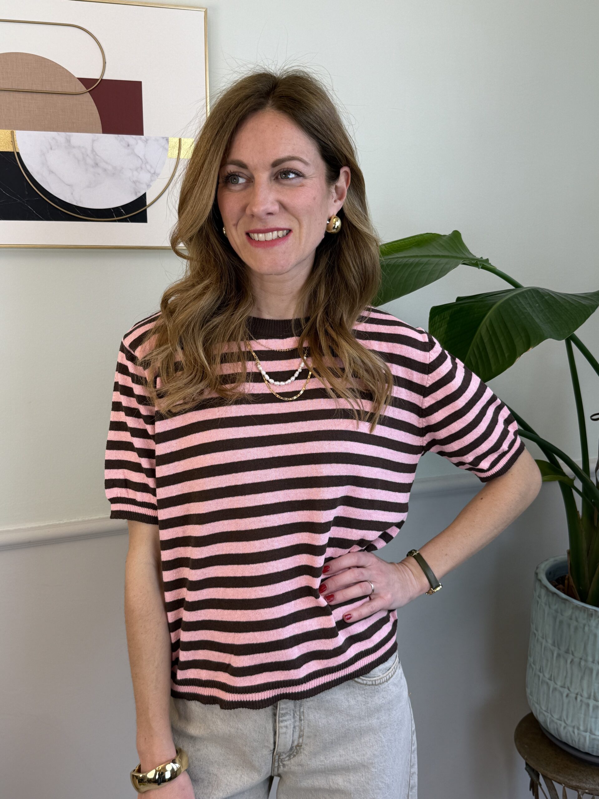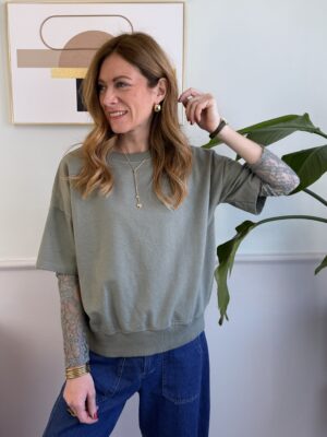 Maglia rigata a manica corta girocollo, modello scatolina.
