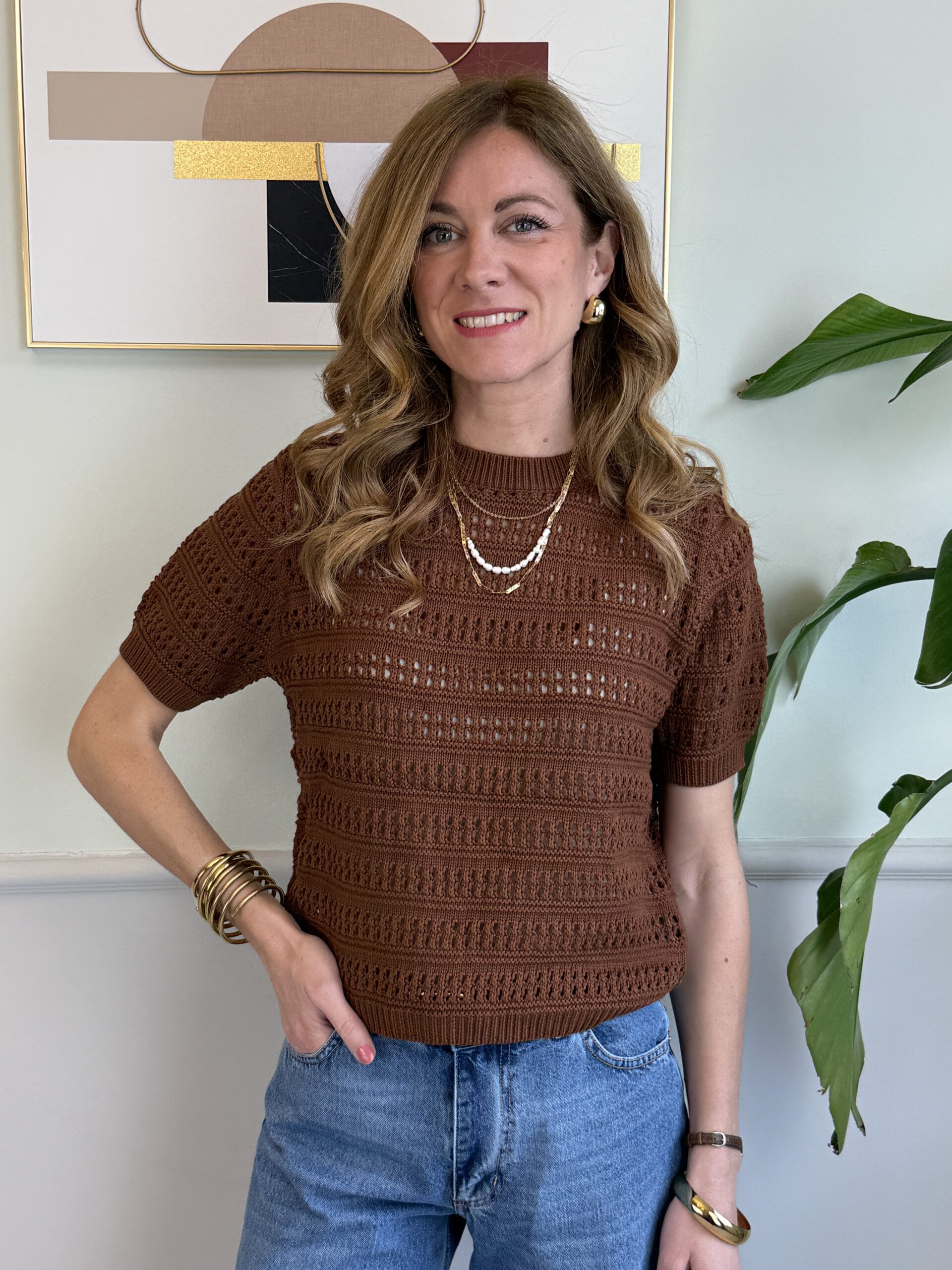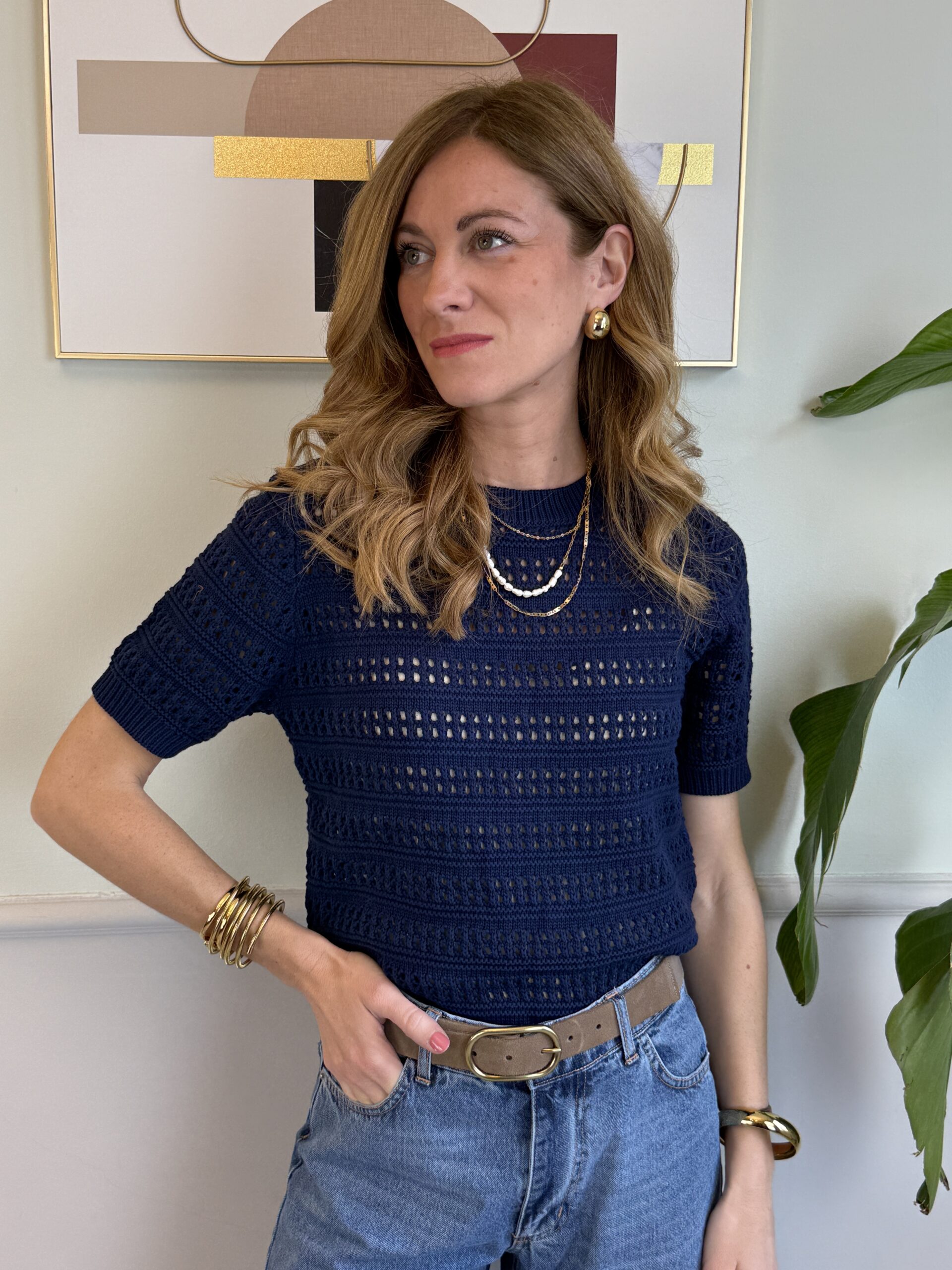 Maglioncino crochet a maniche corte.
