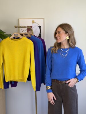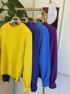 Maxi pull morbidissimo girocollo a righe, con manica a palloncino.
