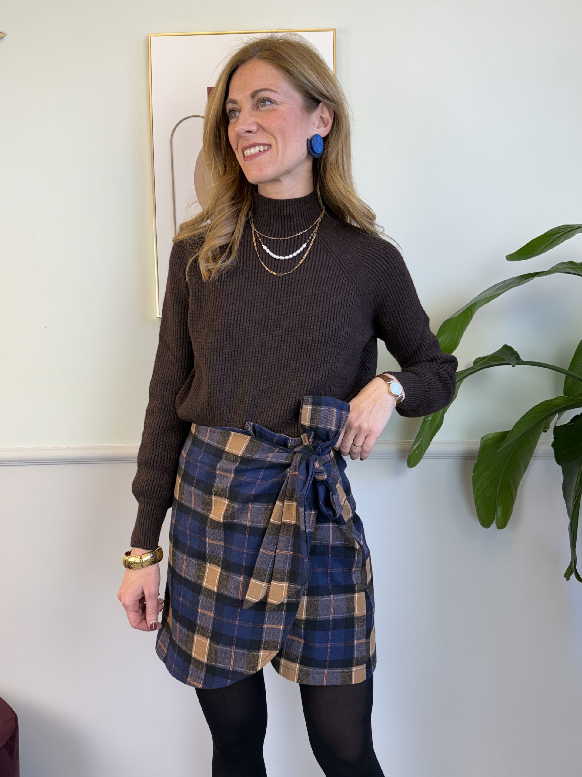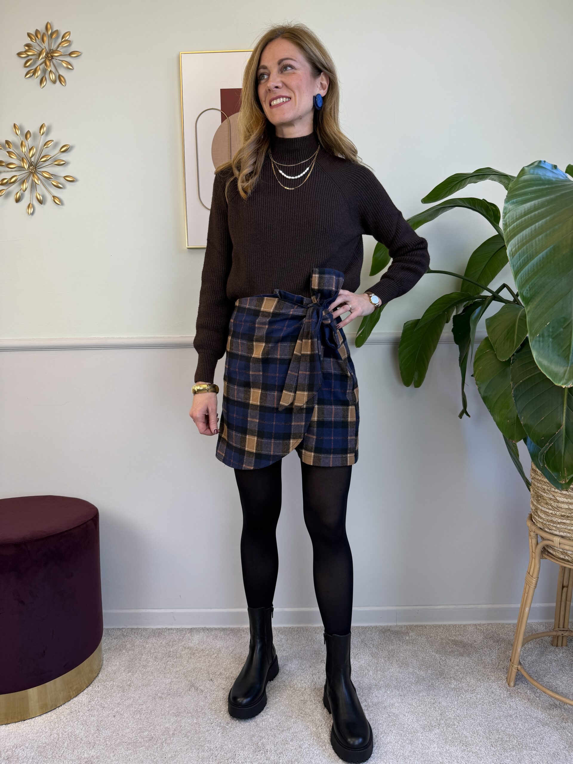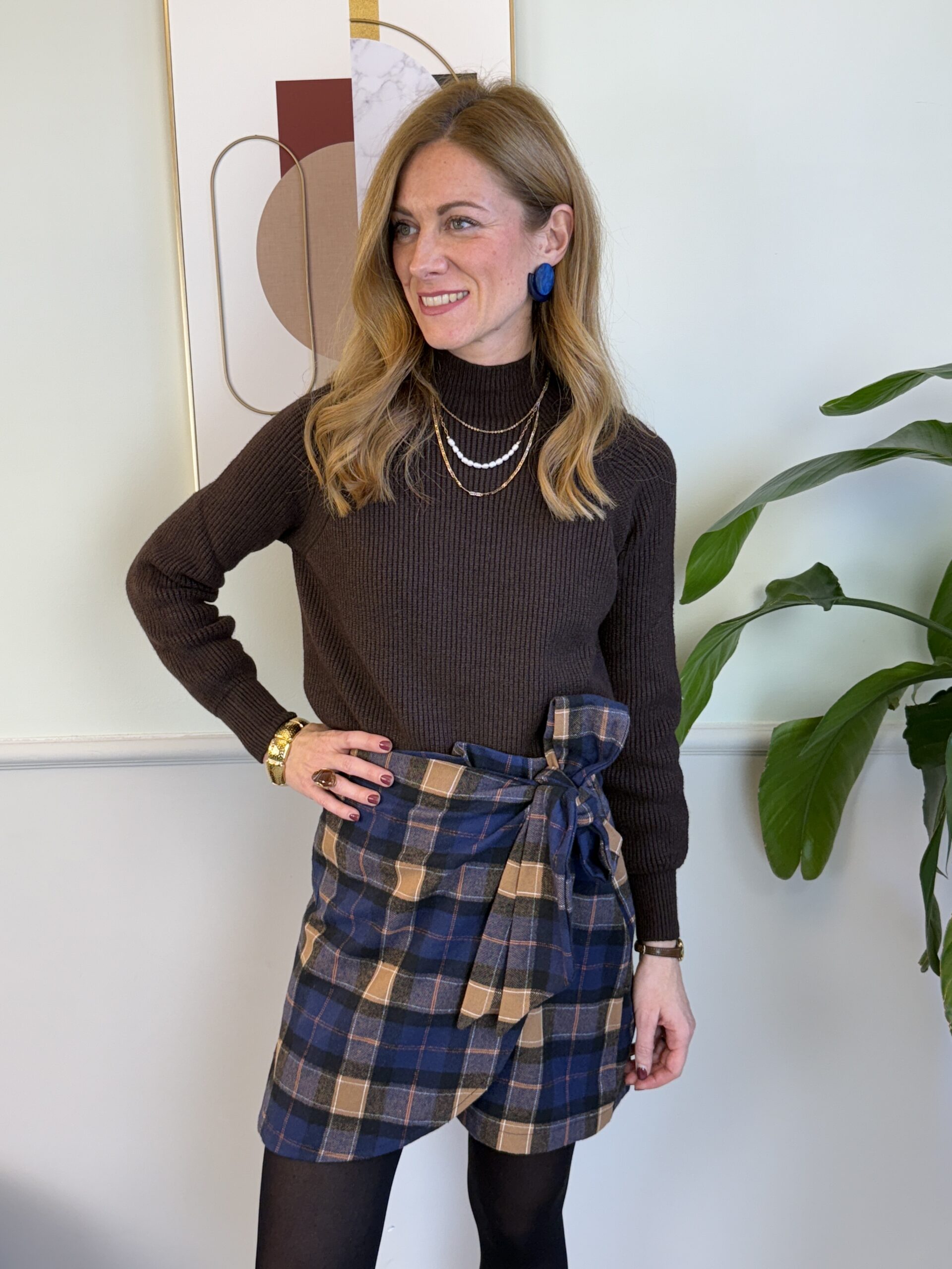 Mini gonna pareo in flanella blu/cammello SusyMix 325