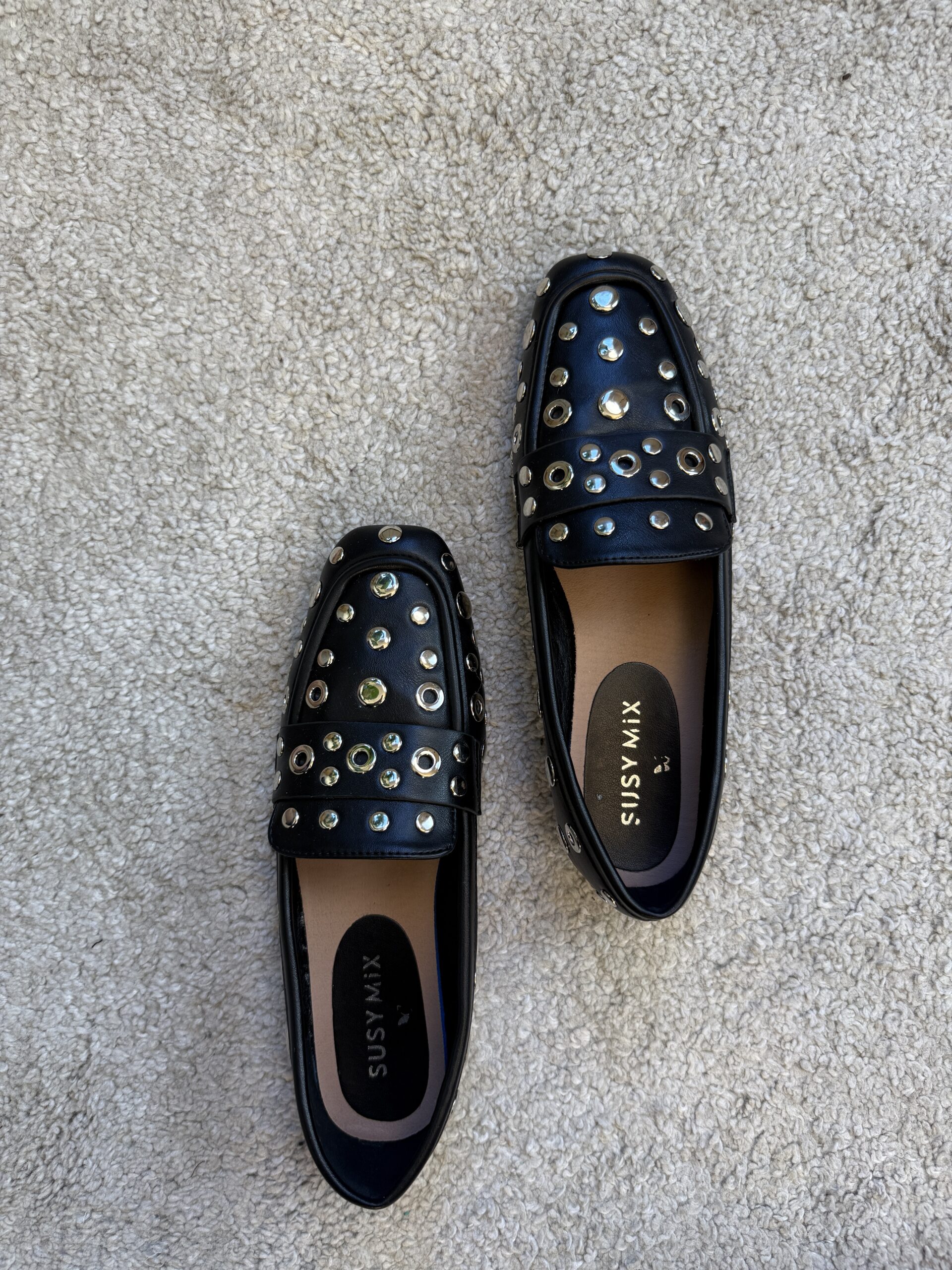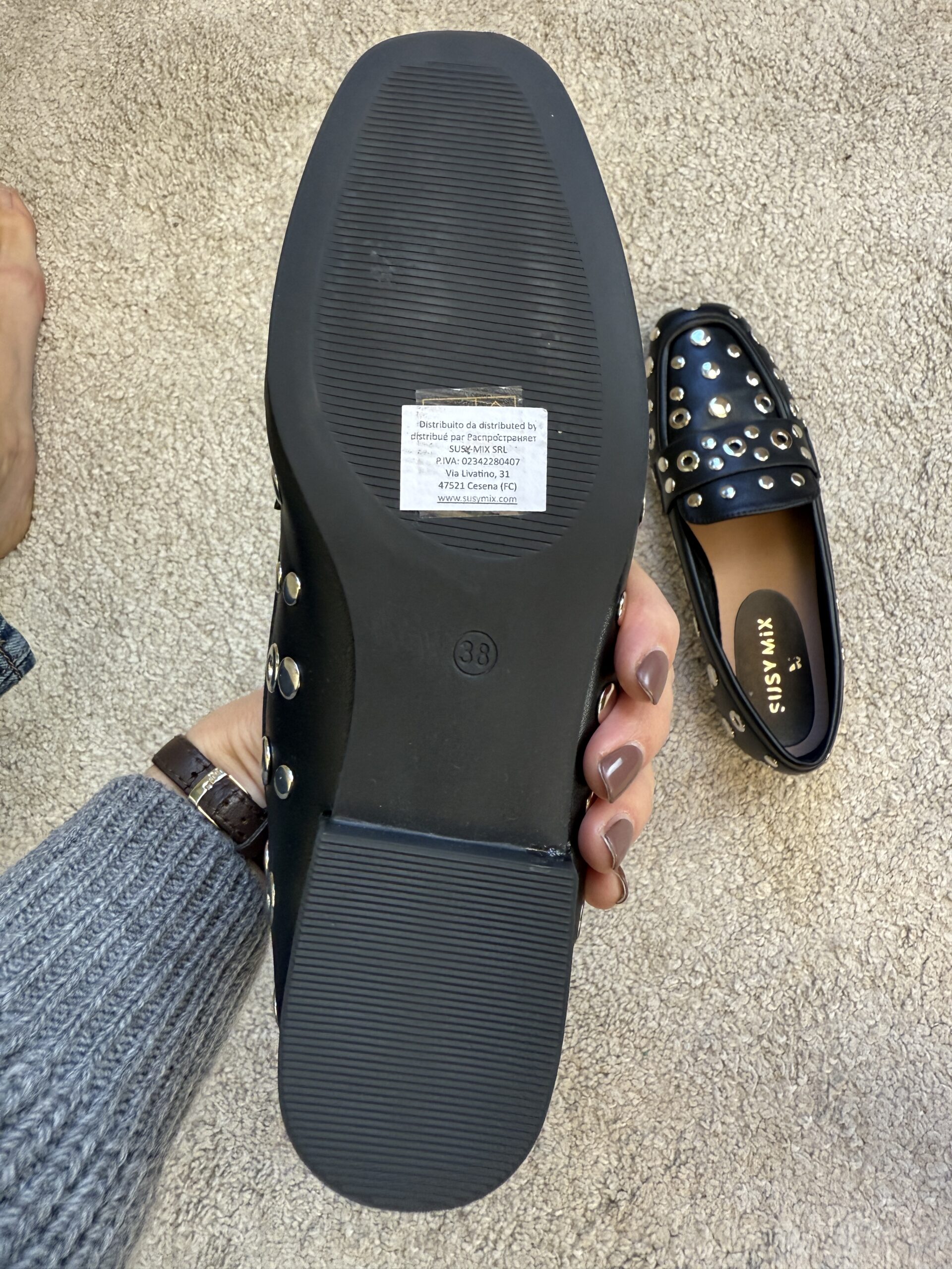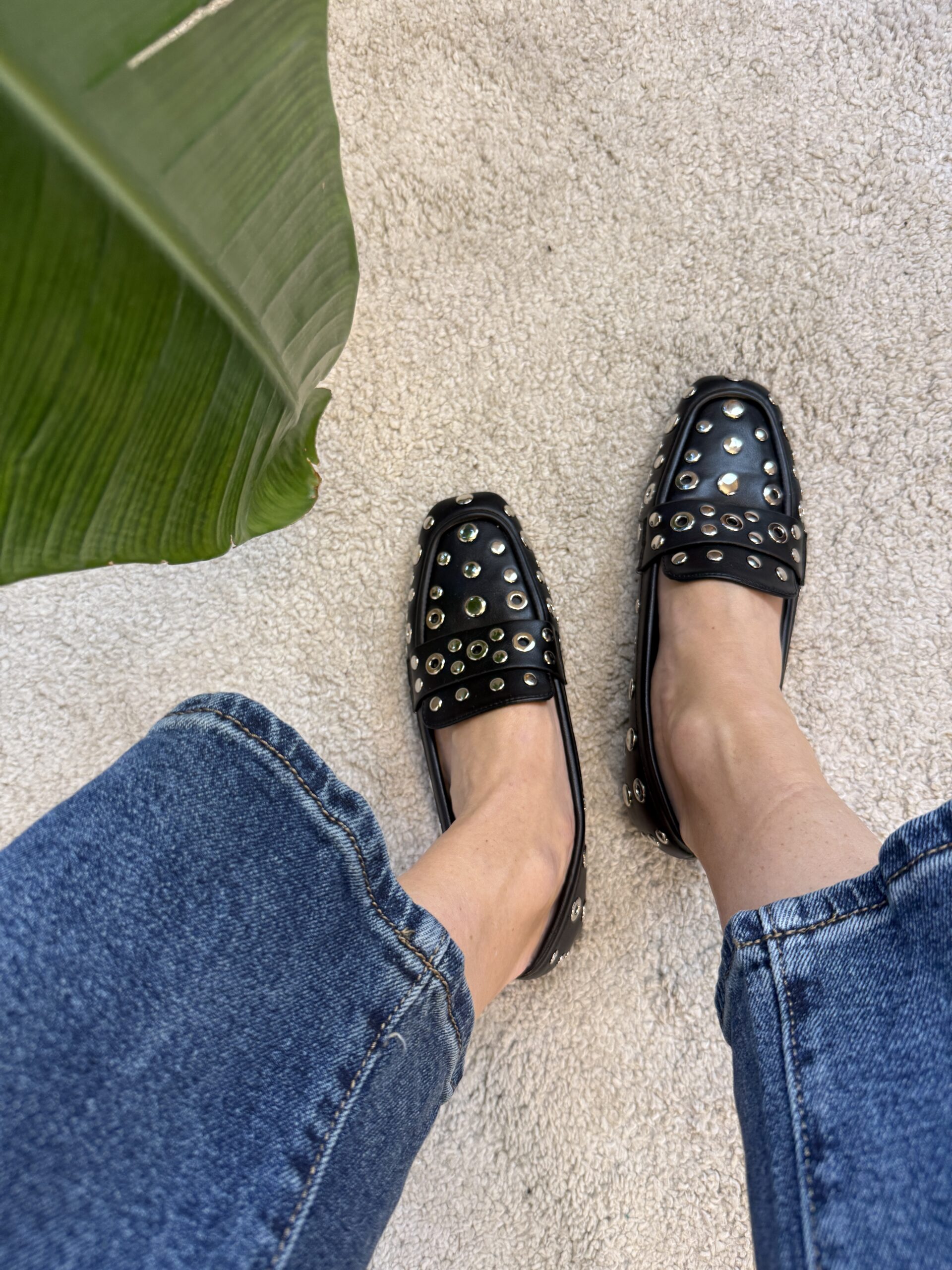 Mocassino borchiato (borchie color argento) in ecopelle.