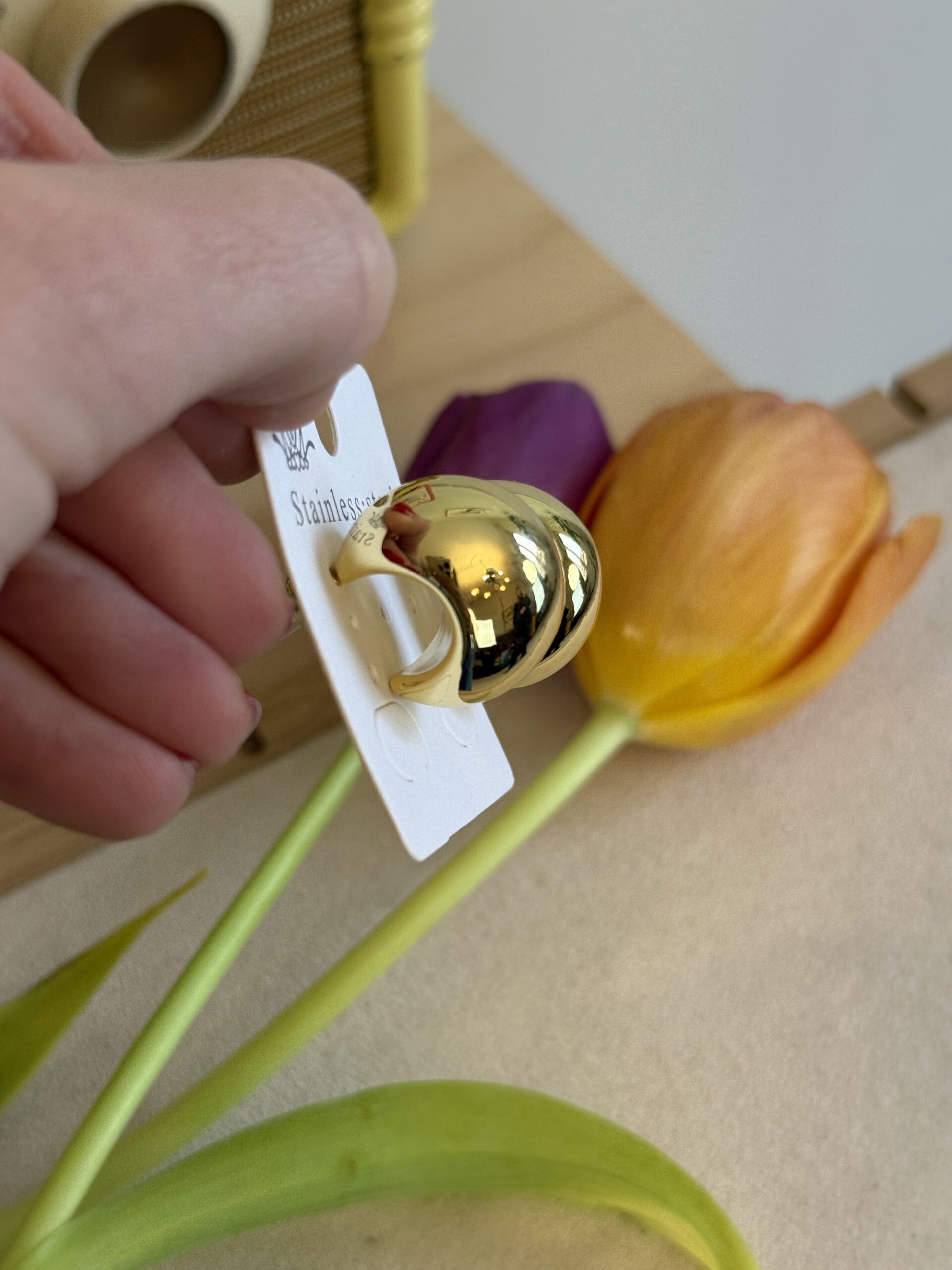 Orecchini sferici dorati.
