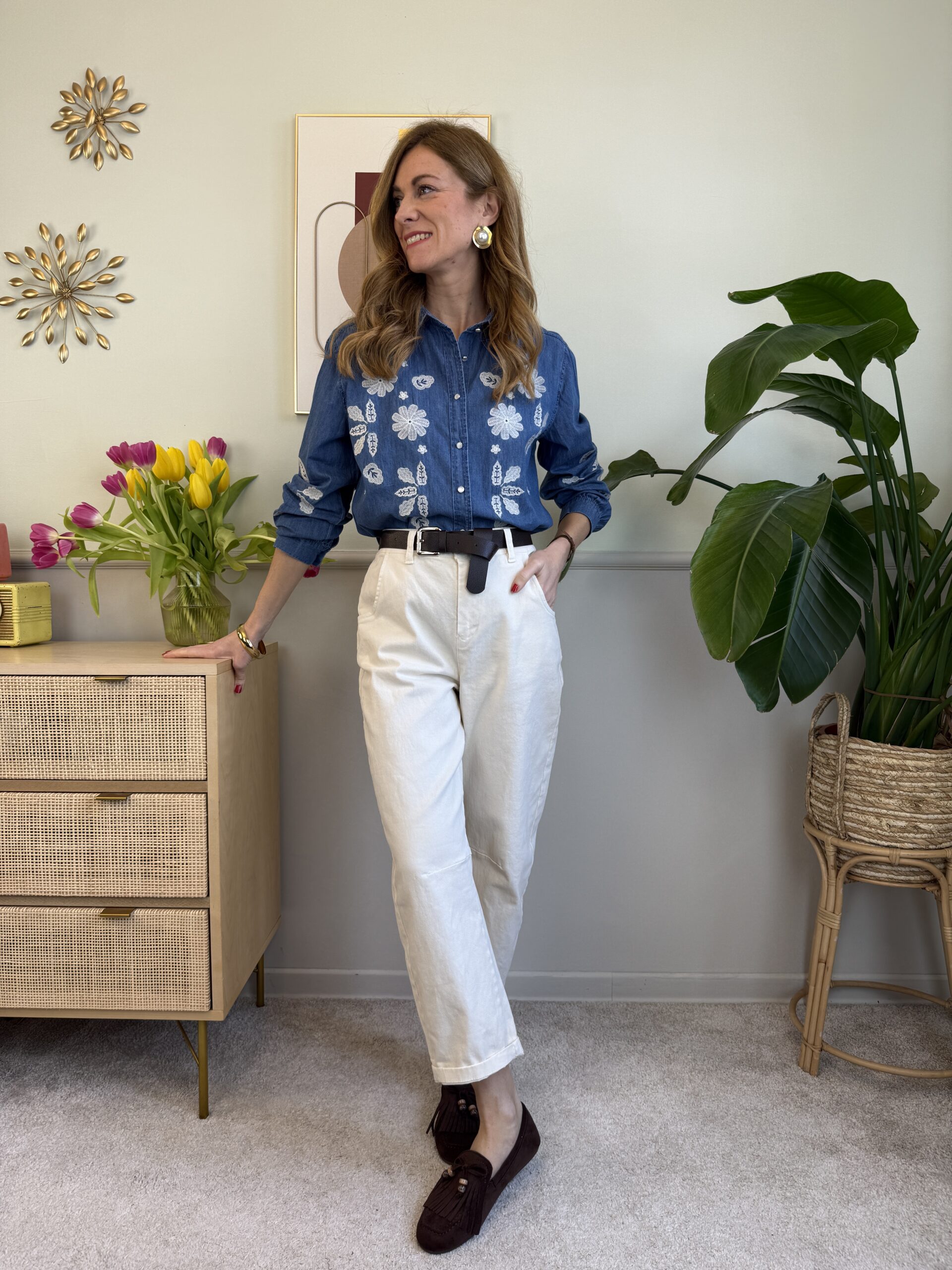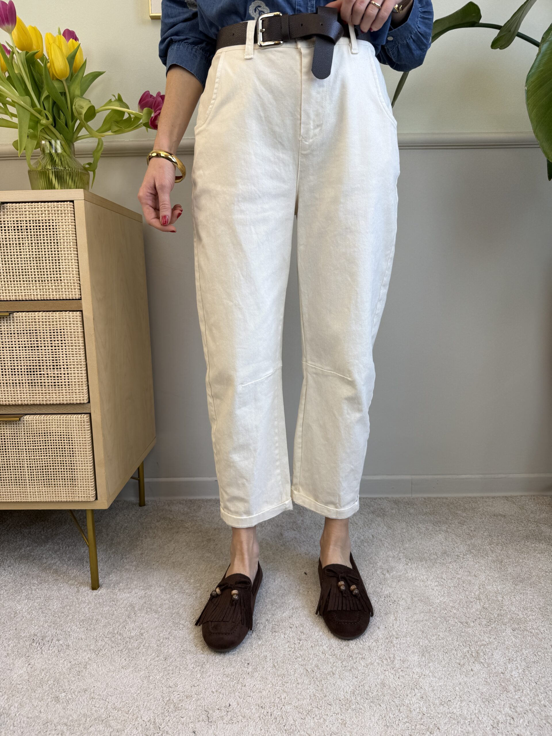 Panta barrel con cintura HaveOne 150 Panna