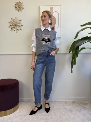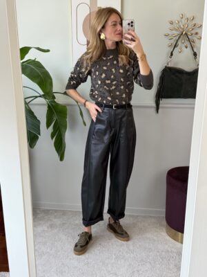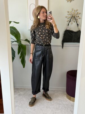 Pantalone a sigaretta vita alta con tasche alla francese.