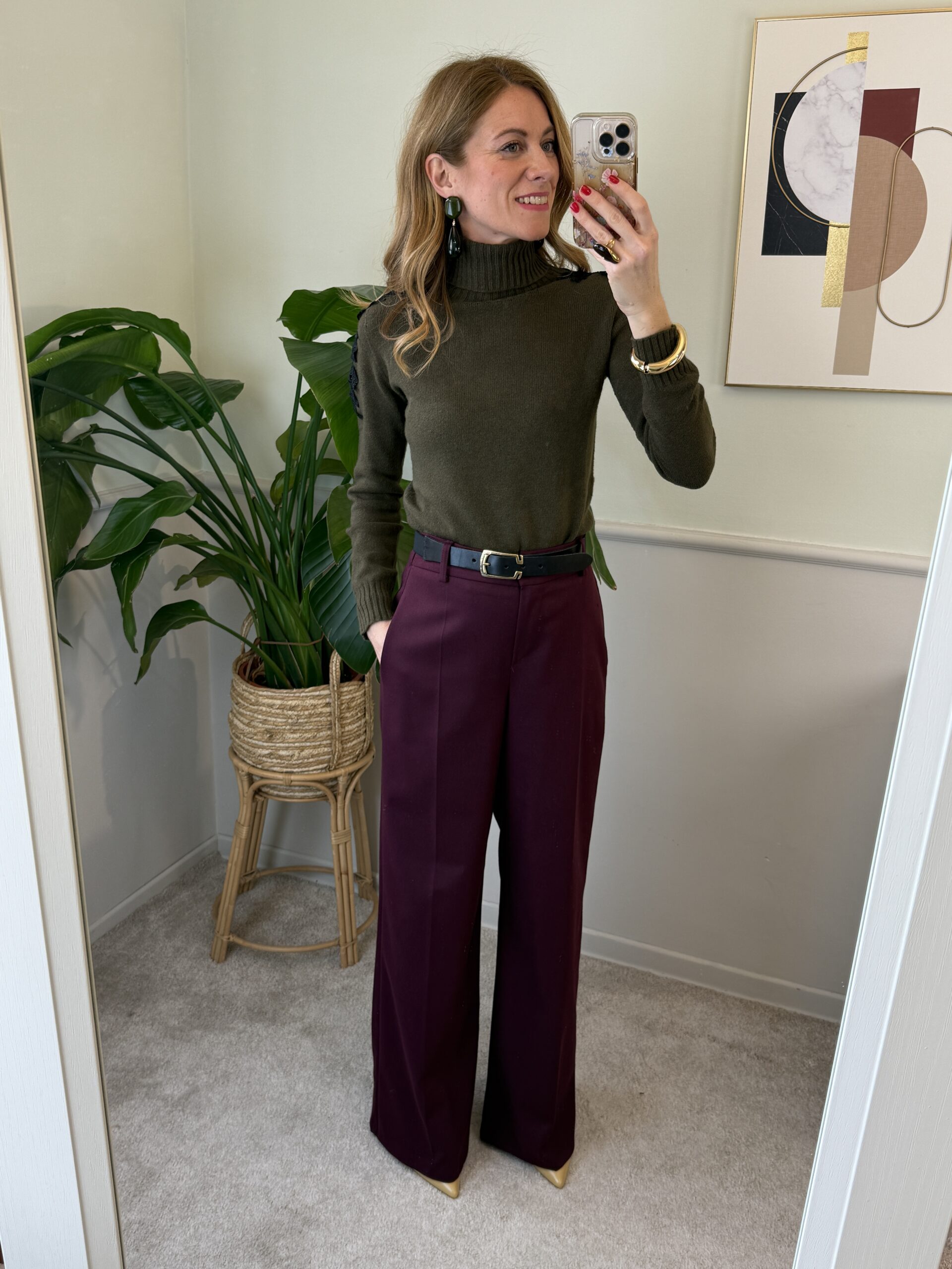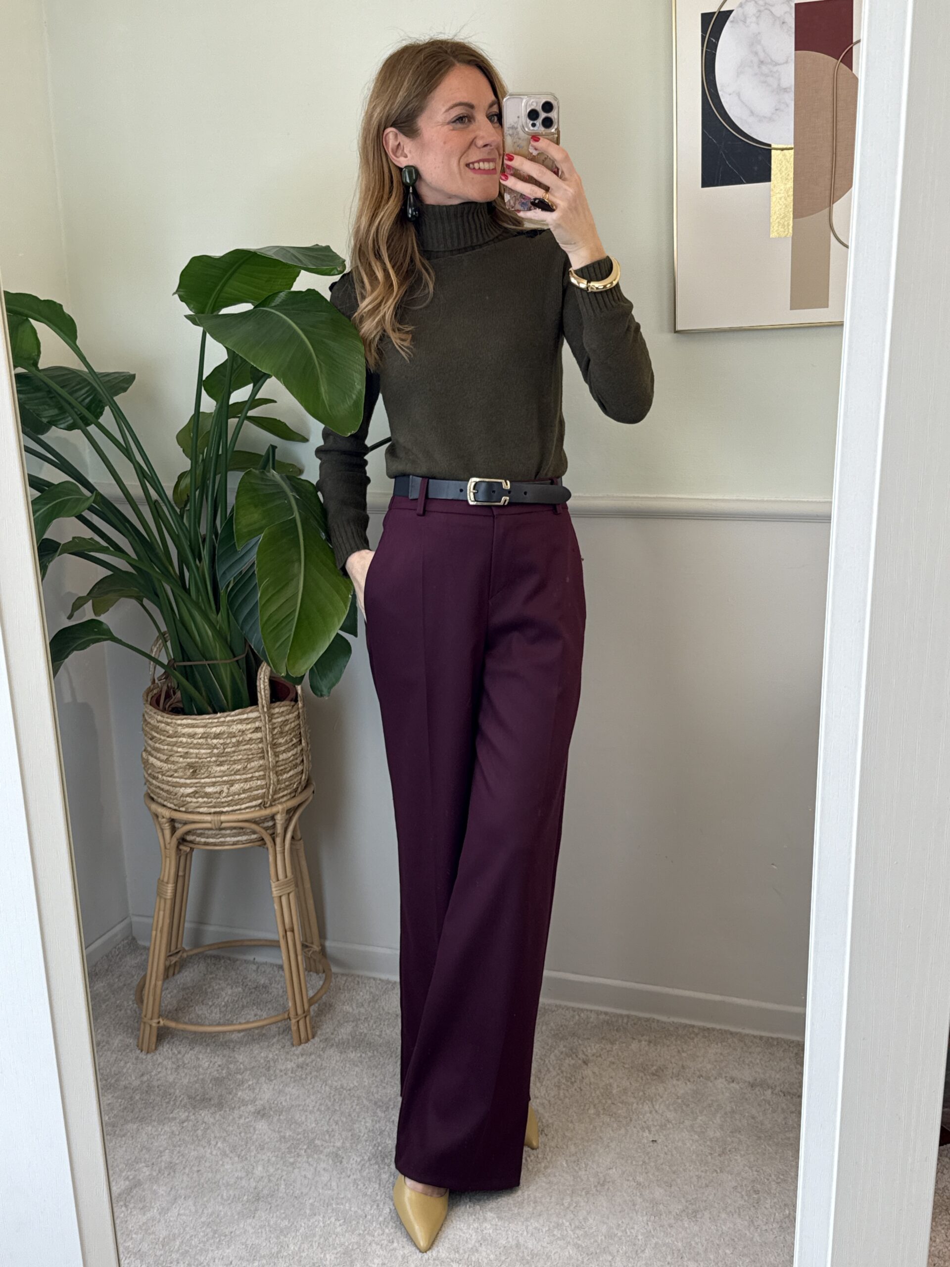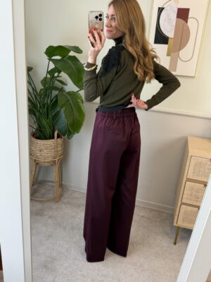 Panta palazzo a vita alta con elastico posteriore e tasche laterali invisibili. (La cintura in foto è la Cintura fibbia fantasia Susy Mix)