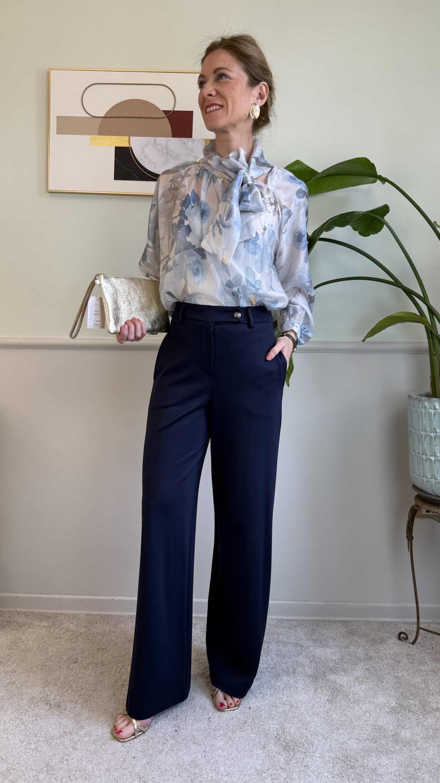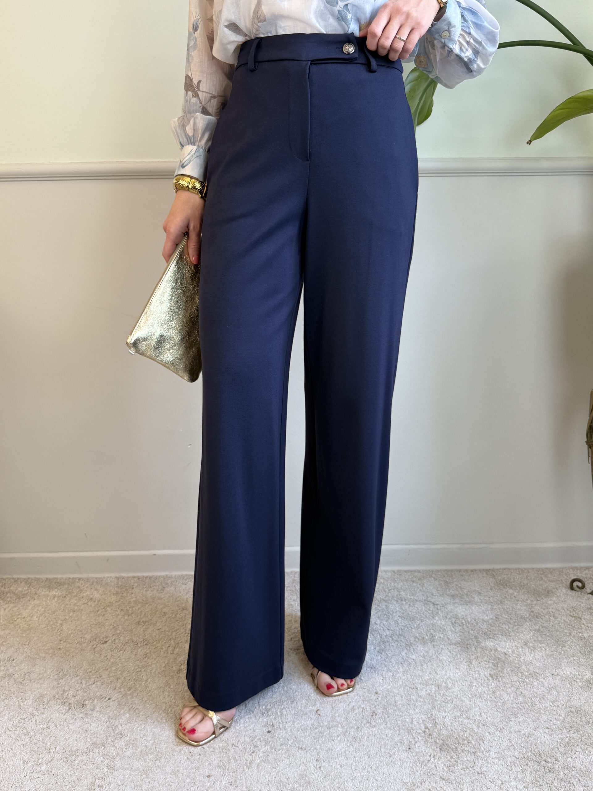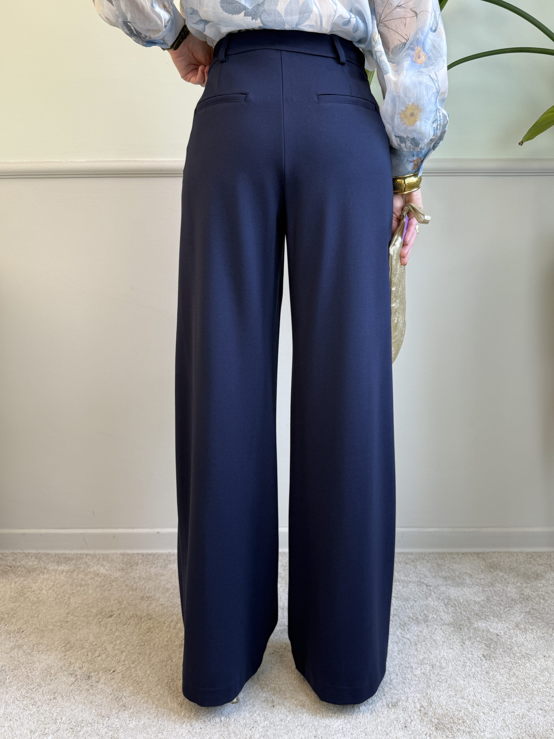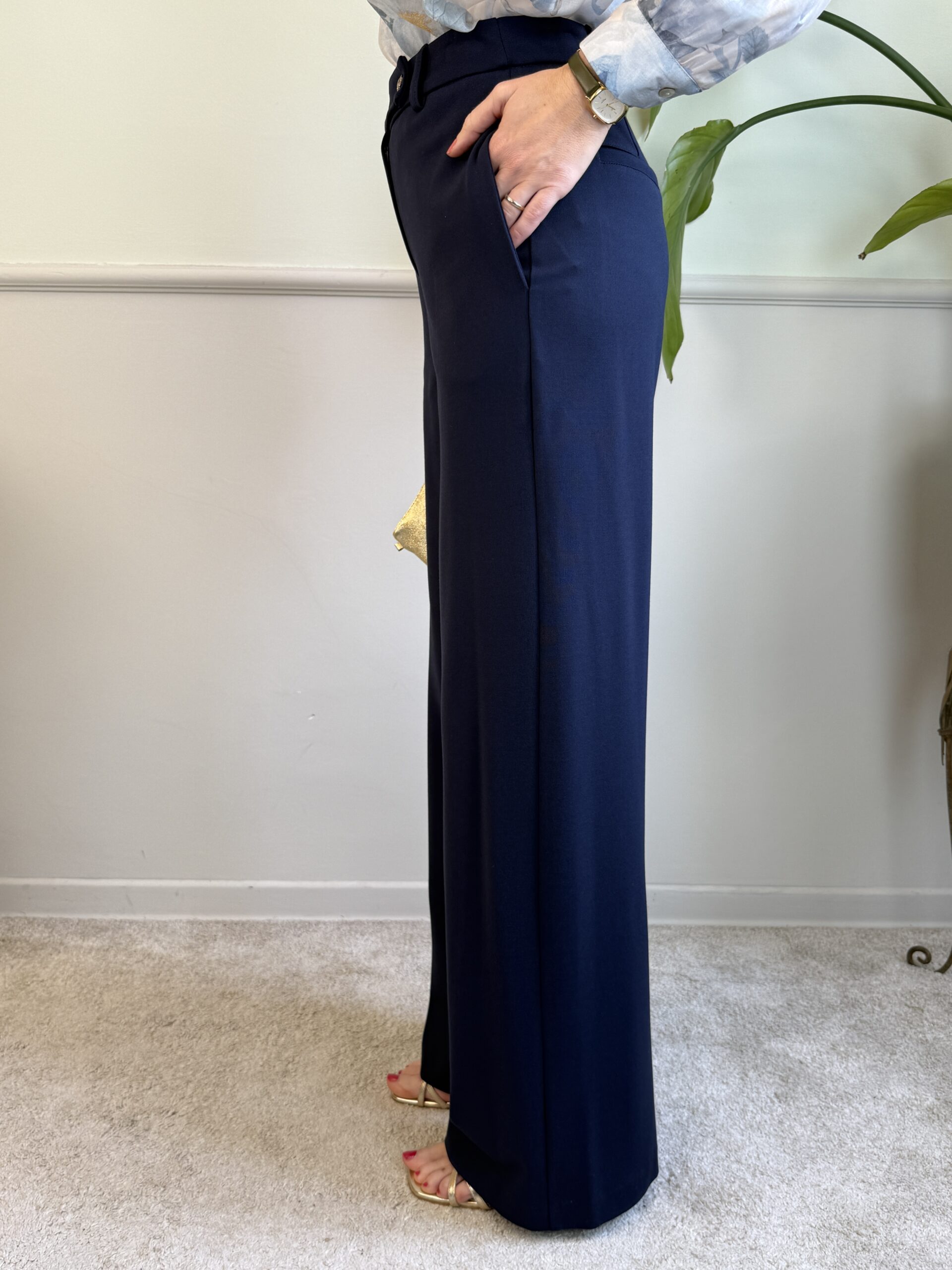 Panta palazzo in punto Milano, vita alta con tasche laterali invisibili.