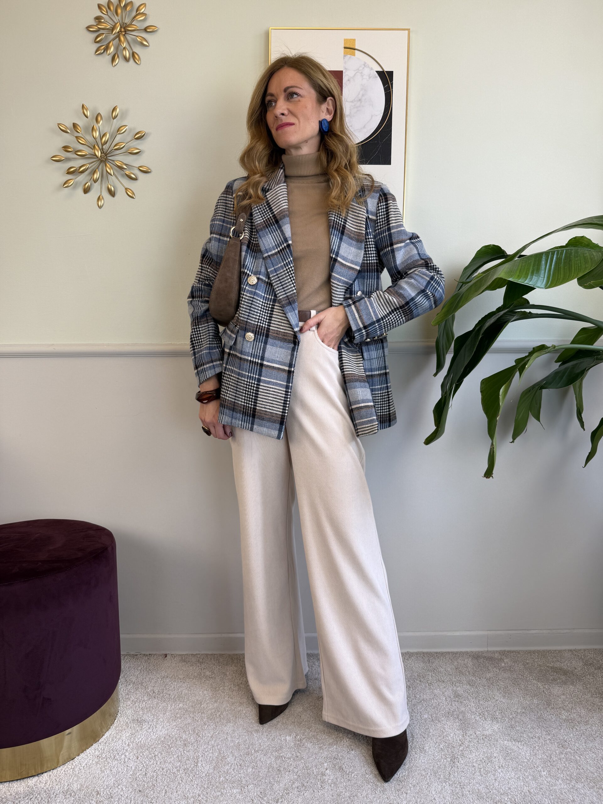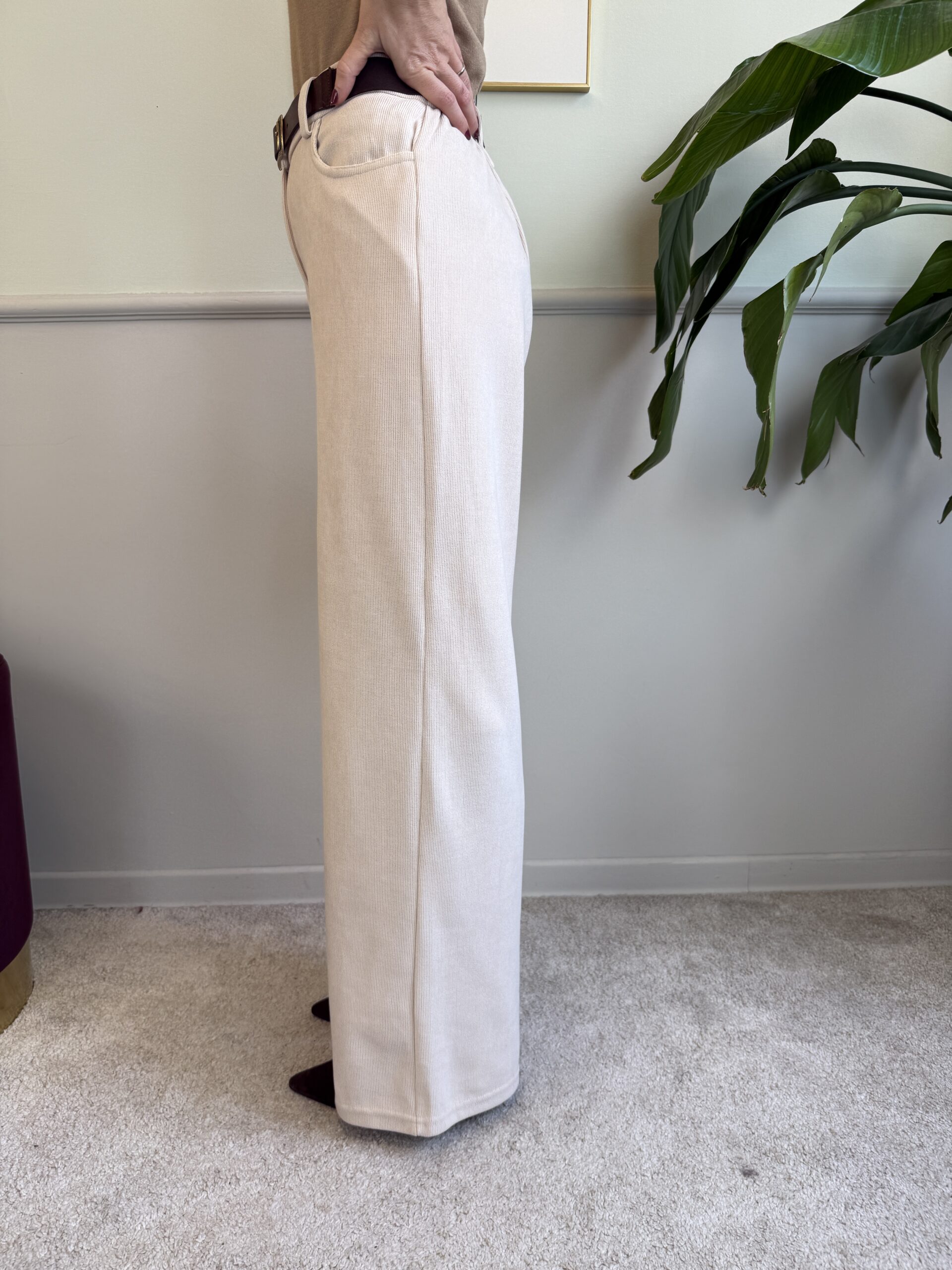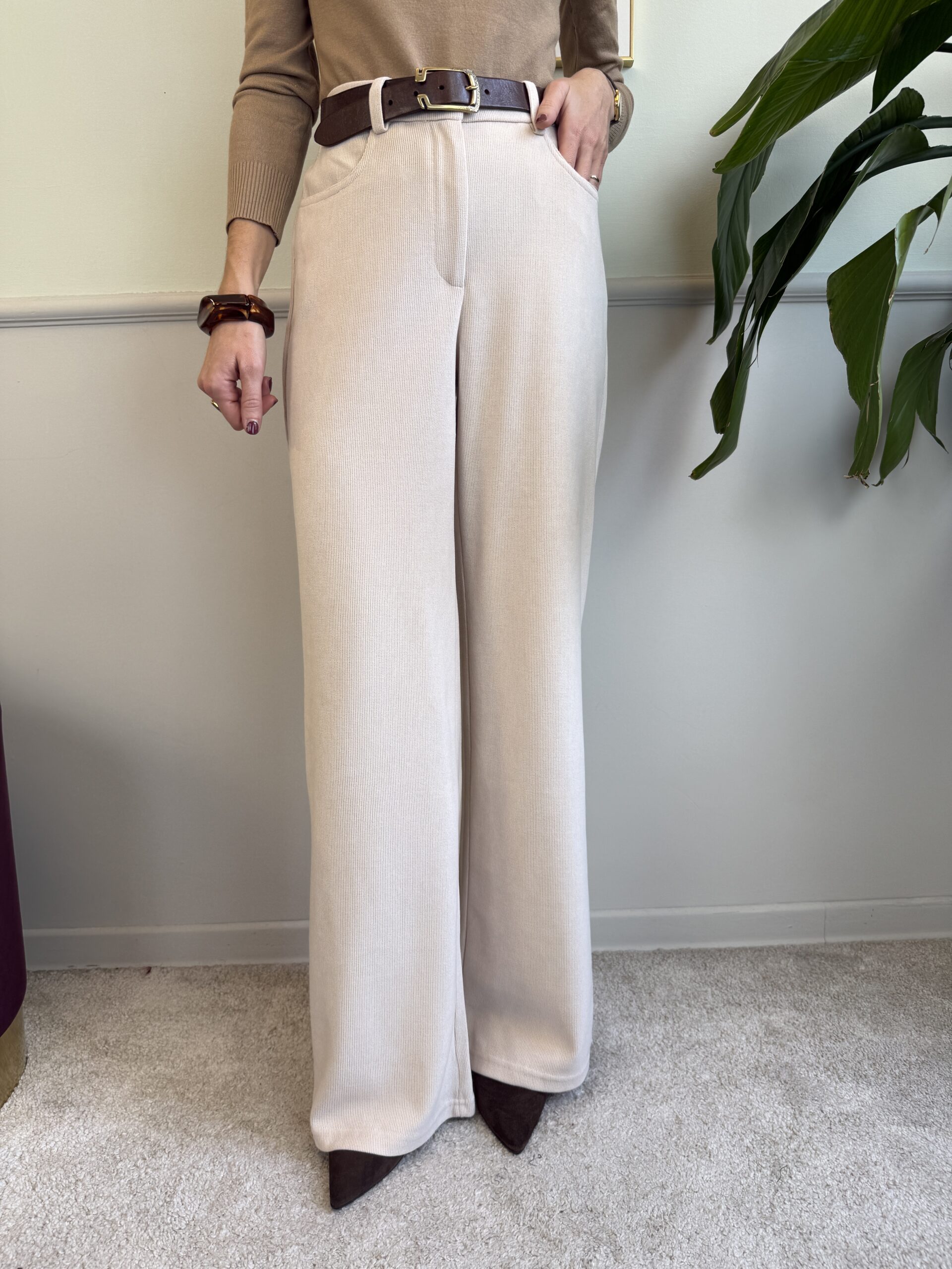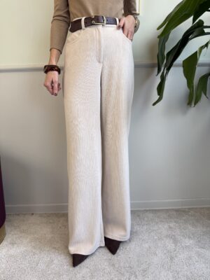 Panta palazzo in velluto mille righe con elastico in vita posteriore.