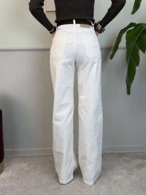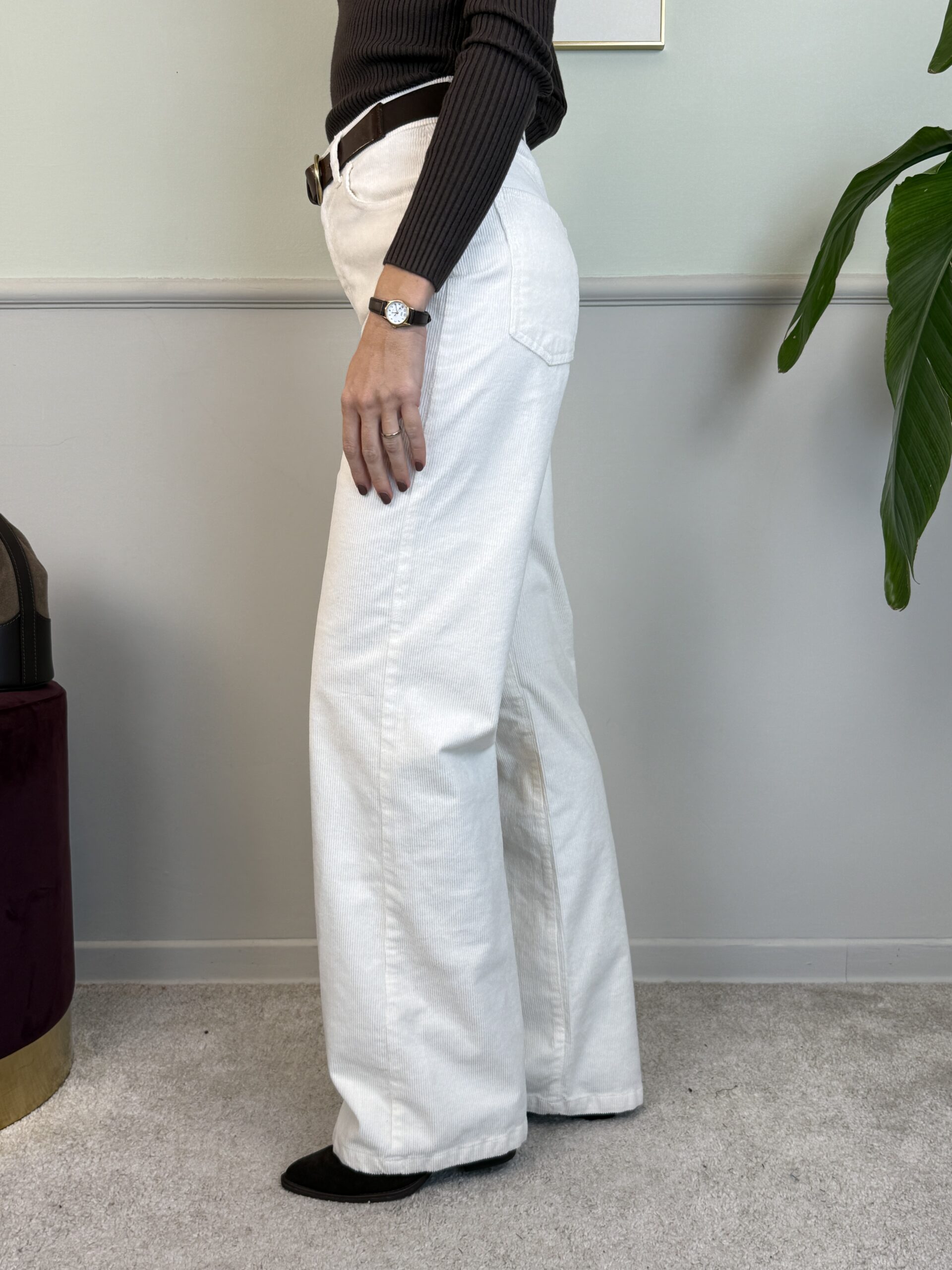 Panta palazzo in velluto mille righe a vita alta, modello 5 tasche.