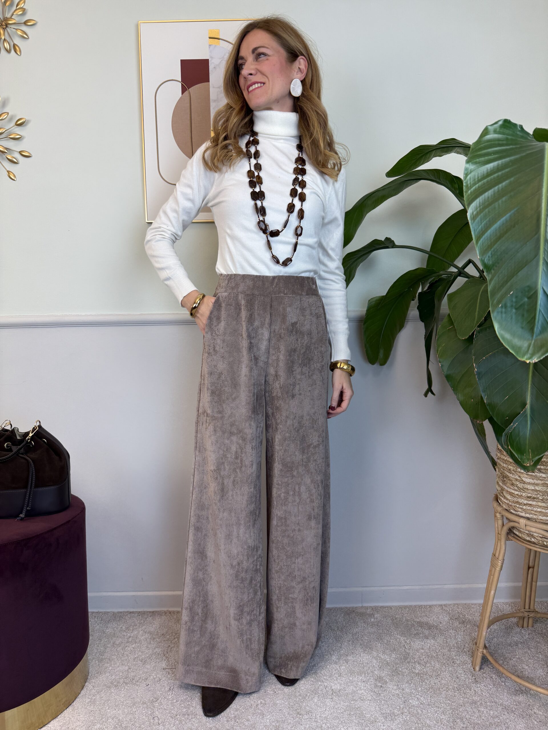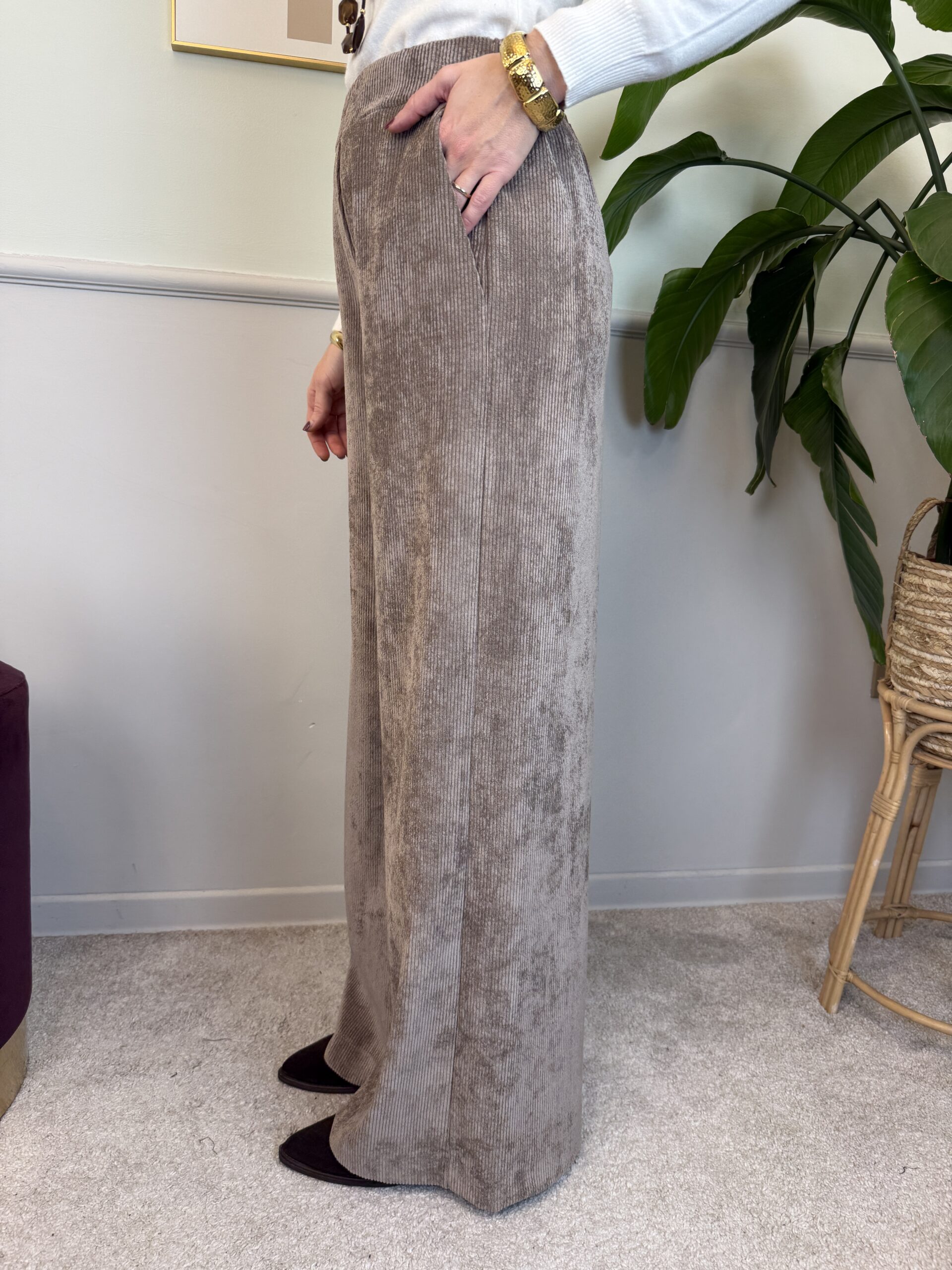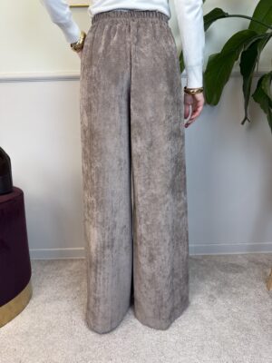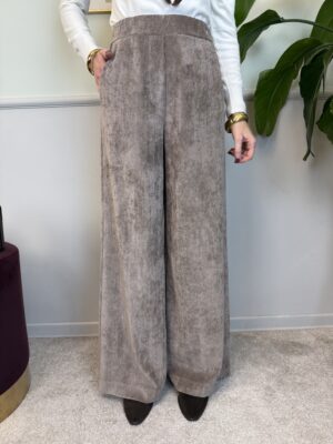 Pantalone a palazzo in velluto leggermente svasato verso il fondo.
