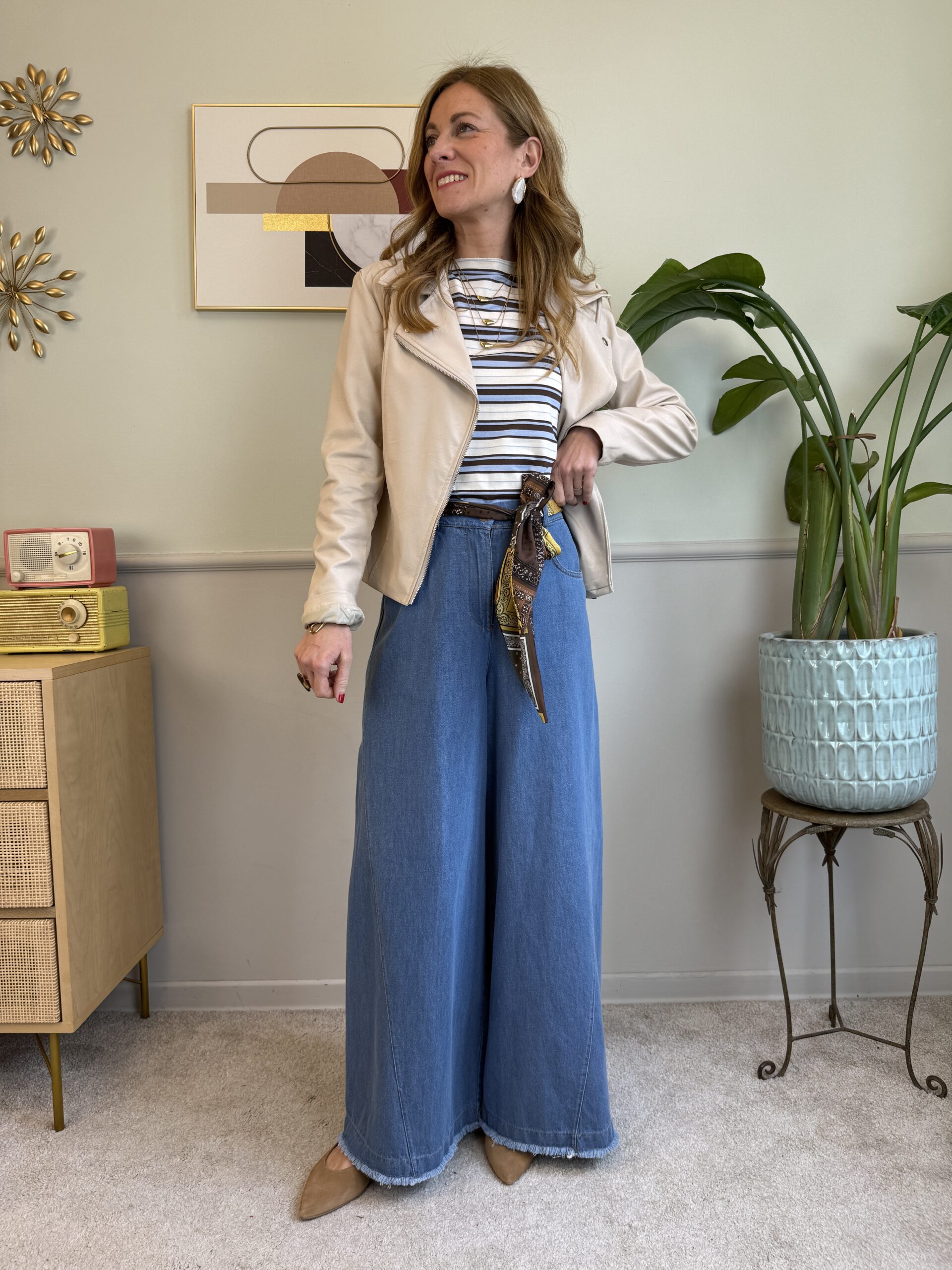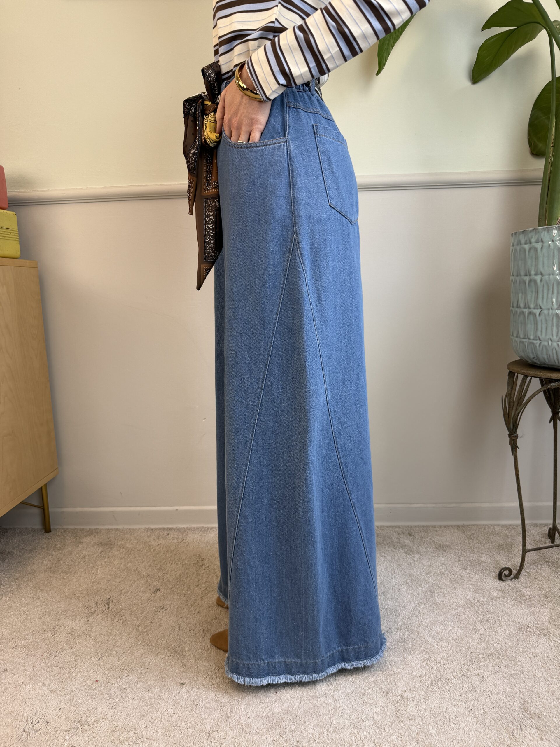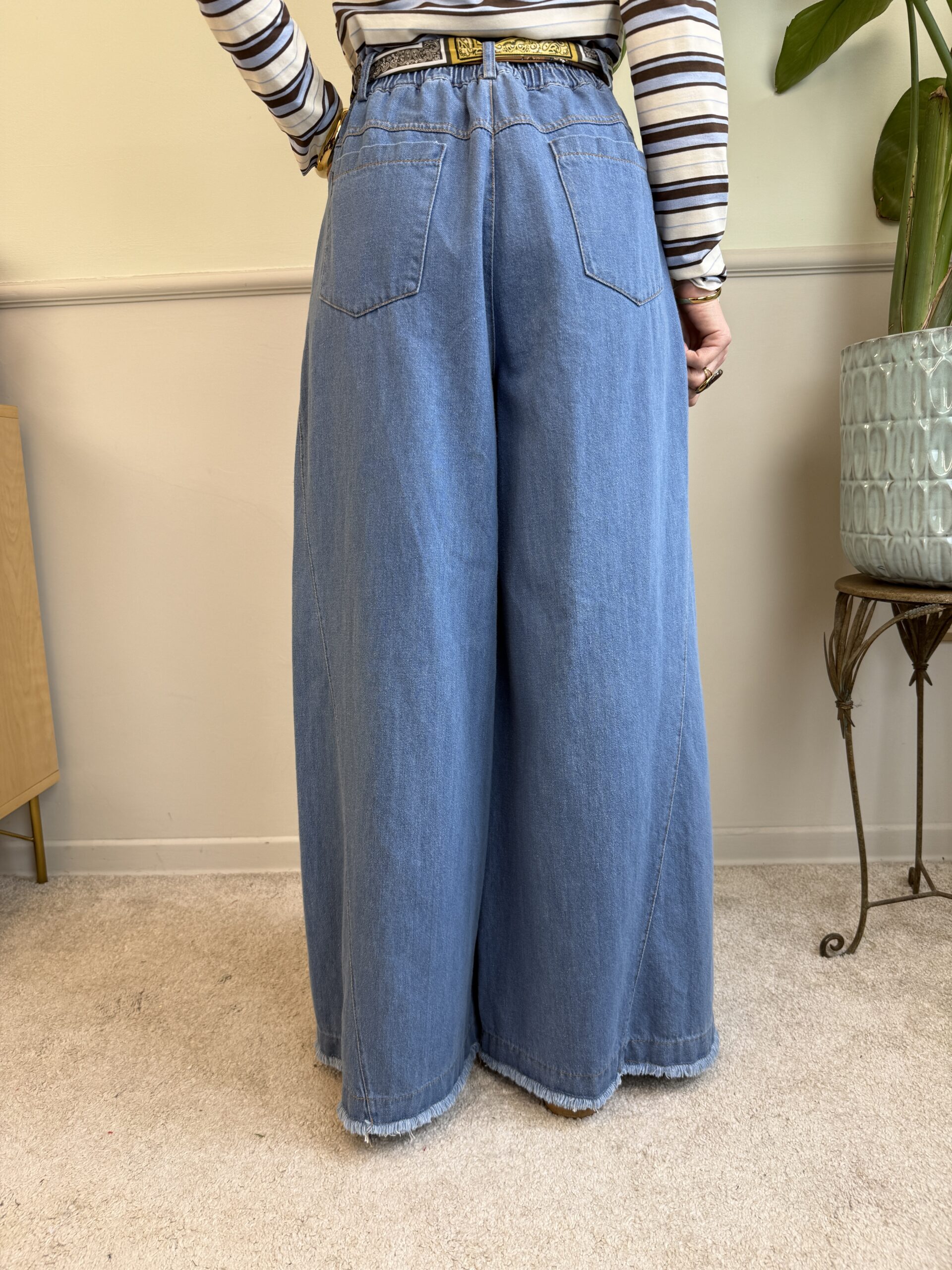 Pantagonna sfrangiata. Presenta bandana come cintura (removibile) e elastico posteriore.