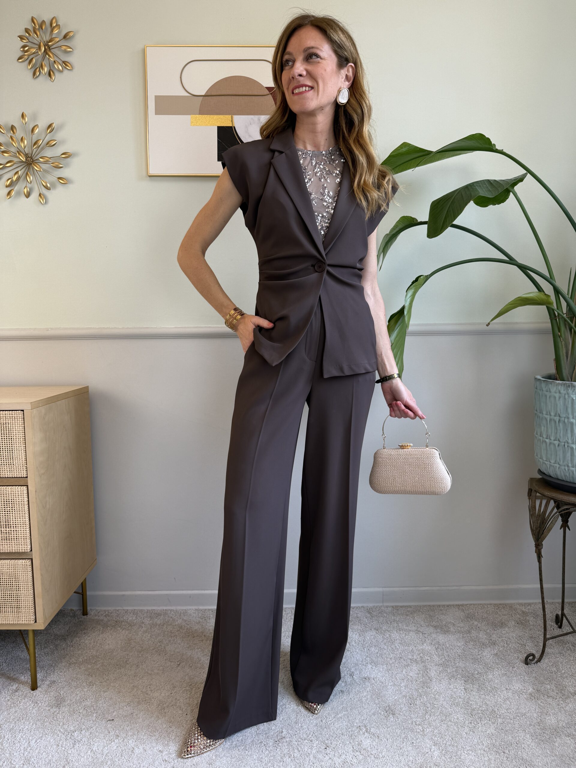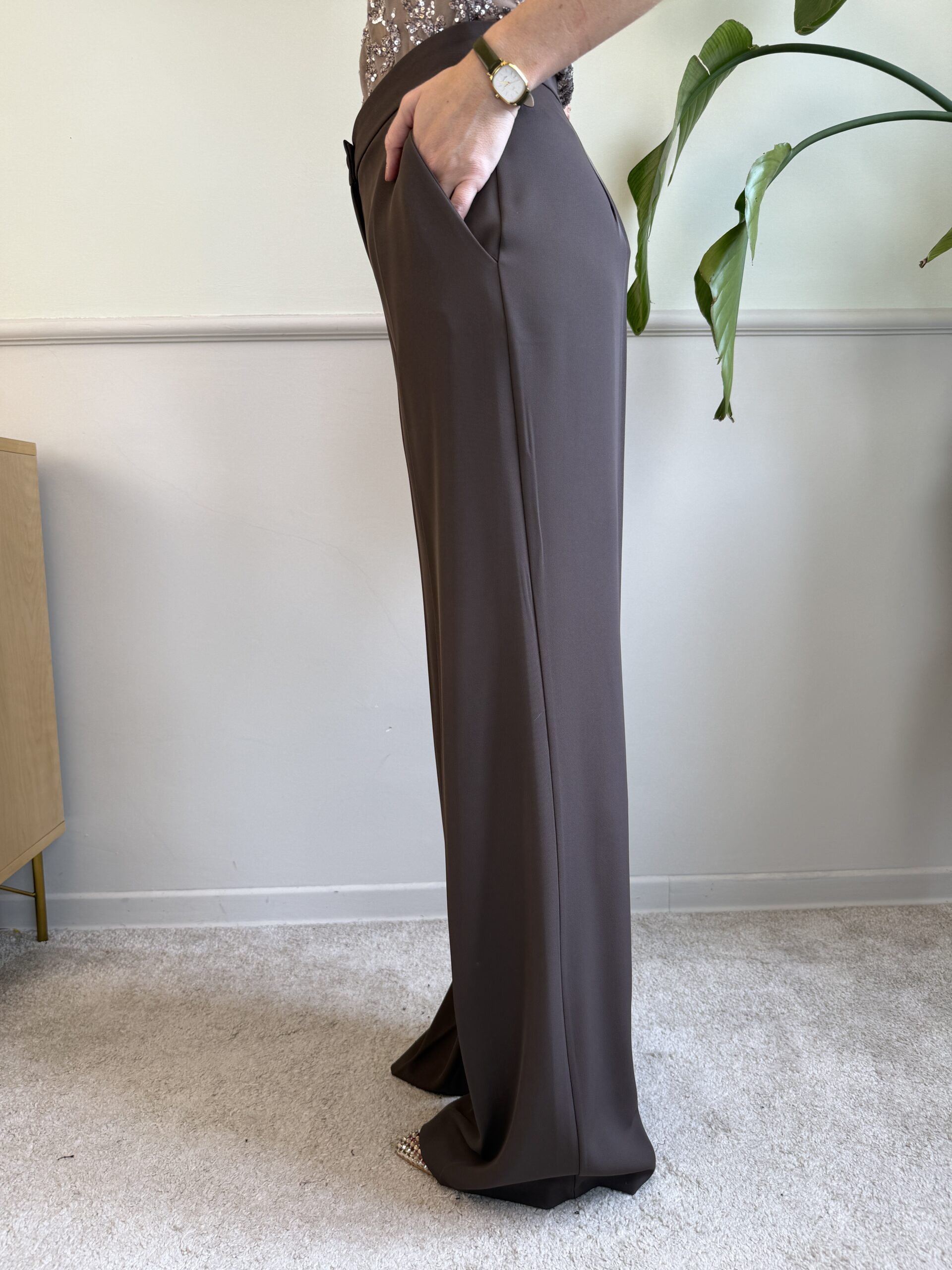 Pantalone vita bassa (da portare sul fianco) in tessuto fluido con tasche alla francese.