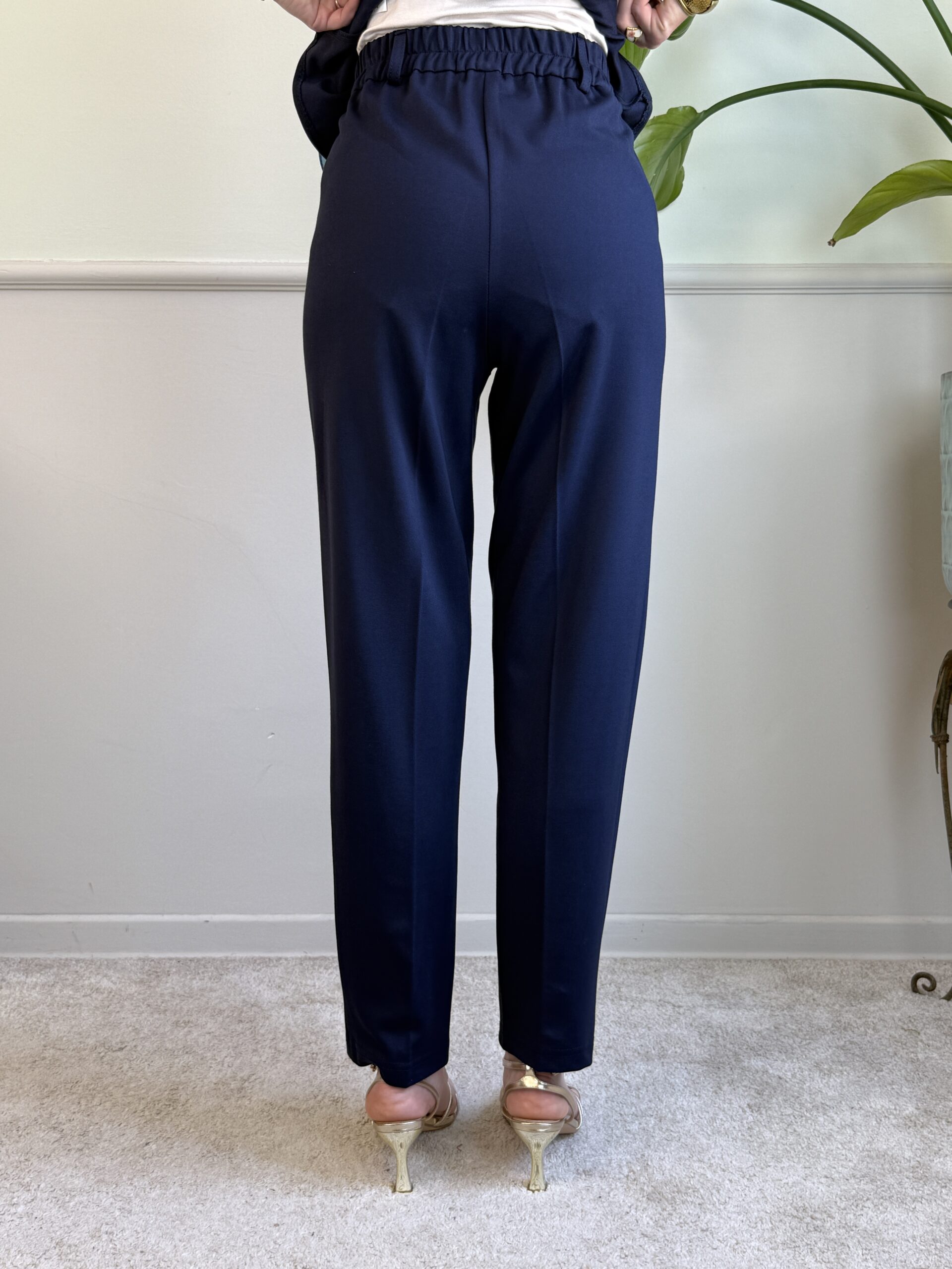 Vita alta con elastico posteriore, tasche alla francese, tessuto elasticizzato molto comodo!
