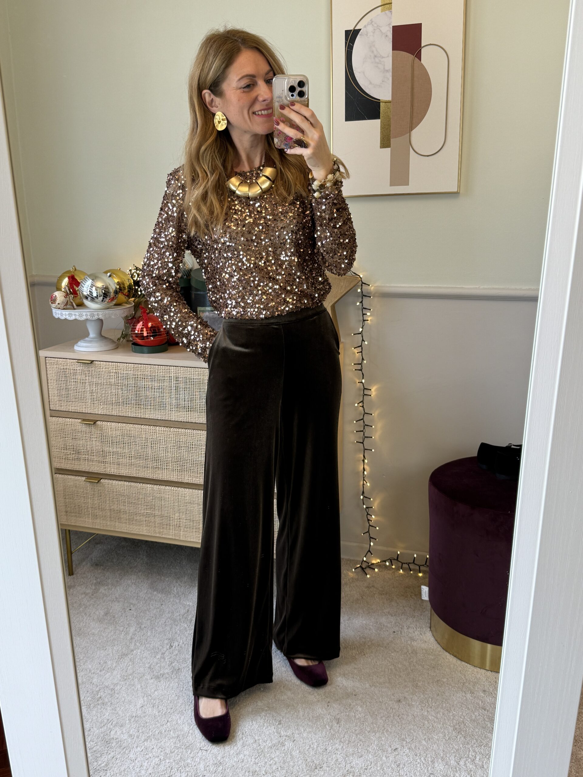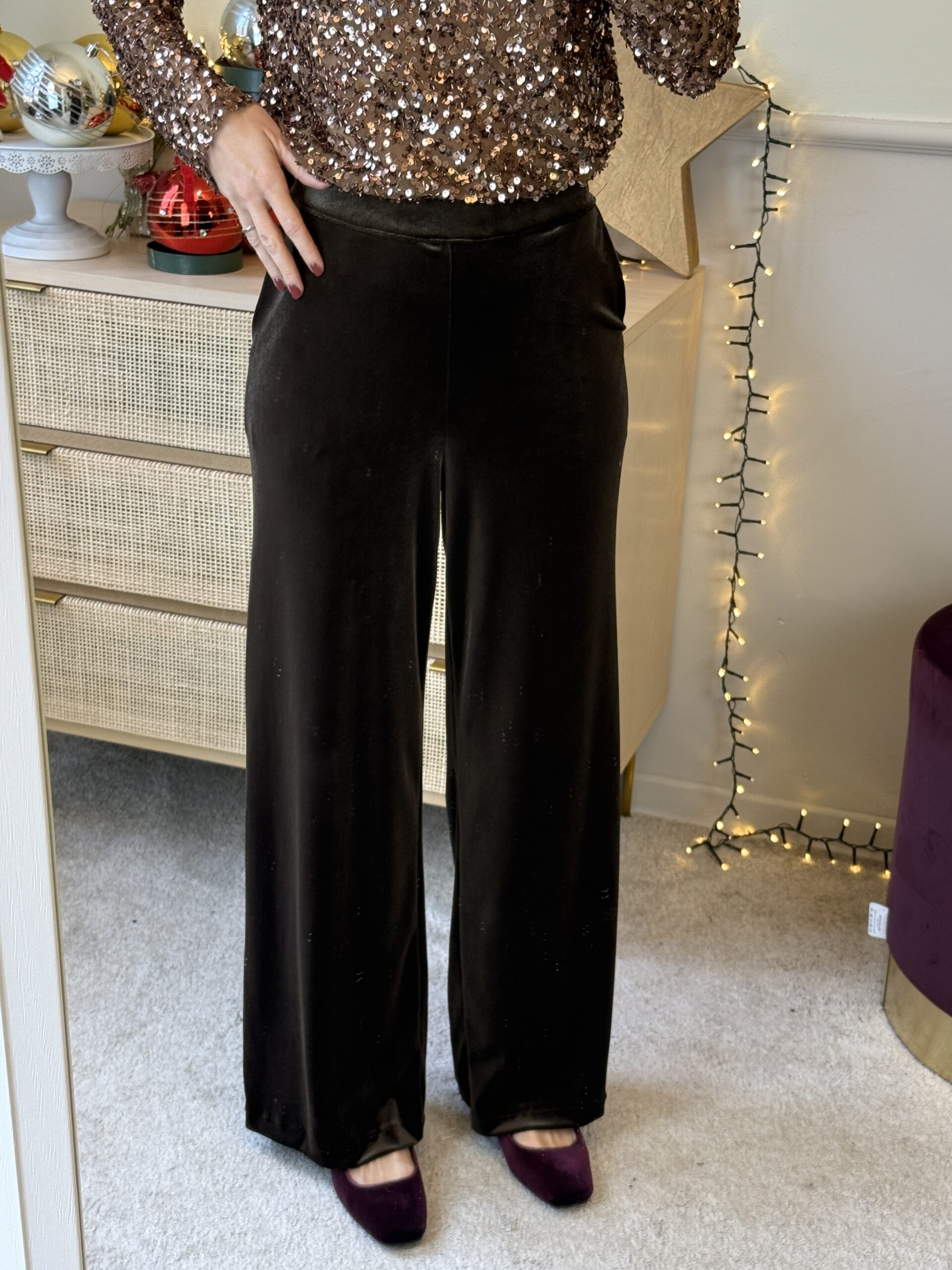 Morbidi pantaloni a palazzo in velluto elasticizzato.