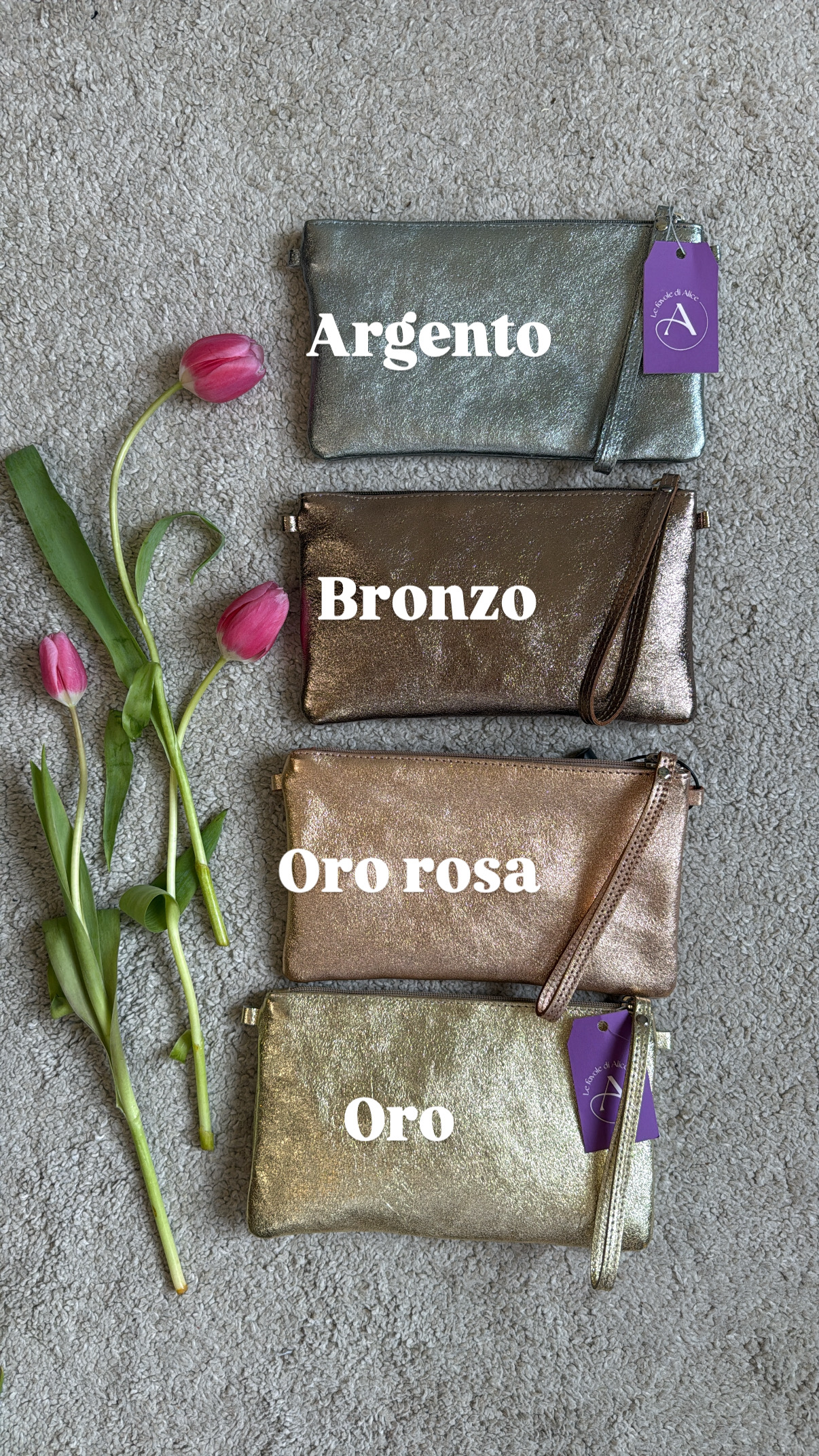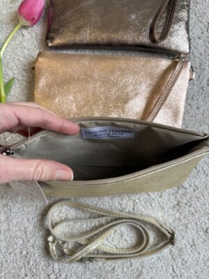 Pochette in pelle laminata con tracollina.