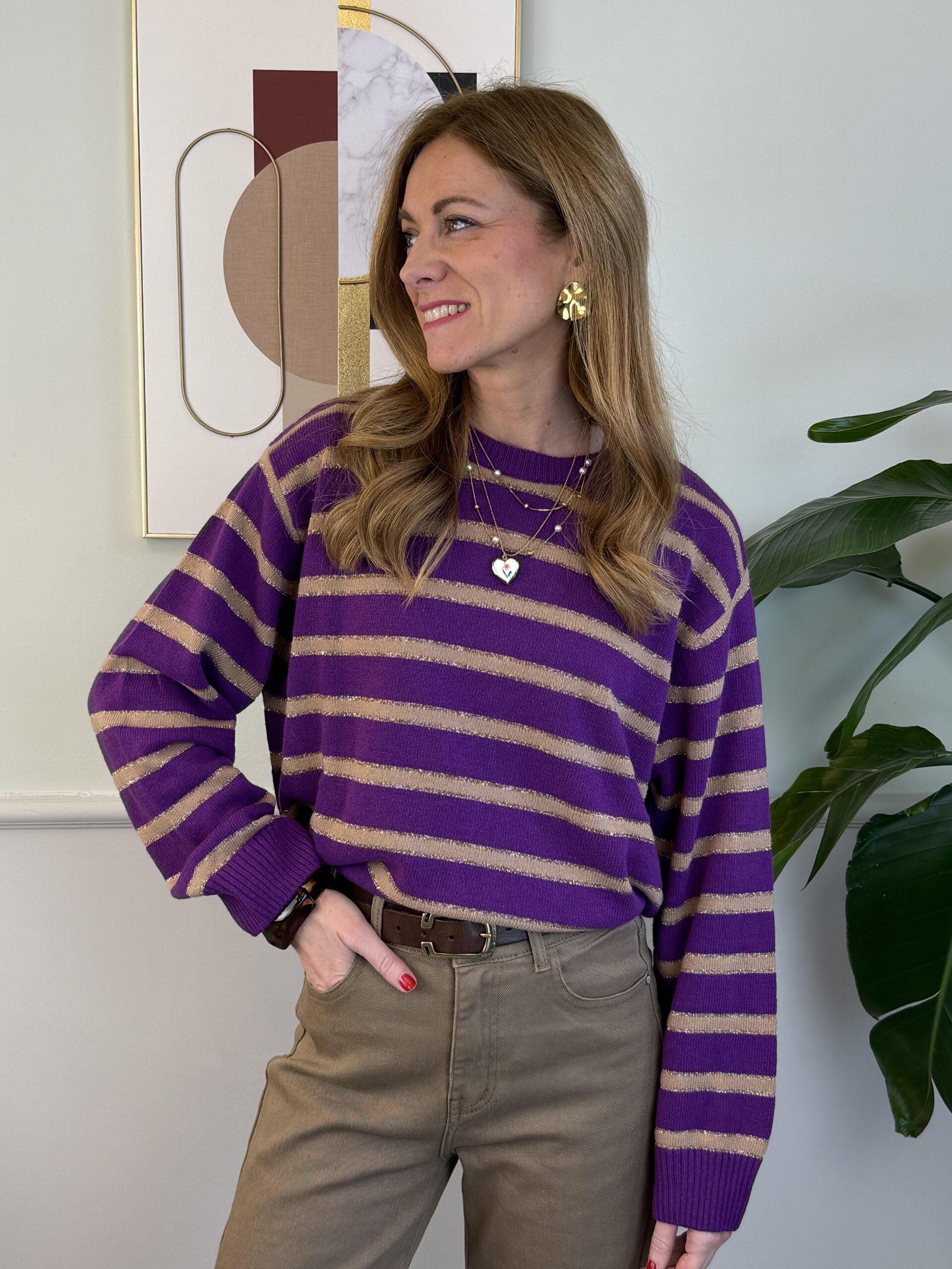 Pull girocollo riga e lurex Motel 114