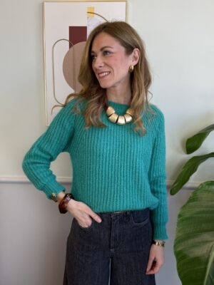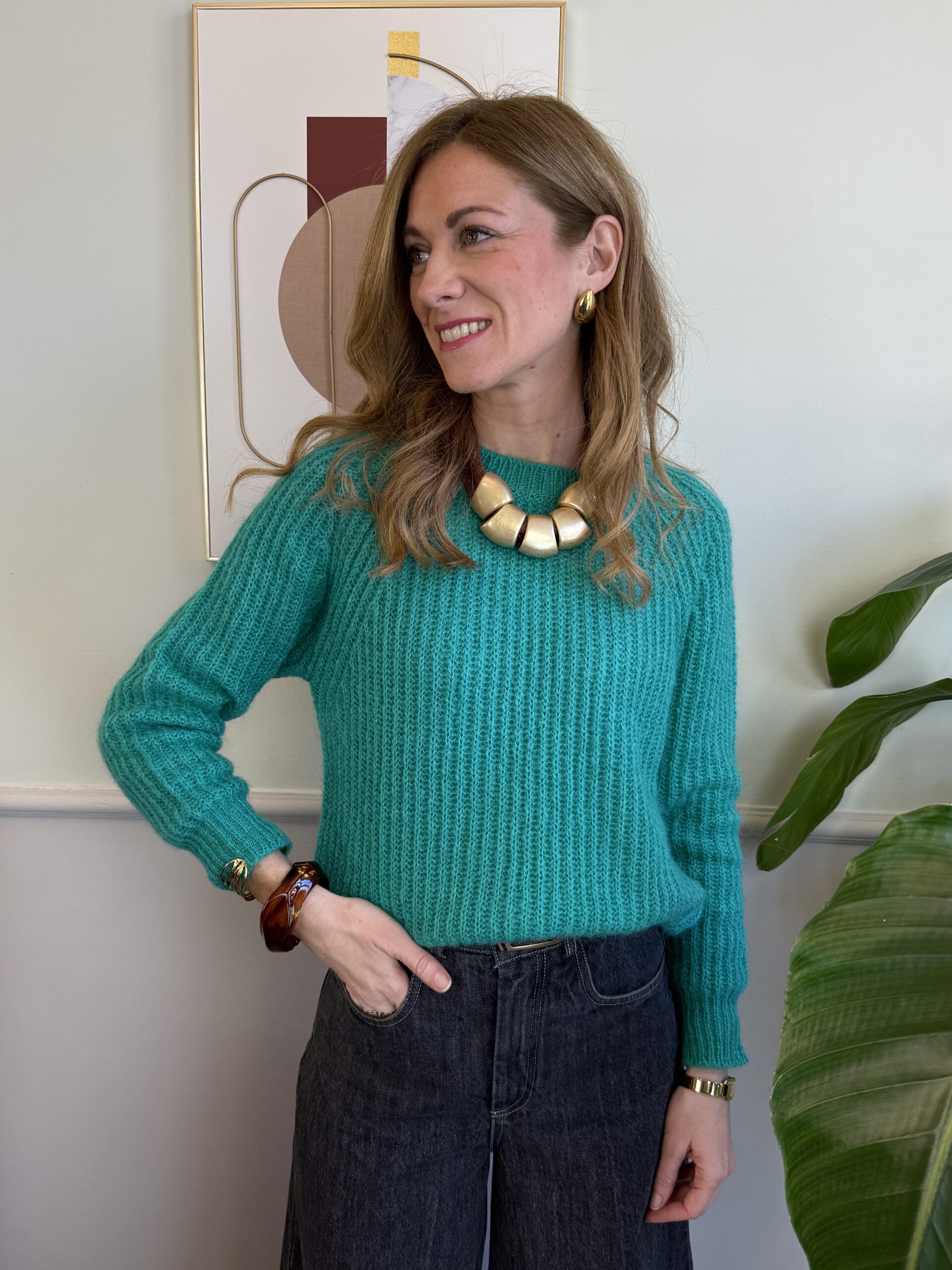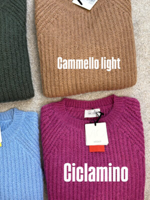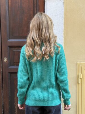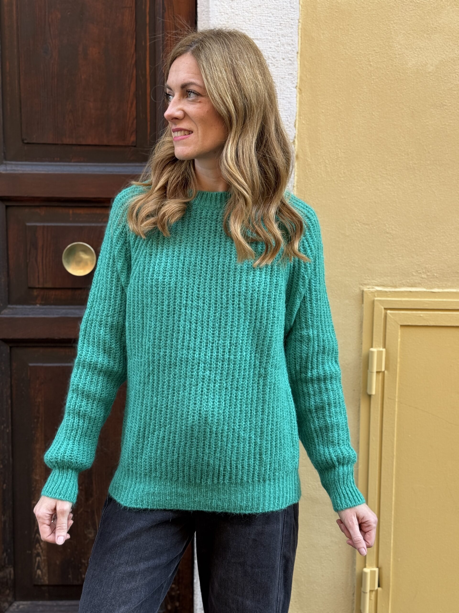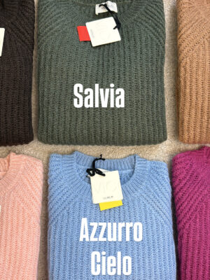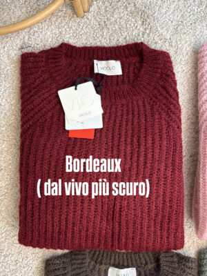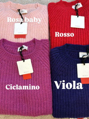 Pull girocollo lavorazione punto pannocchia in mohair, molto caldo e morbido.