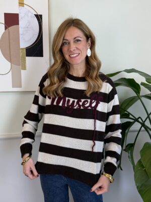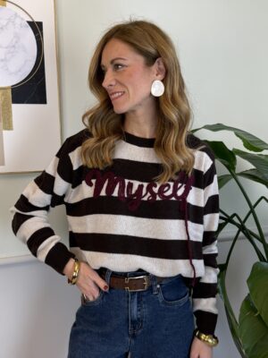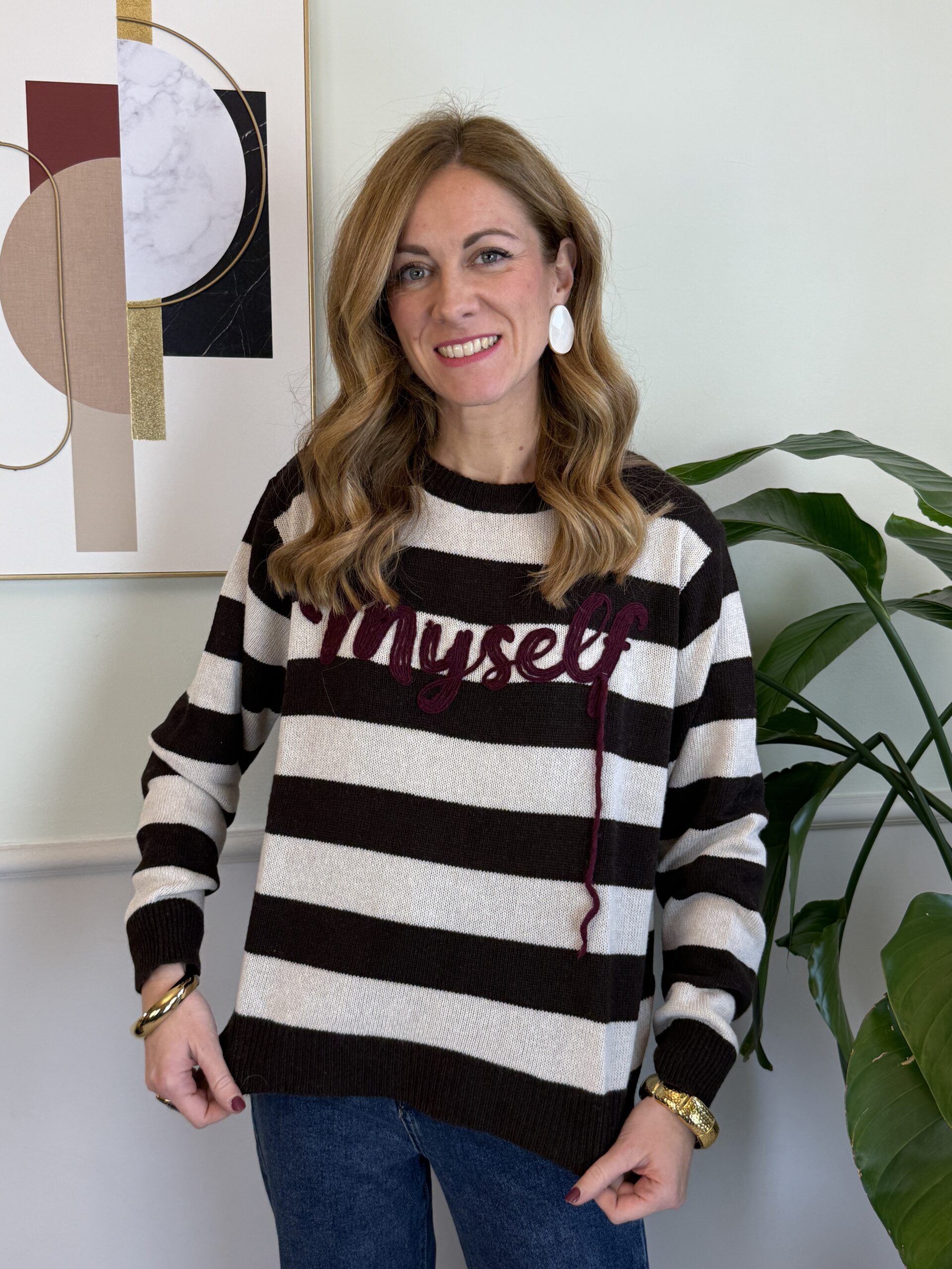 Pull girocollo a scatolina con riga alta e scritta ricamata “Myself”.