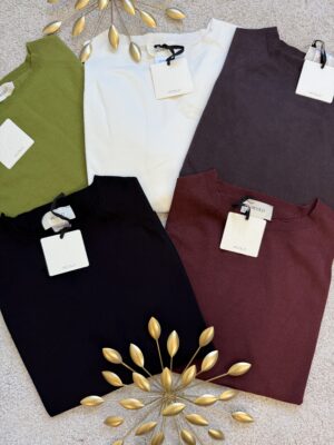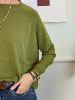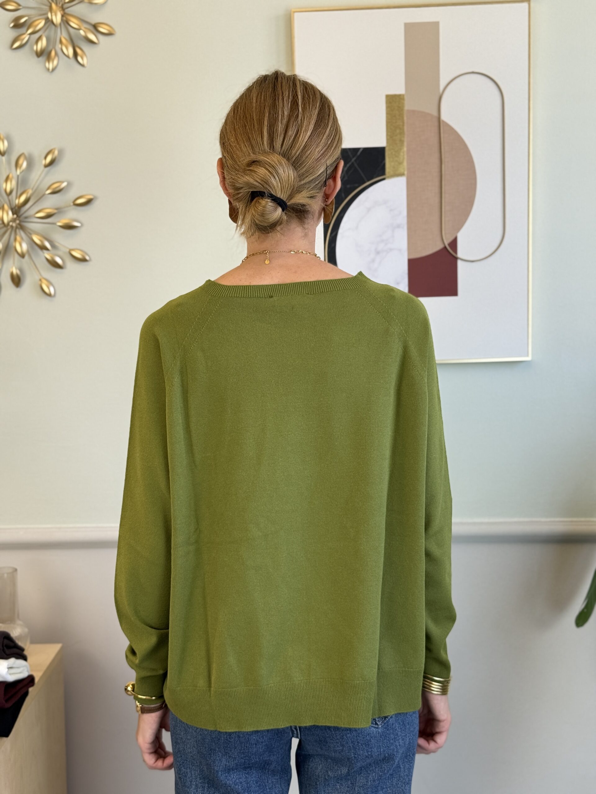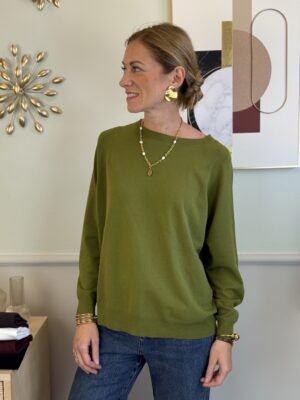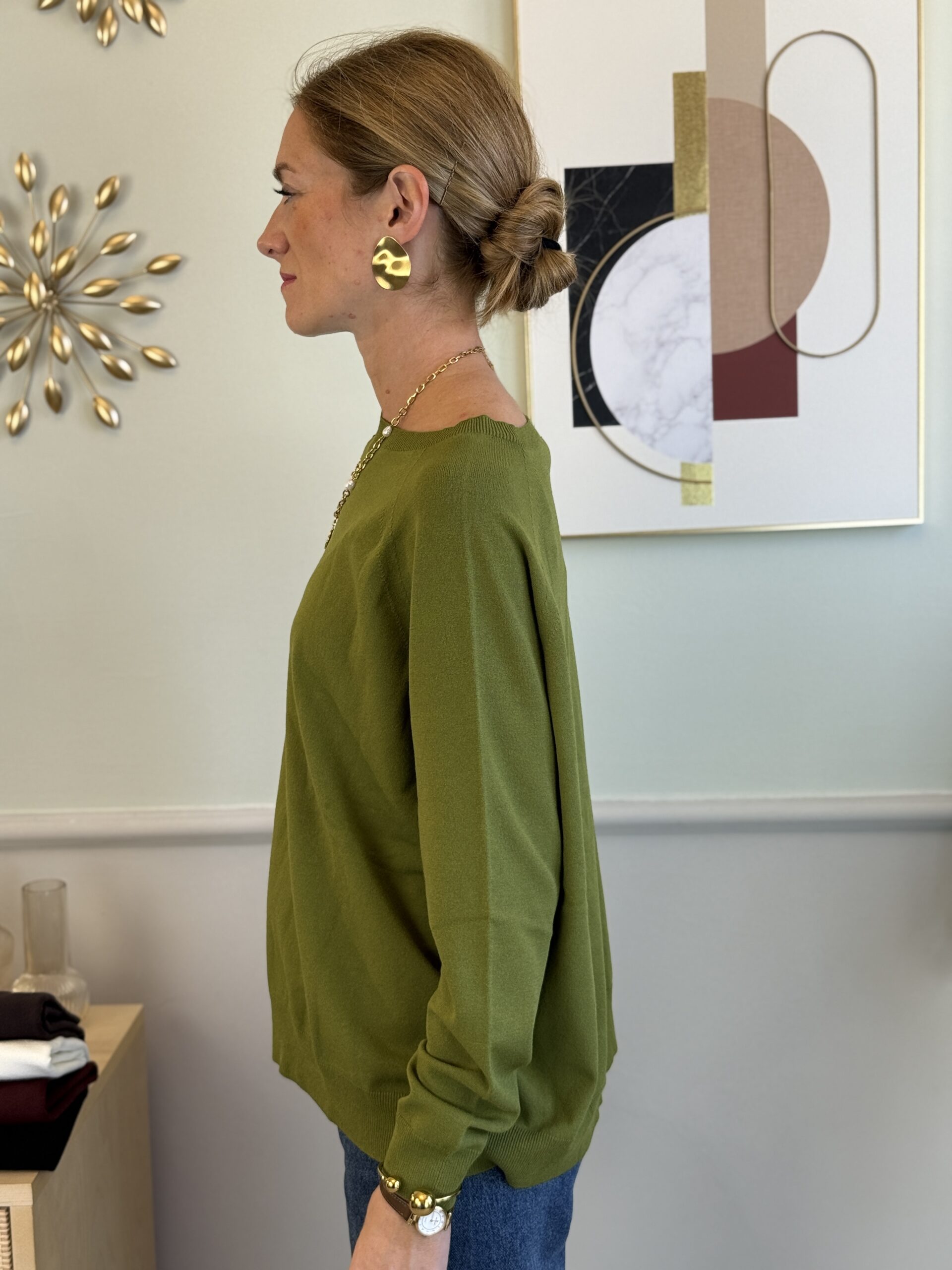 Pull modello a scatolina, con dettaglio del collo a barchetta ad ondina.