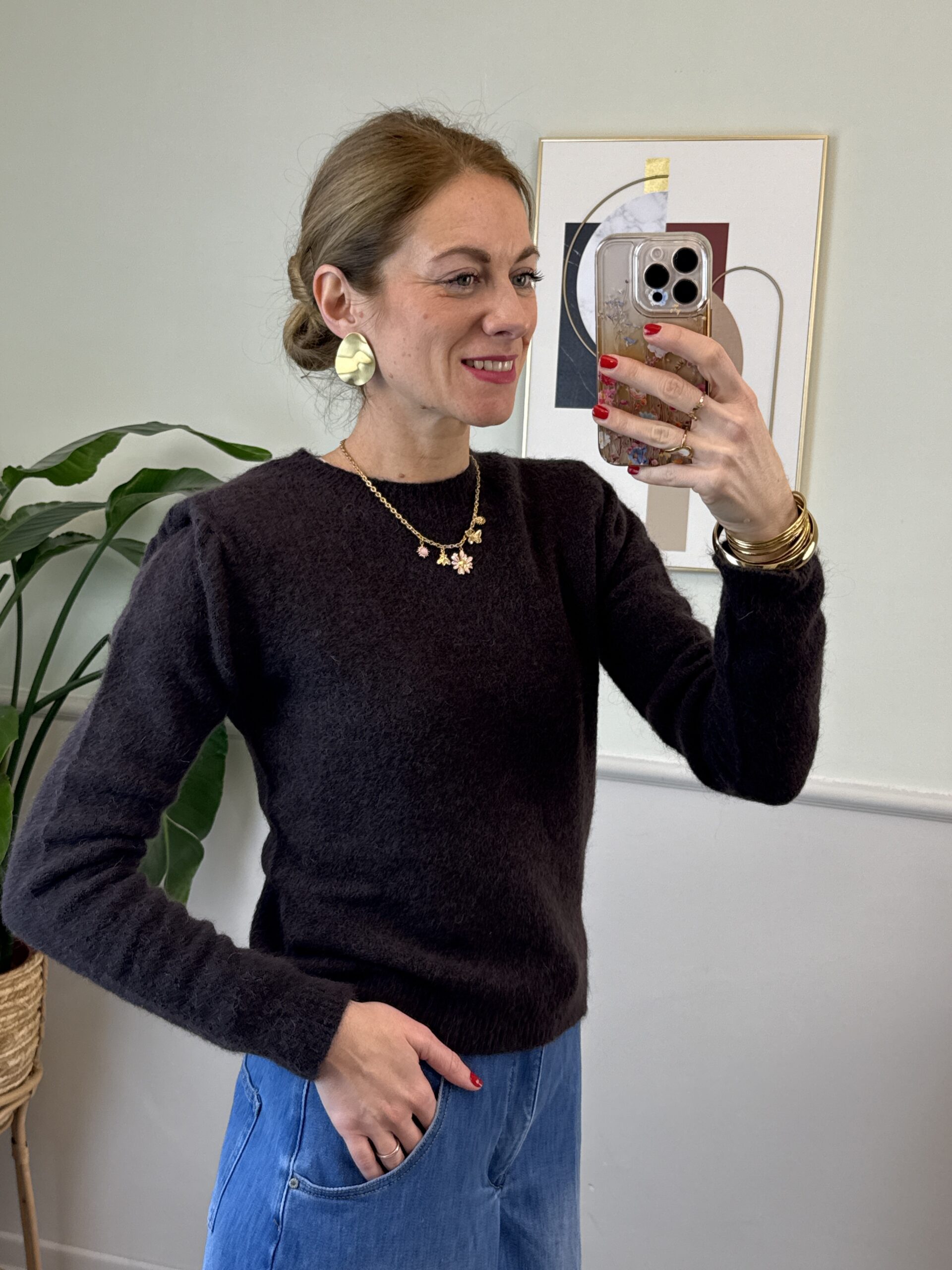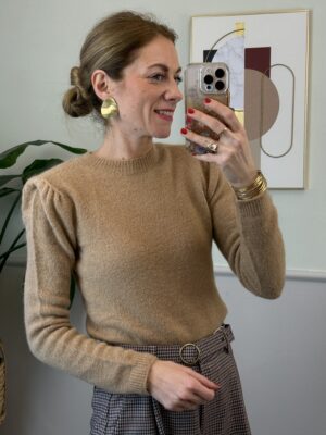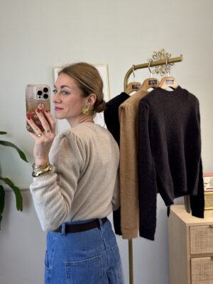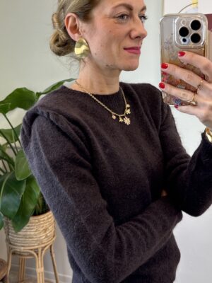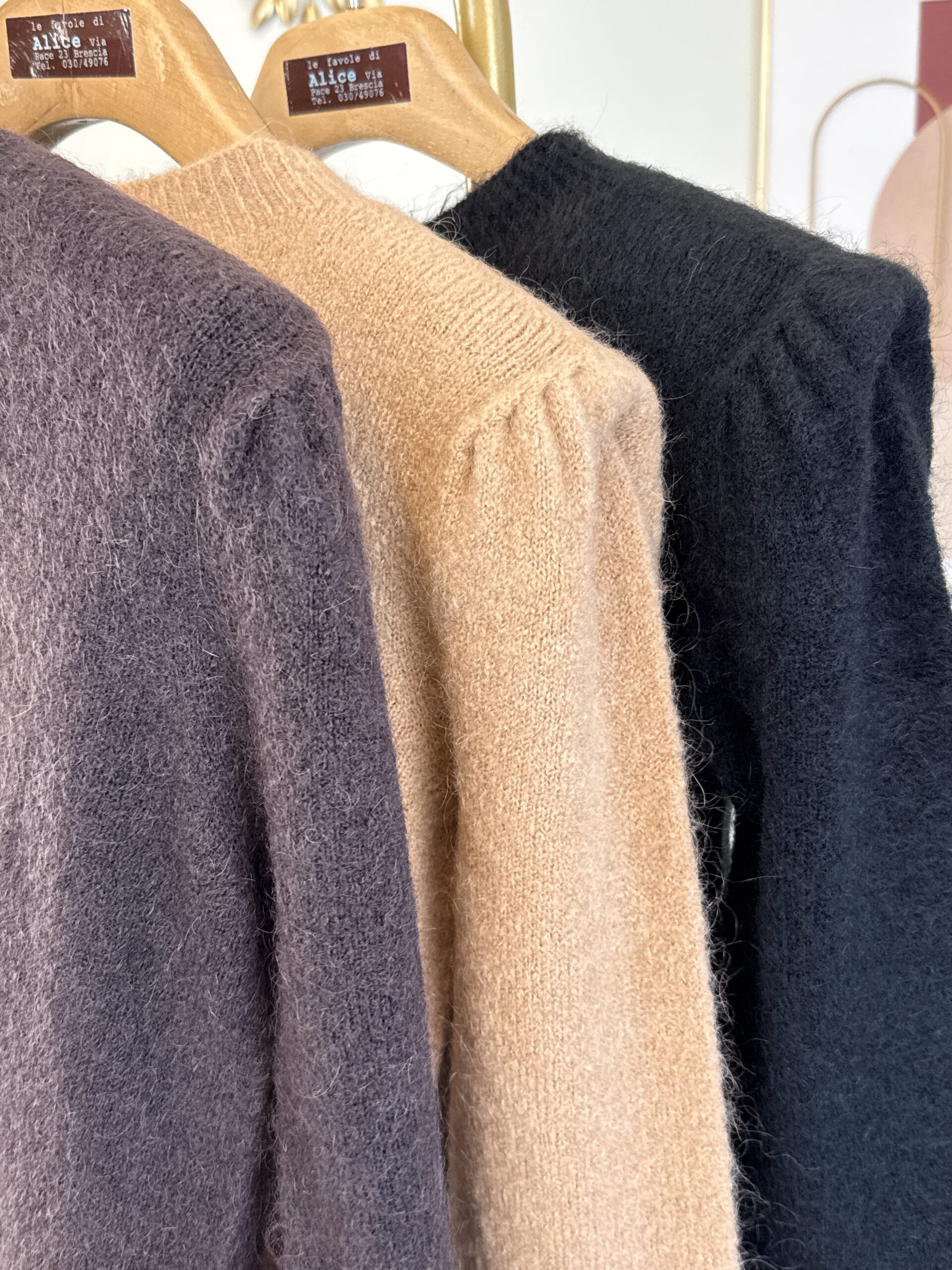 Pull modello slim girocollo misto mohair con spalline.
