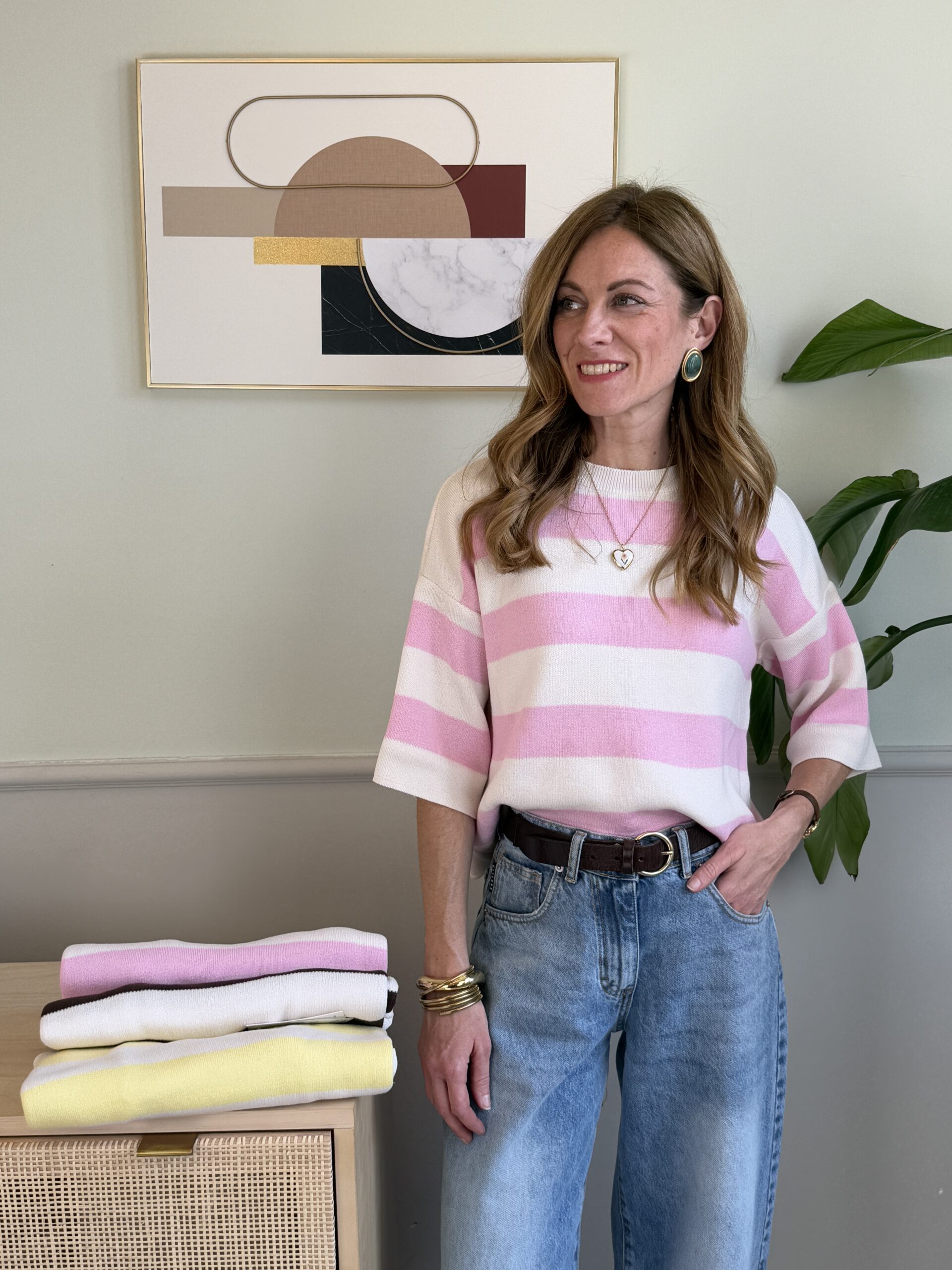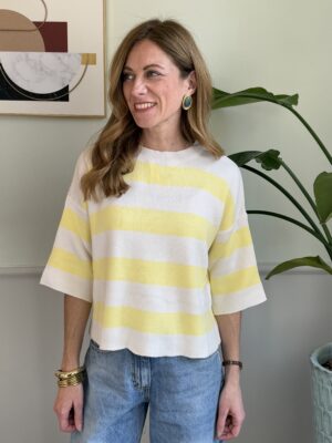Maglia a scatolina rigata girocollo e manica 3/4.