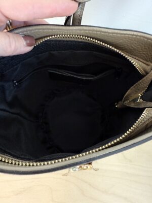 Fodera interna, dettagli dorati e tracolla regolabile.