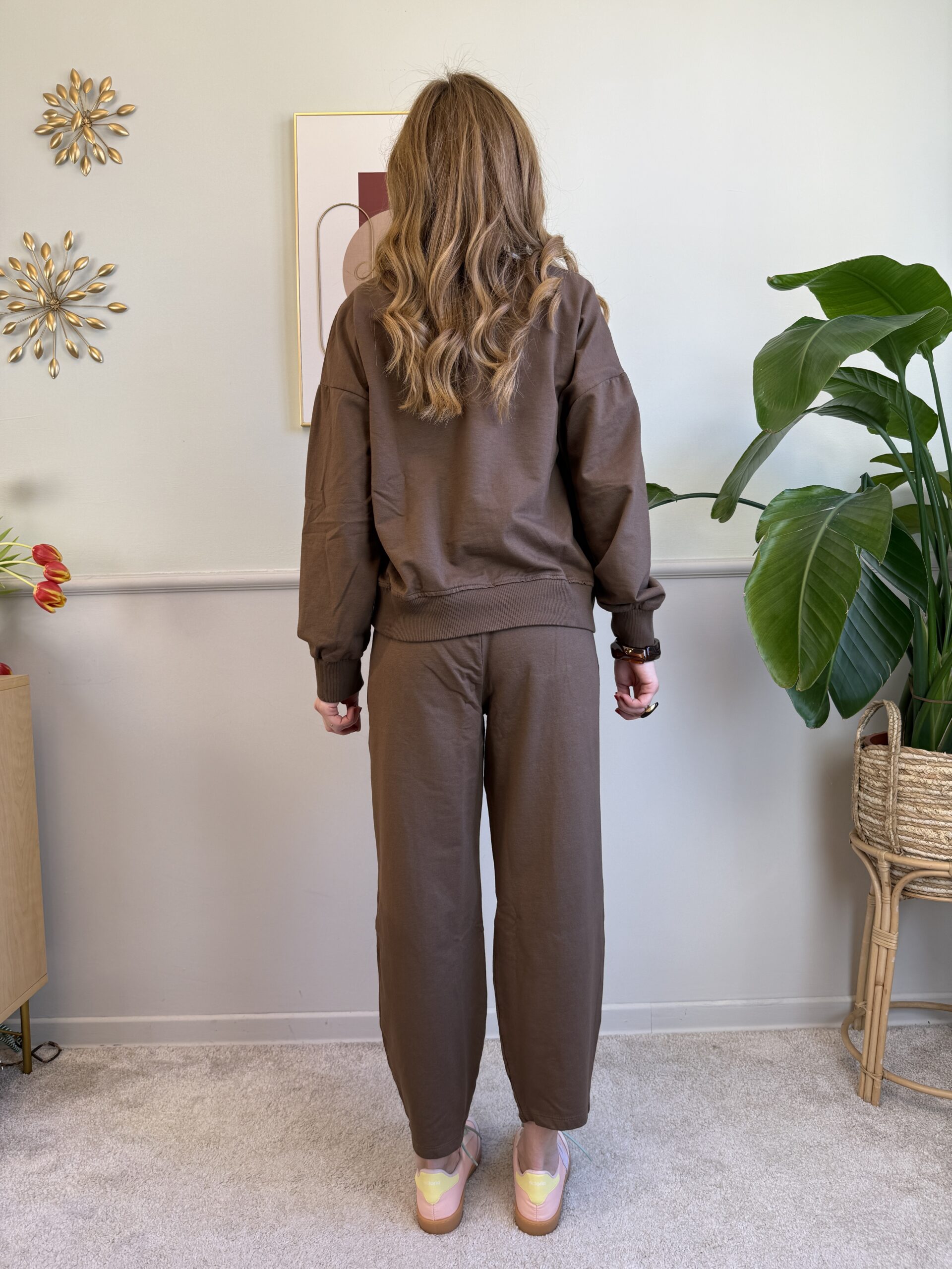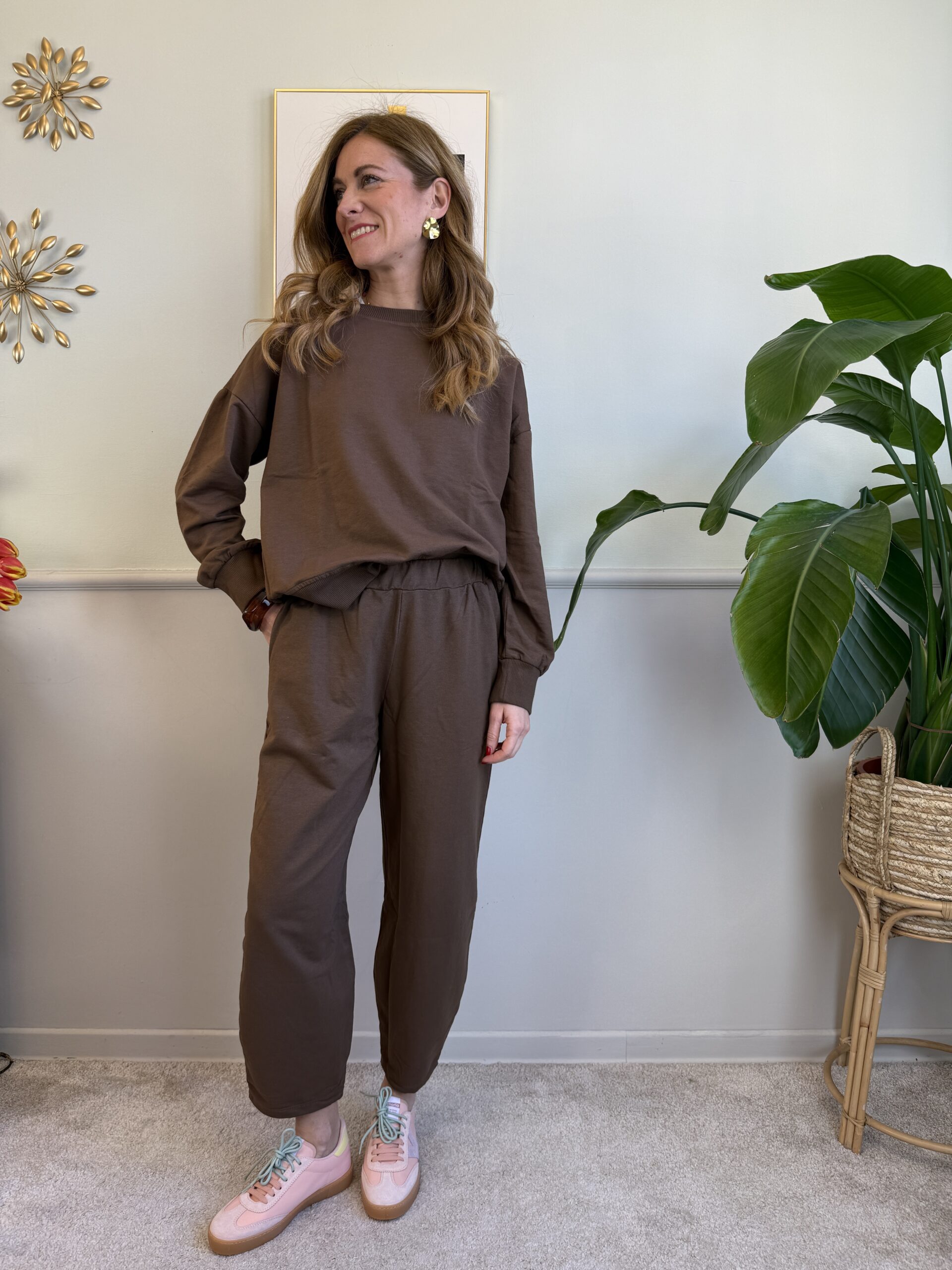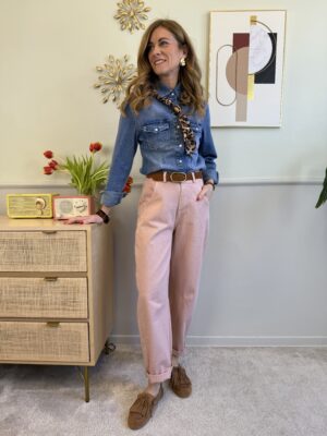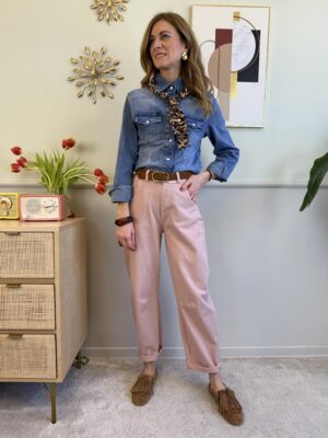 -Panta barrel con gamba ampia che si stringe alla caviglia, elastico in vita e tasche laterali invisibili.