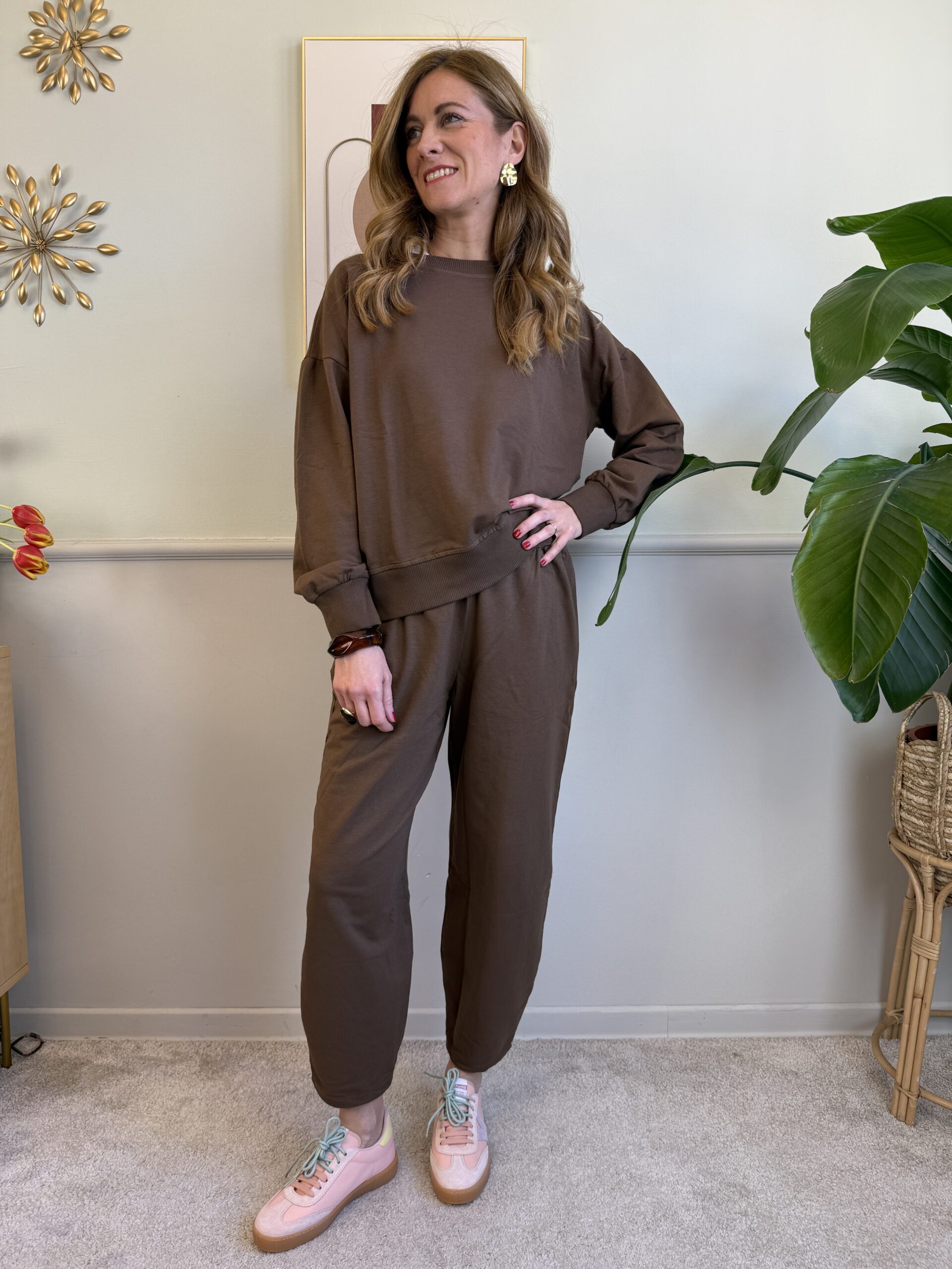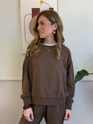-Felpa over girocollo con spalla scesa e orli elasticizzati.