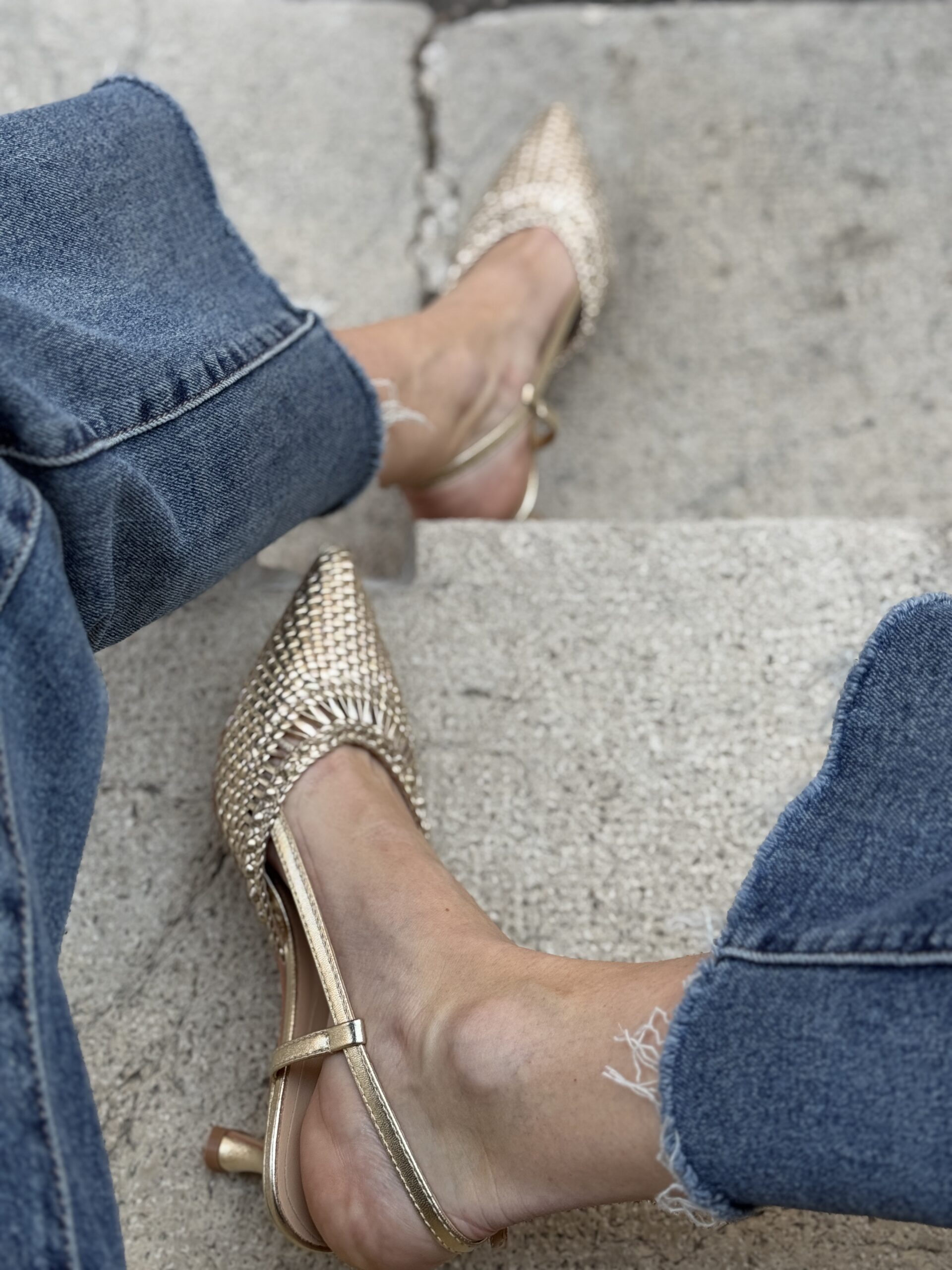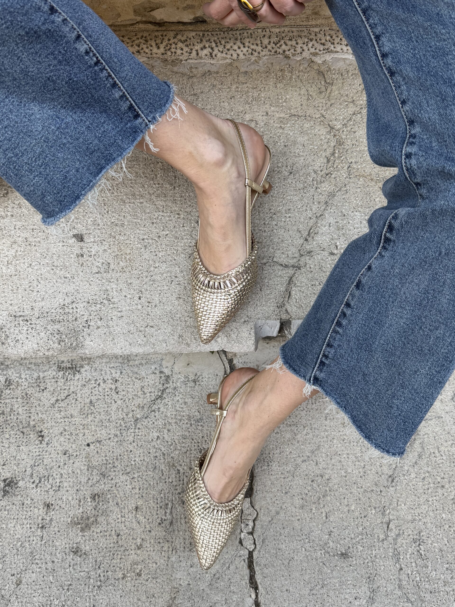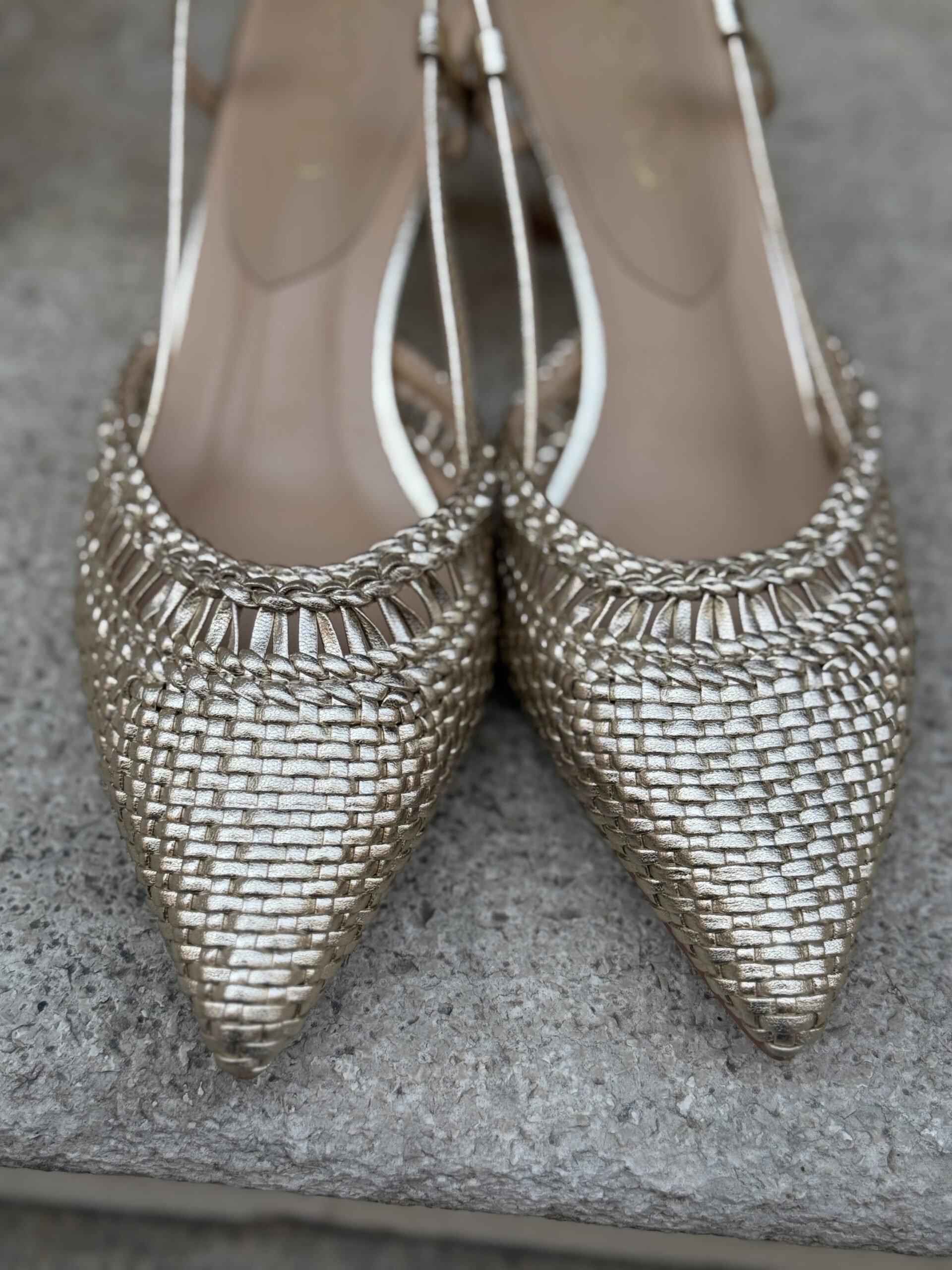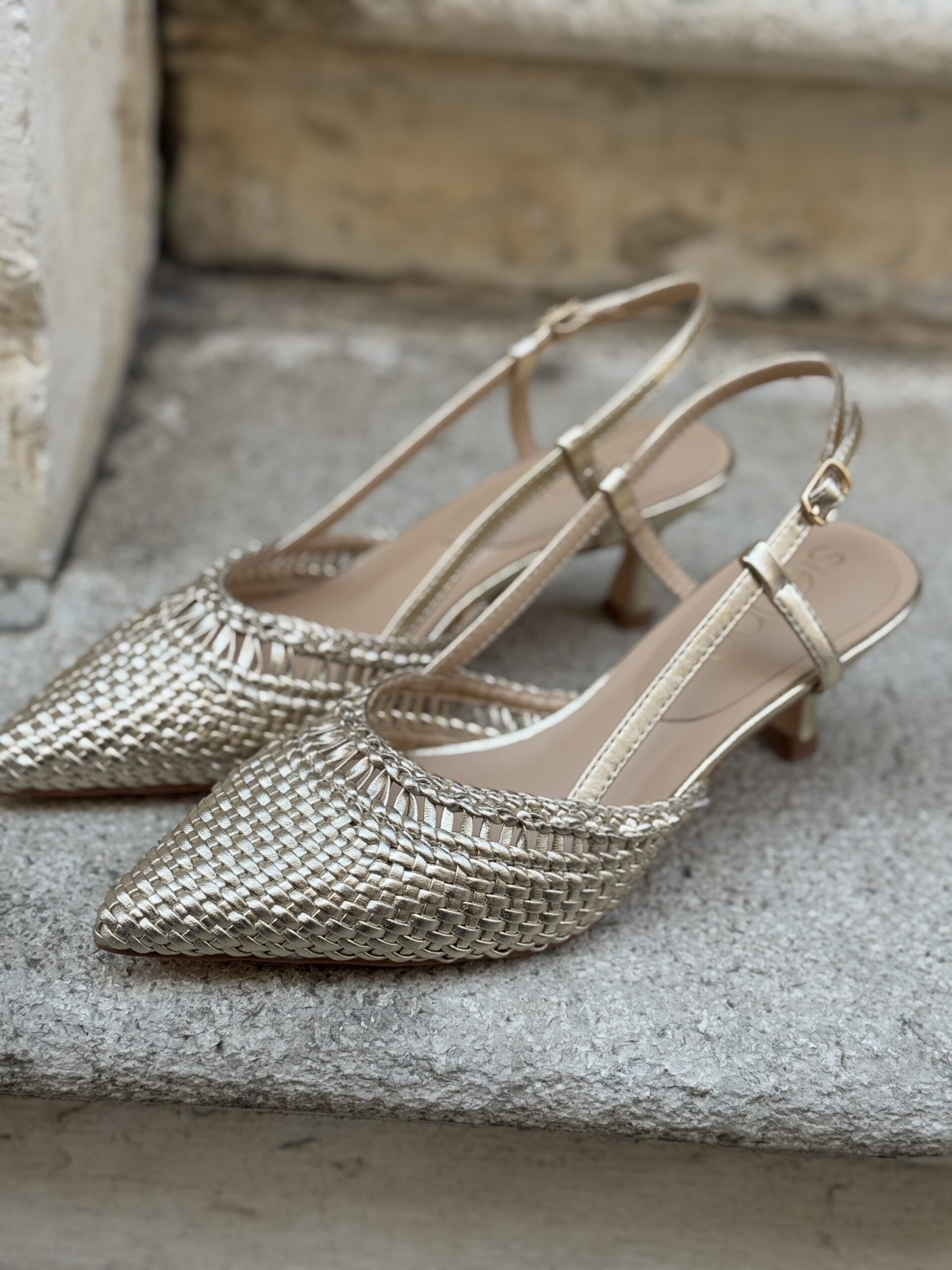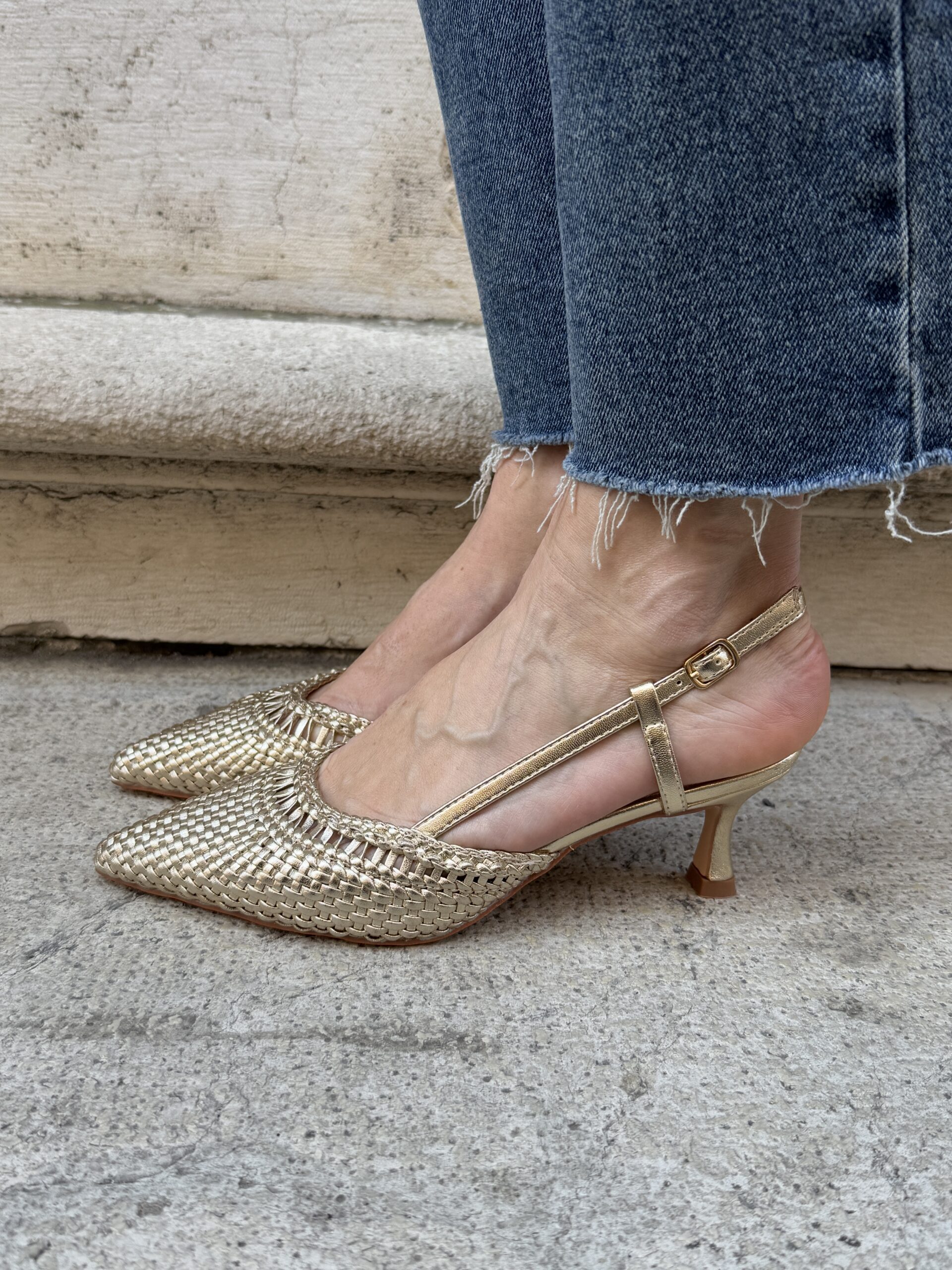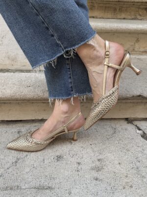 Sling back intrecciate a punta ORO