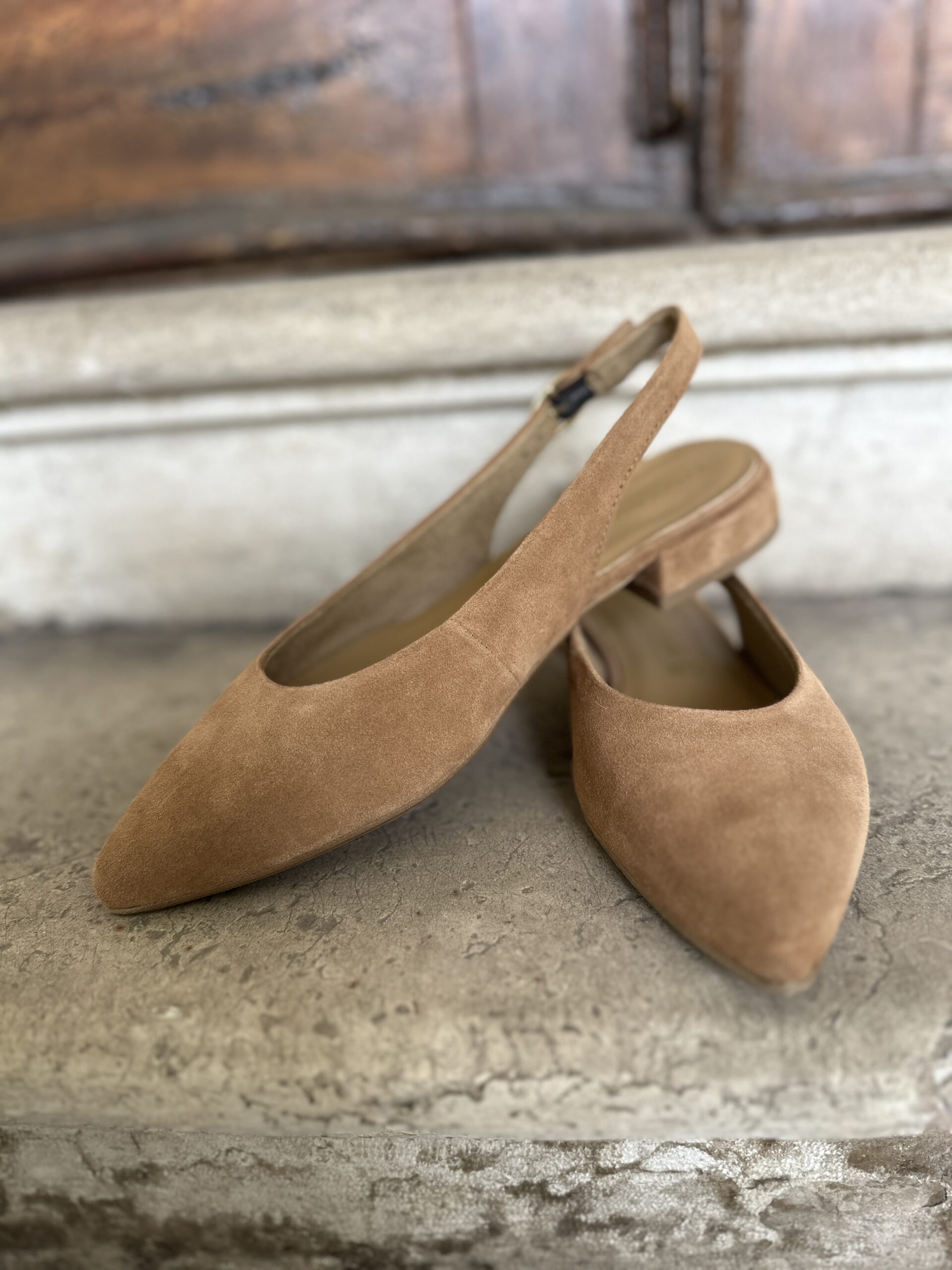 Slingback a punta scamosciate Cognac