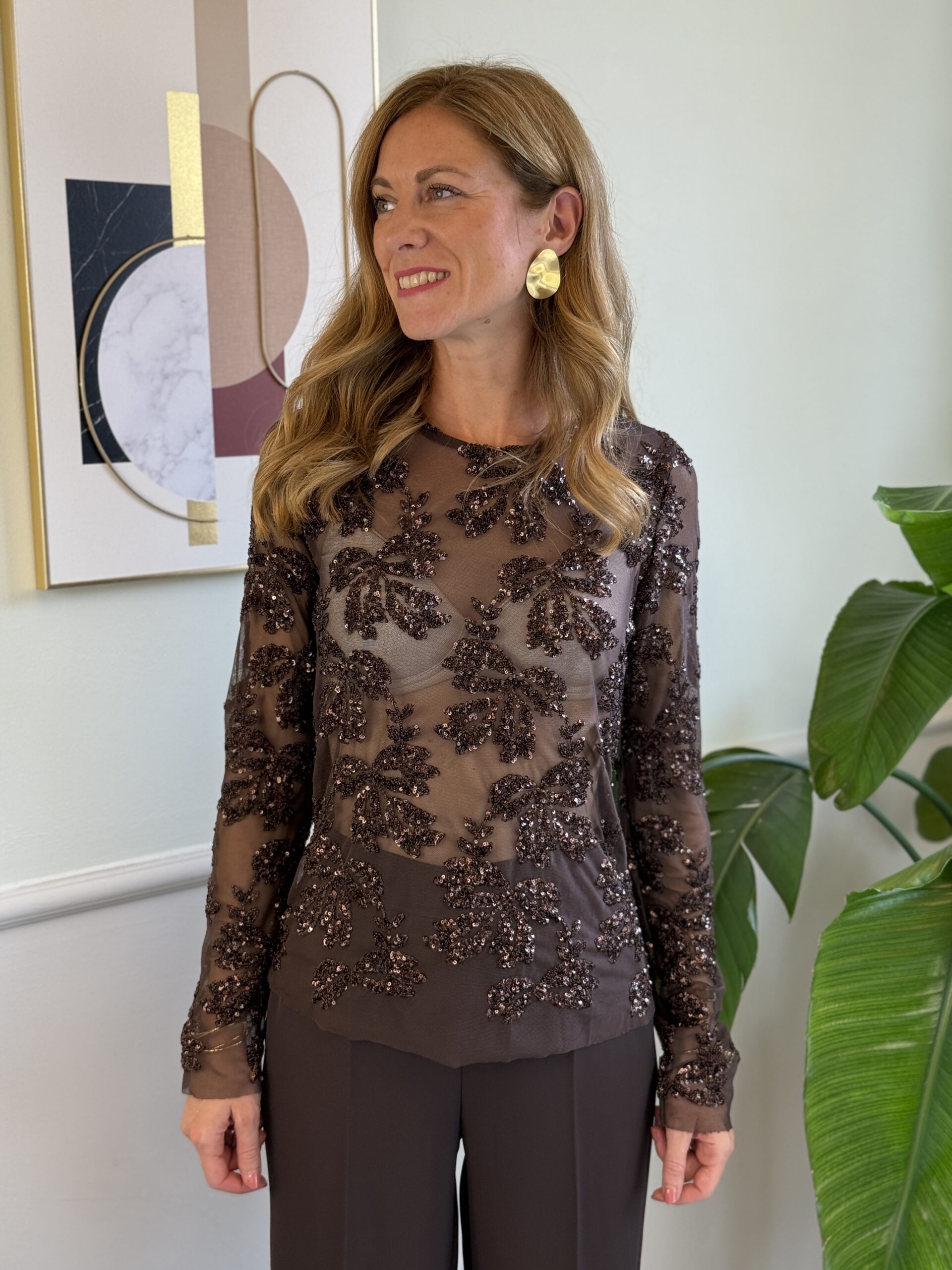 Sotto giacca in tulle con paillettes girocollo, manica lunga, leggermente trasparente potete indossarlo con una canotta o intimo node!