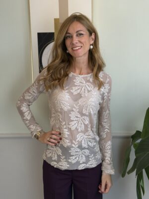 Sotto giacca in tulle con paillettes girocollo, manica lunga, leggermente trasparente potete indossarlo con una canotta o intimo nude!