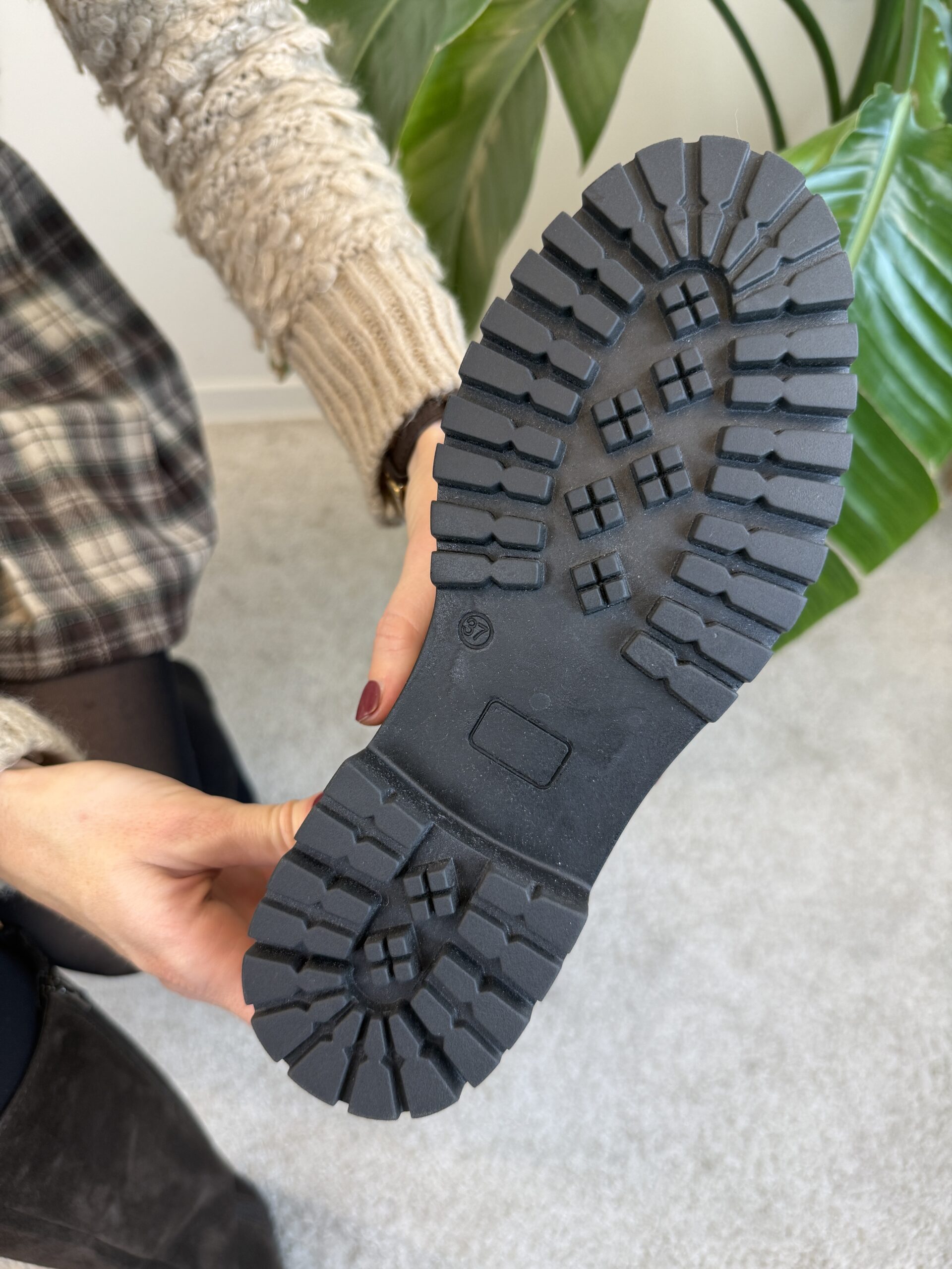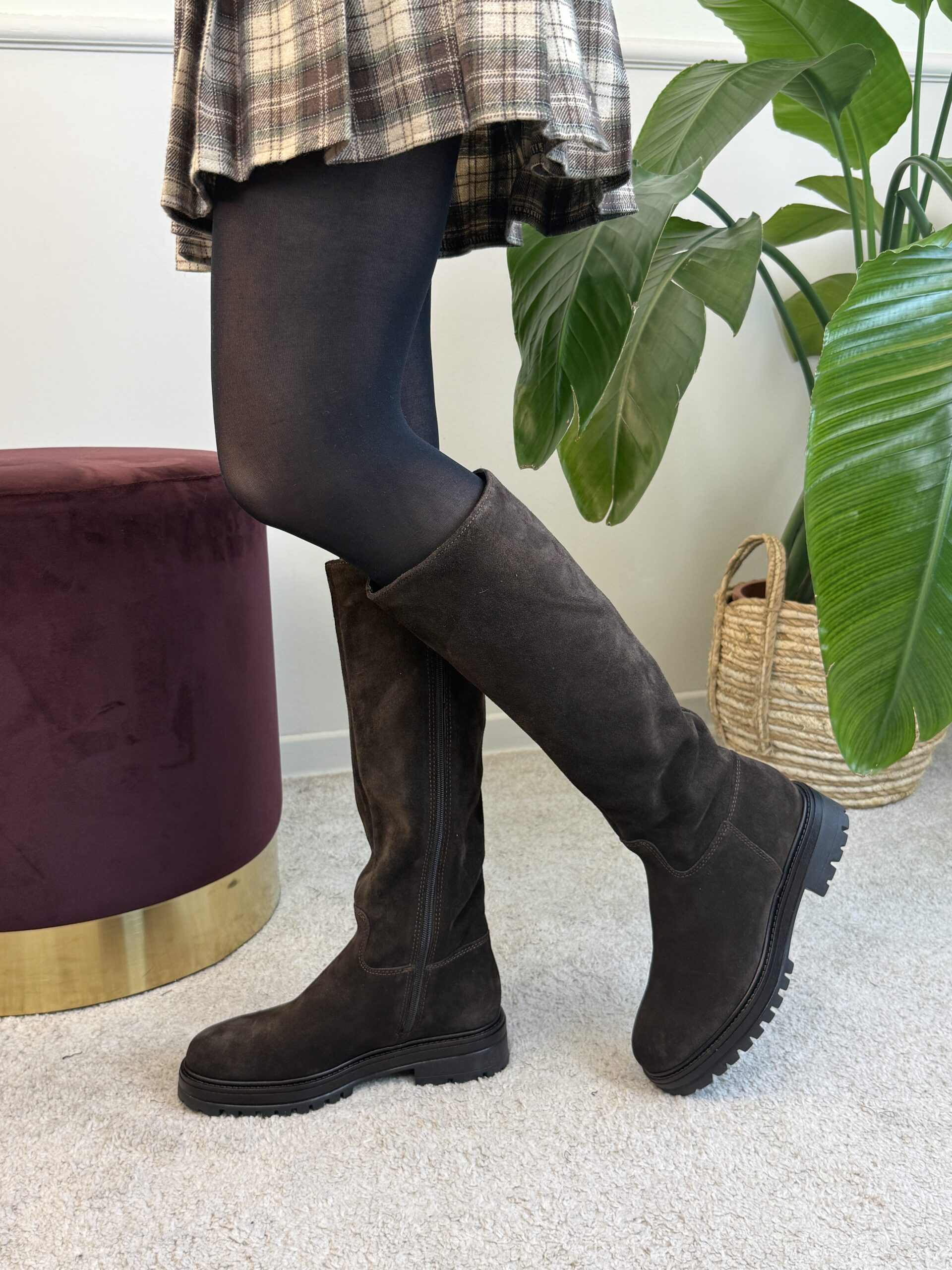Stivale alto in pelle scamosciata con interno in panno, suola carro armato, zip laterale interna.