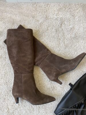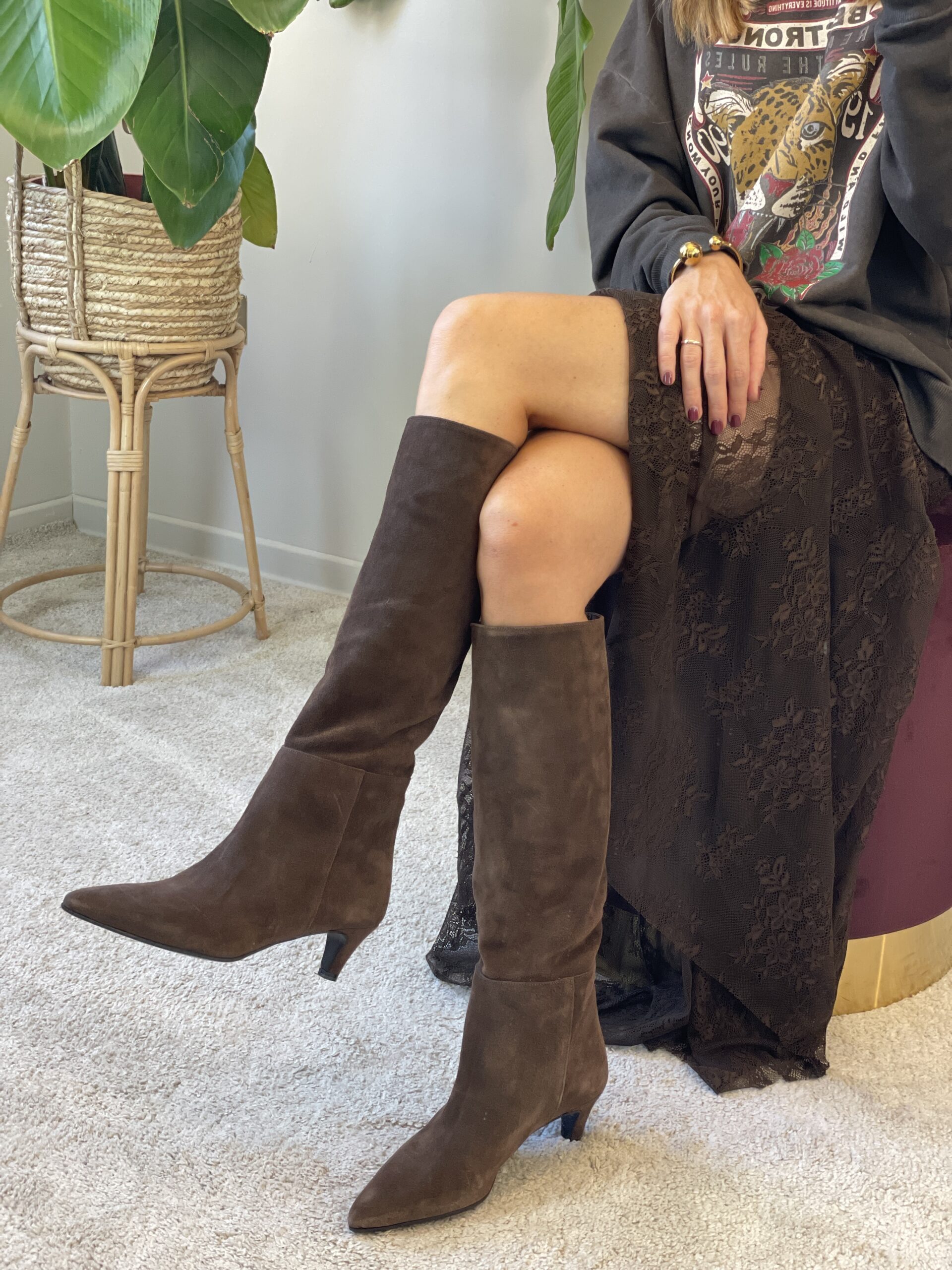 Stivali tacco Kitten in camoscio marrone best seller no black friday