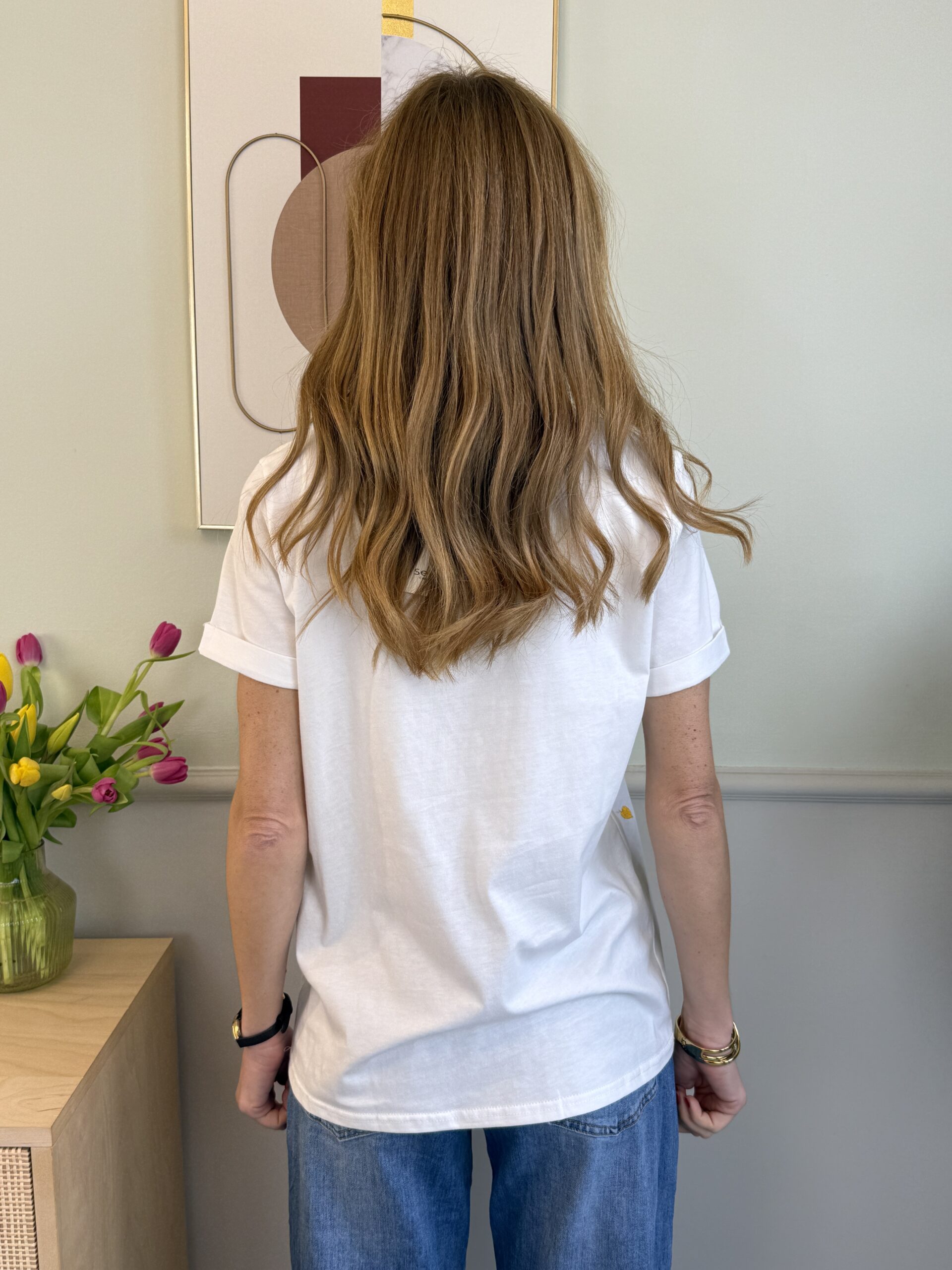 T shirt giro collo e manica con risvoltino.
