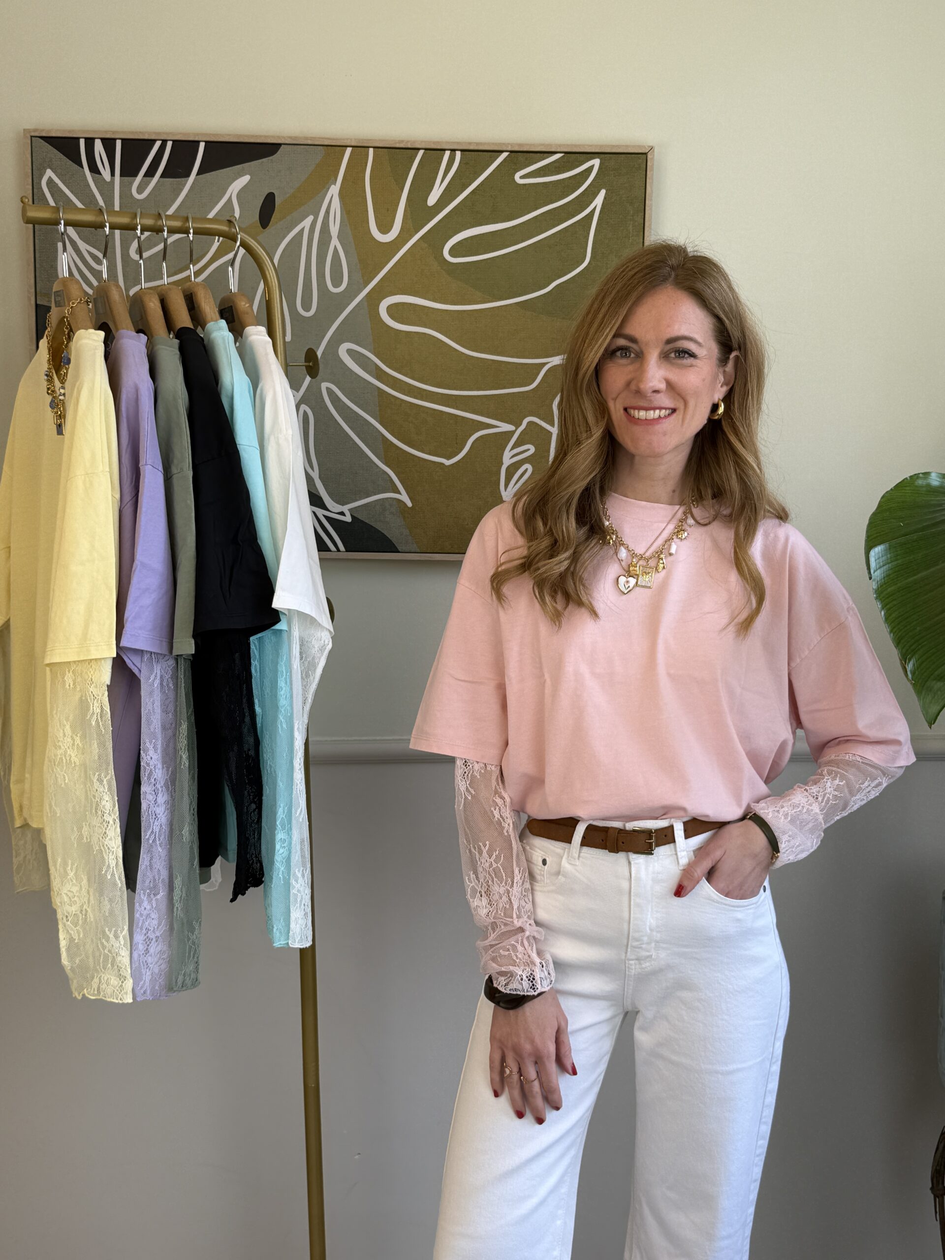 T-shirt over girocollo in cotone con manica in pizzo.