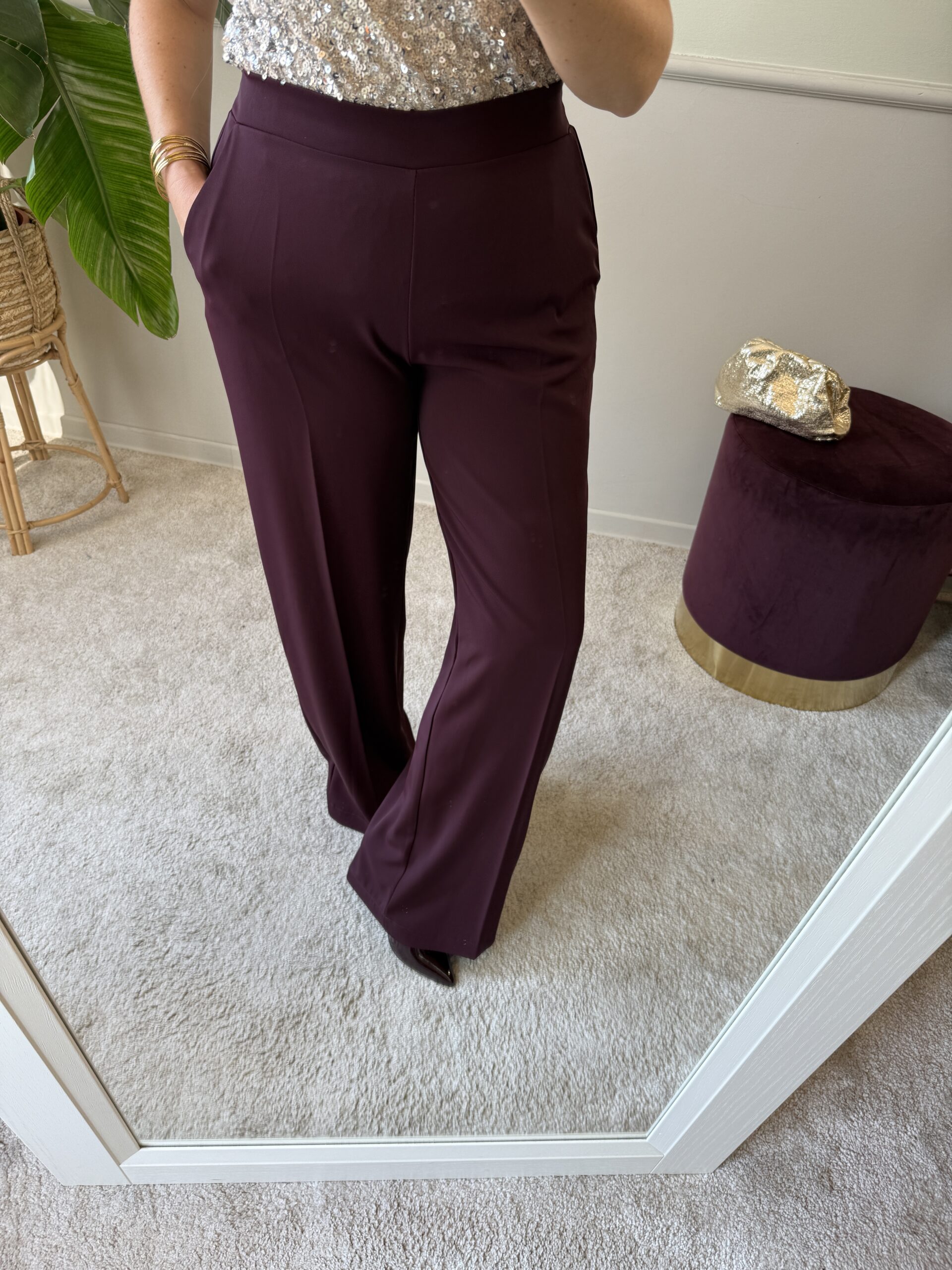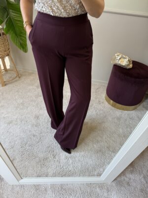 -Panta palazzo in tessuto fluido a vita alta con elastico posteriore, tasche alla francese.