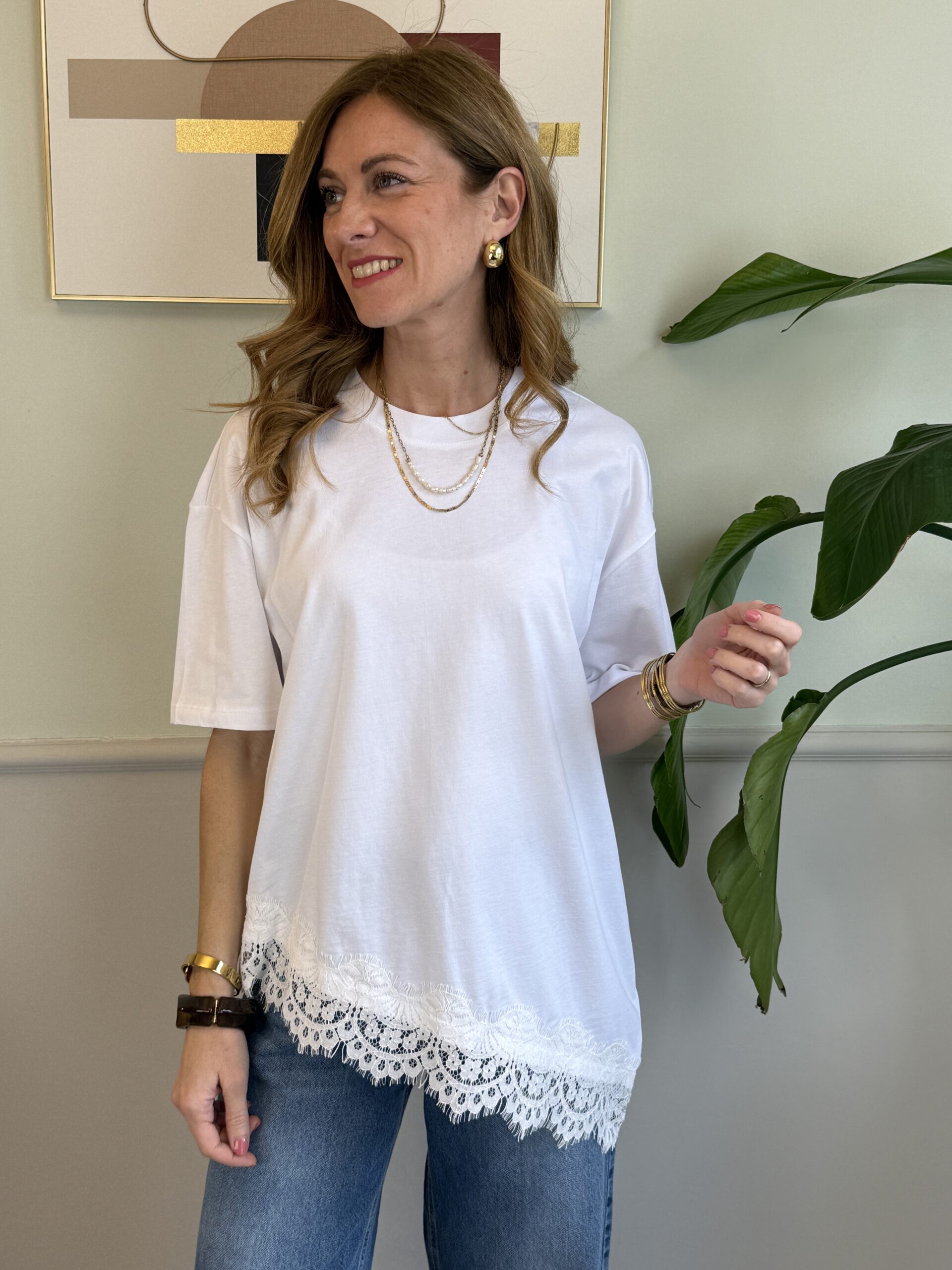 Tee obliqua fondo in pizzo Vicolo 02 BIANCA