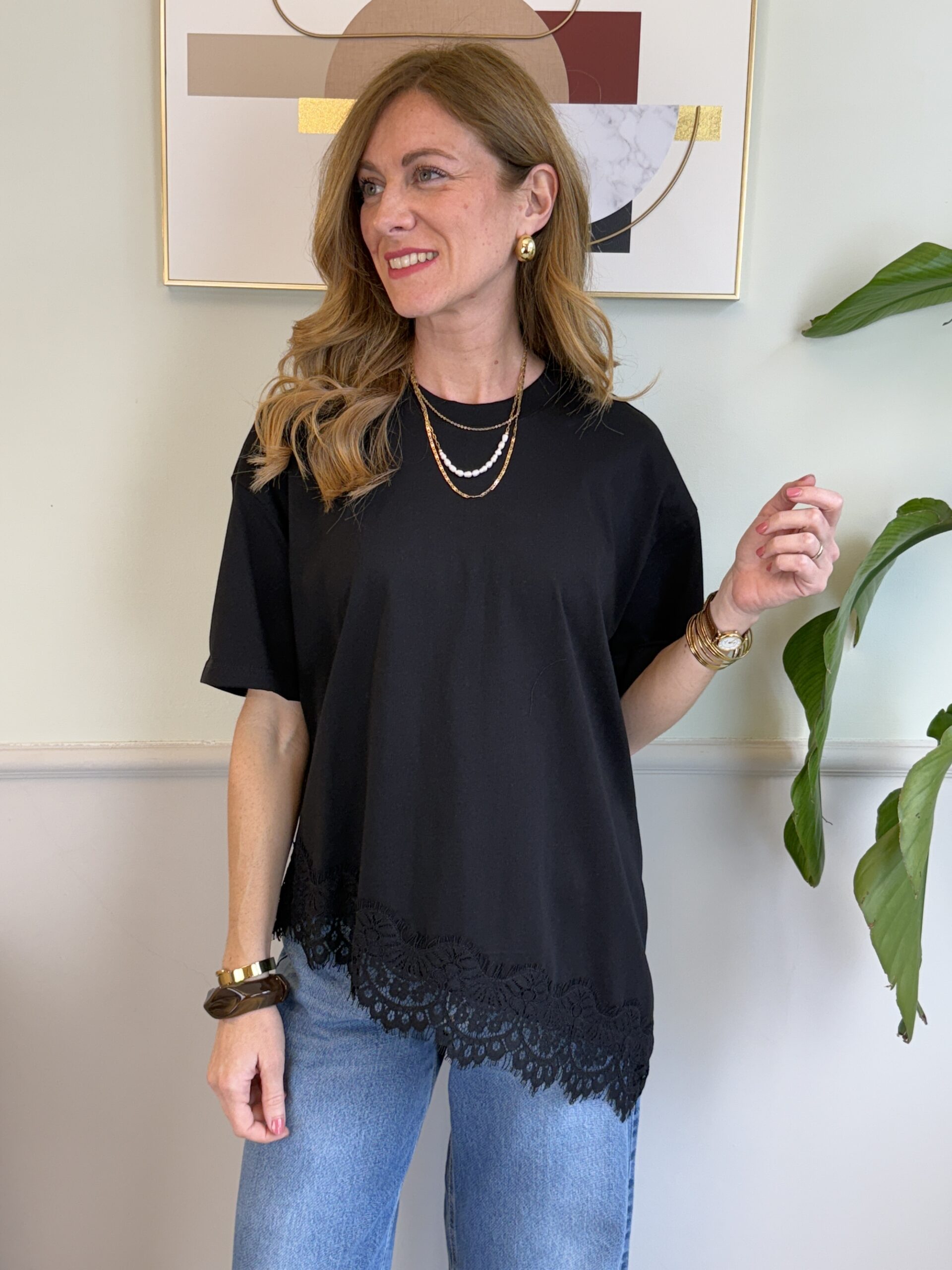 Tee obliqua fondo in pizzo Vicolo 68 NERA