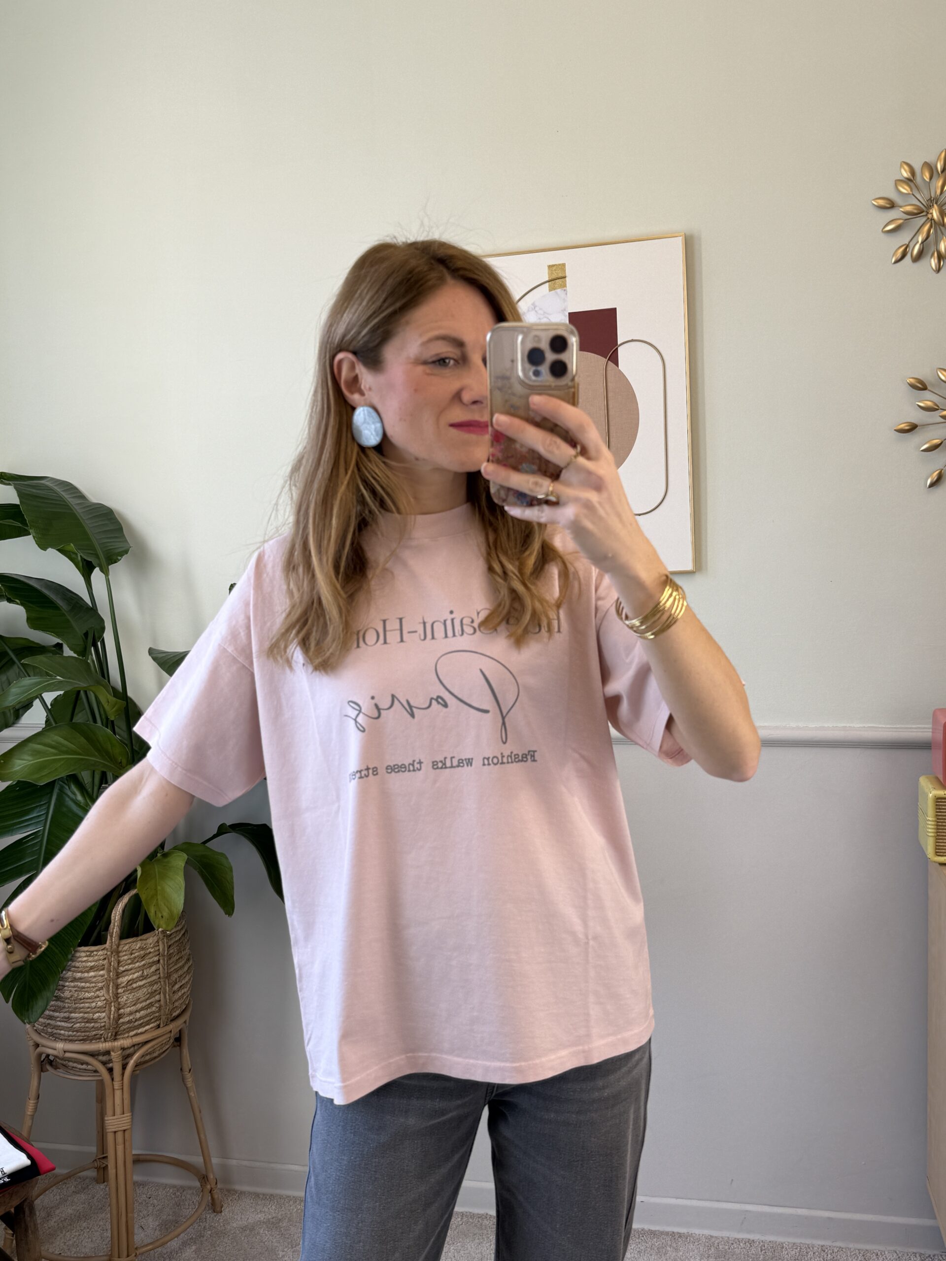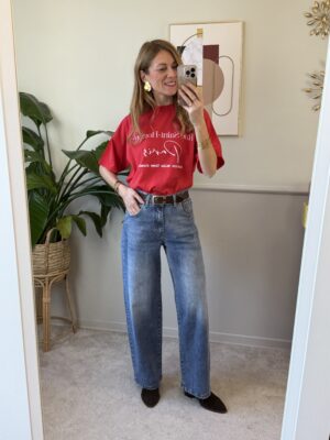 T-shirt over girocollo in cotone con scritte.