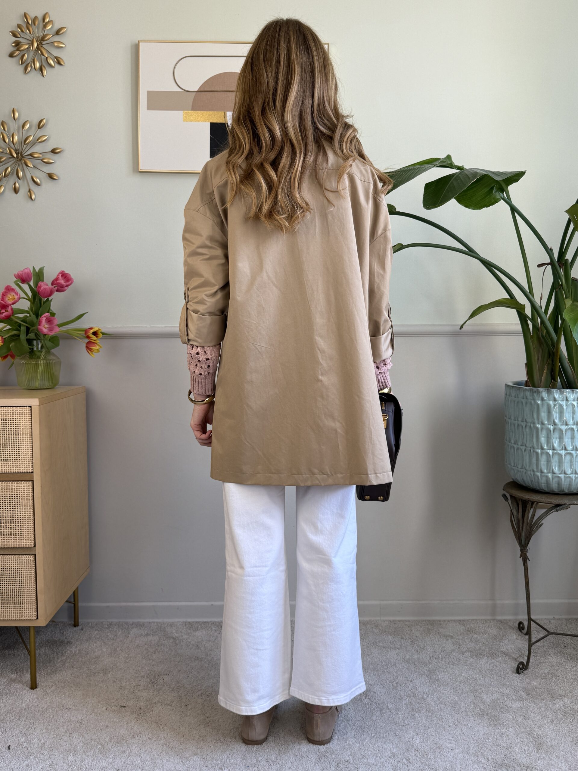 Cappa lunga doppio petto con spalla scesa, manica a 7/8 con risvolto, tasche sul davanti, foderato.