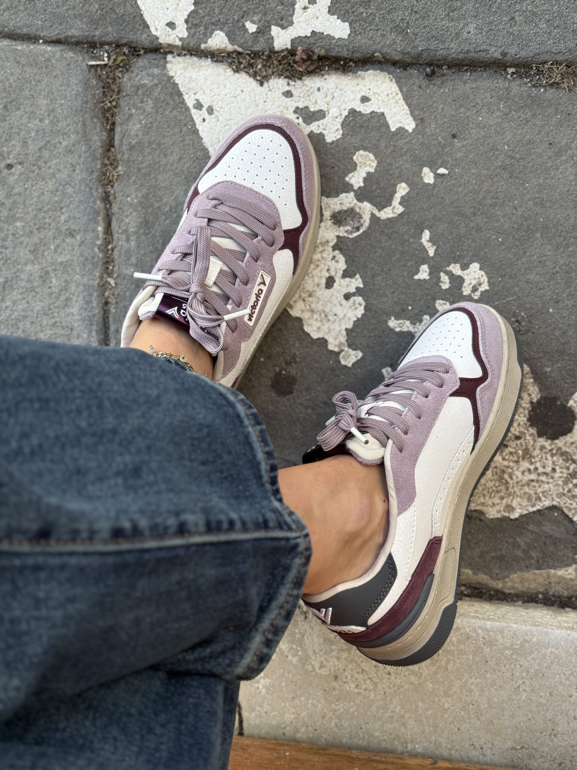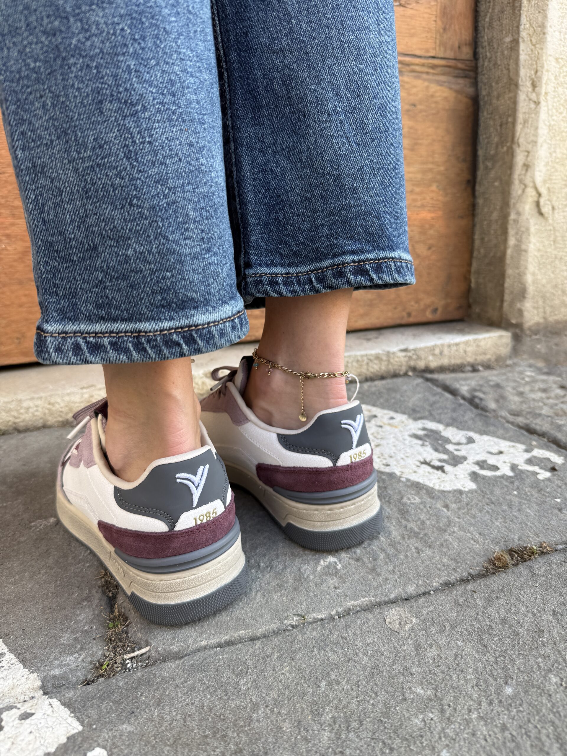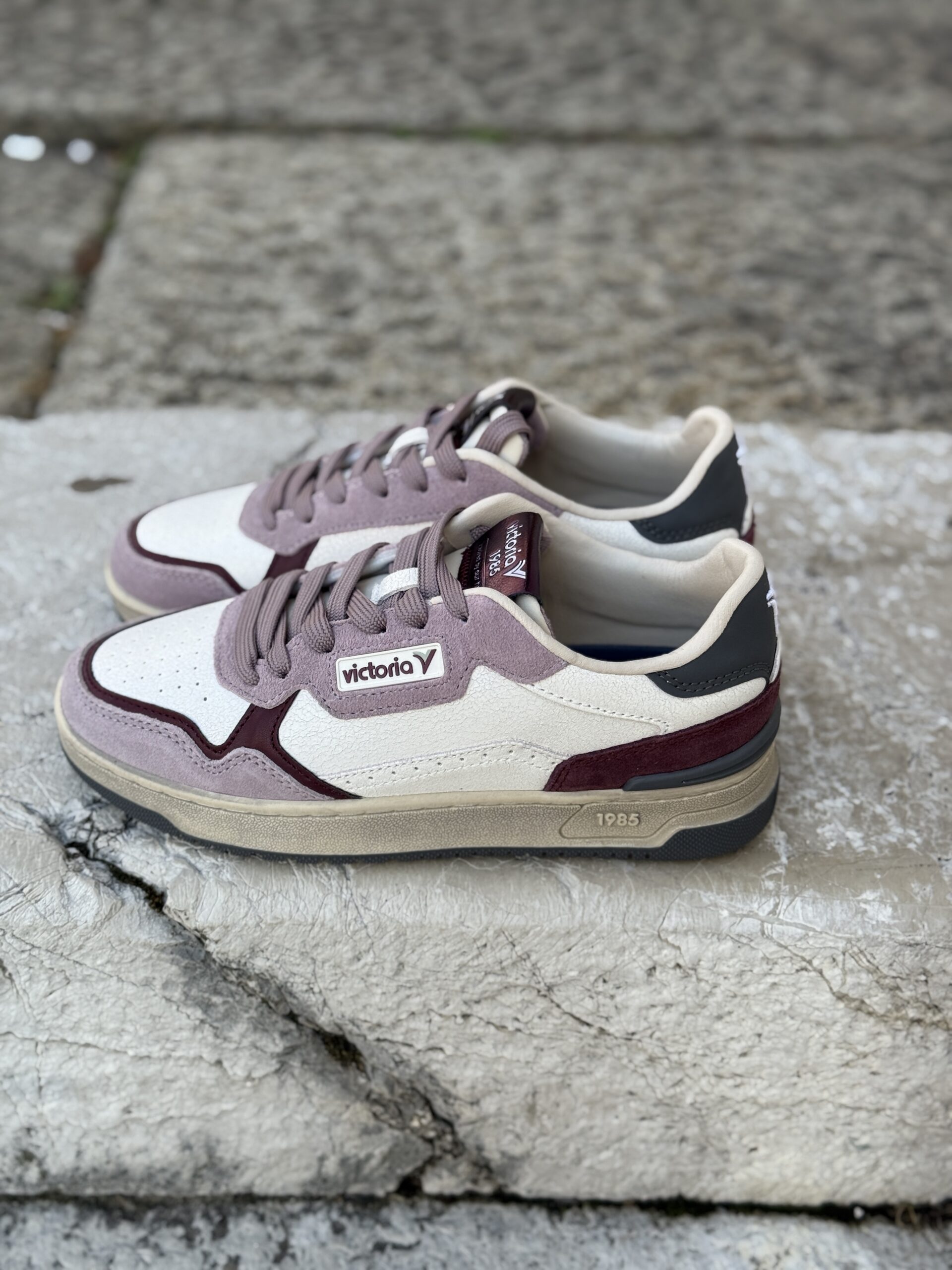 Sneakers realizzate in pelle bovina di alta qualità e pezzi in crosta di pelle. Logo anni ’80 di victoria incorniciato sul lato. Dettagli colorati, stabilizzatore sul tallone e suola leggermente ambrata. Includono una soletta ergonomica che si adatta alla forma del piede regalando una sensazione di comfort.