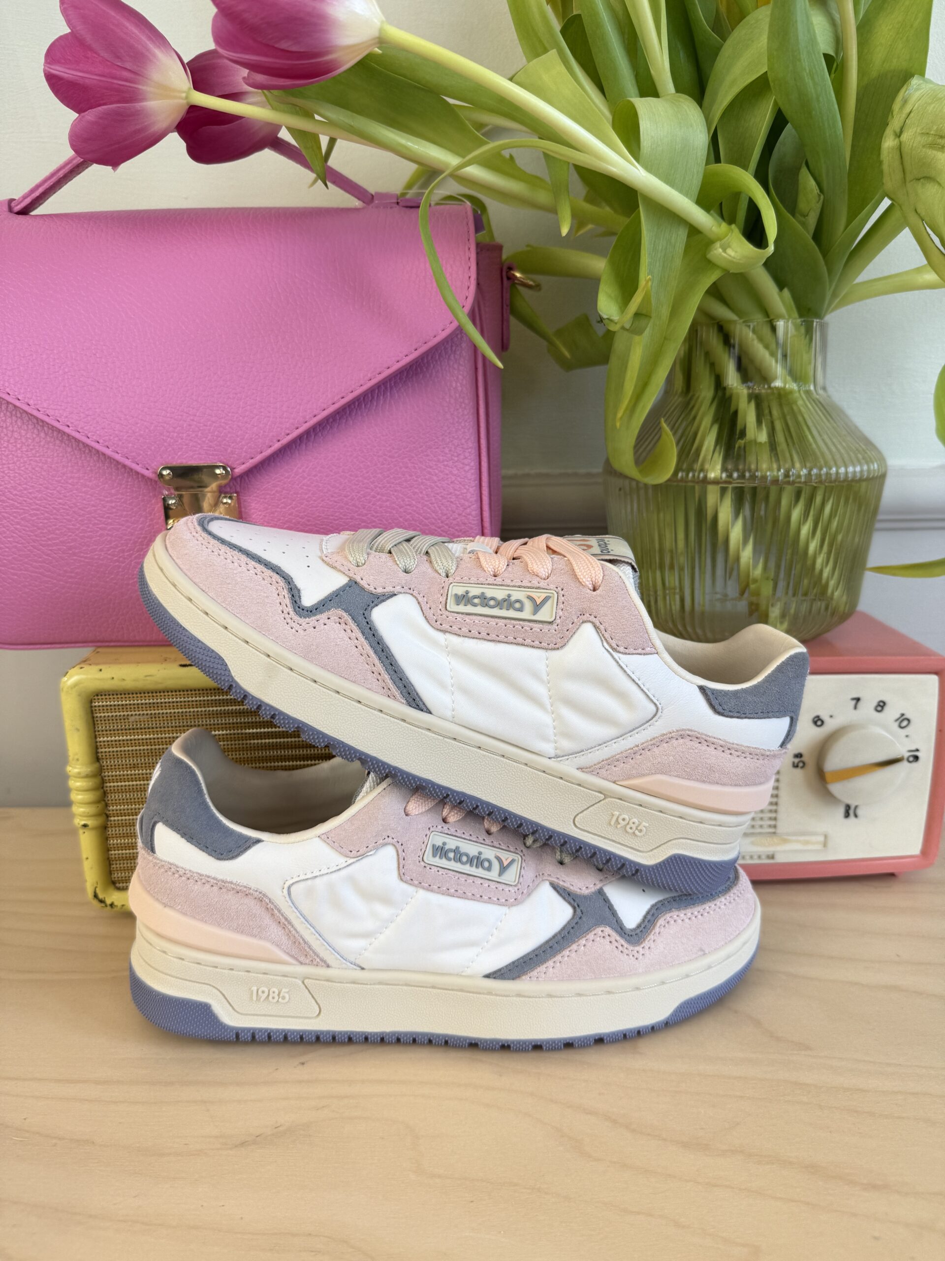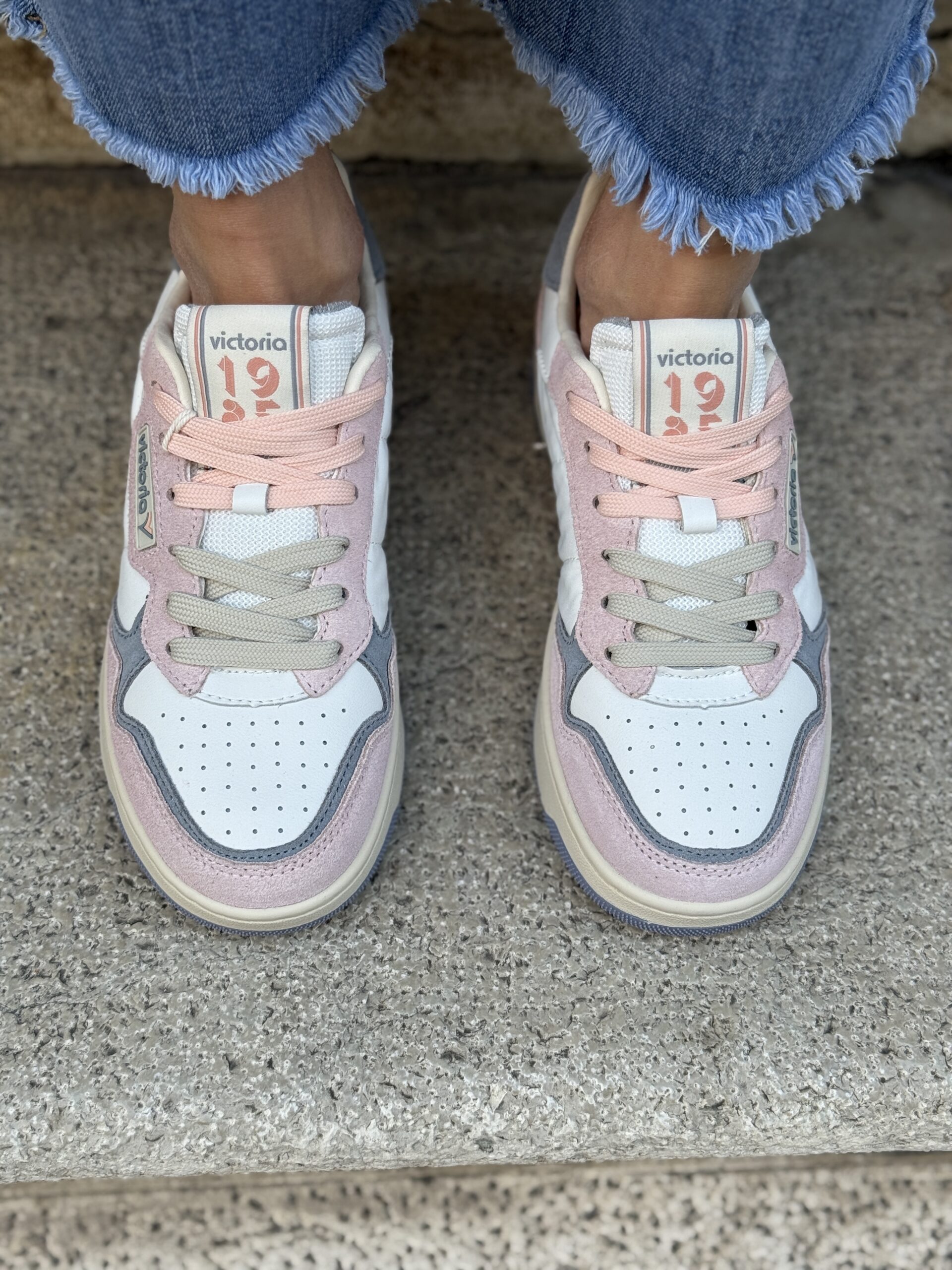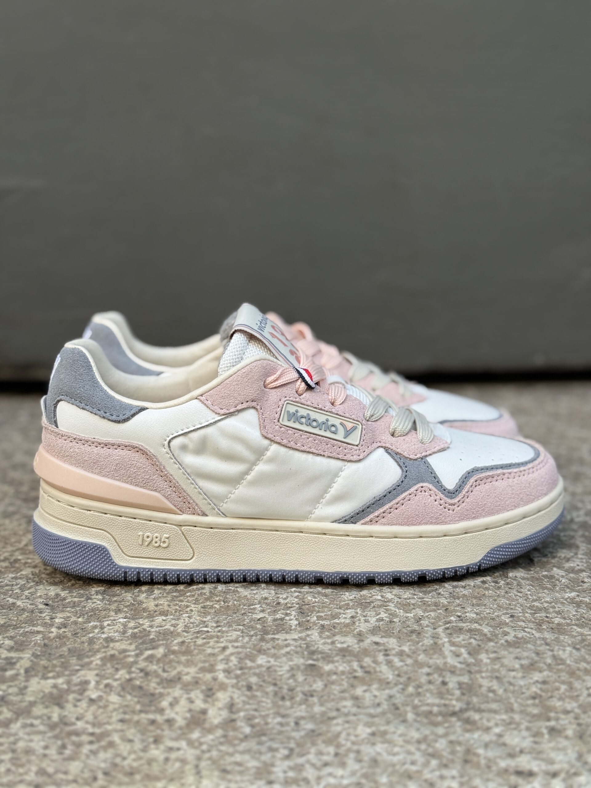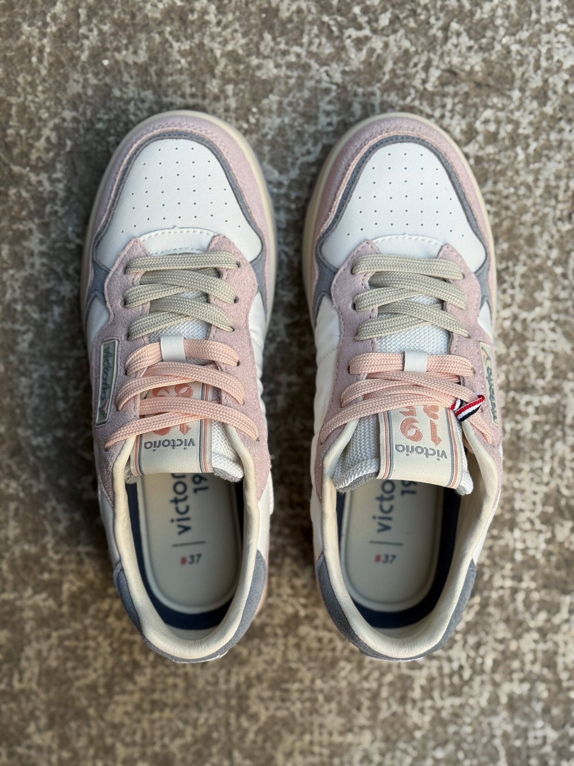 Scarpe sportive unisex realizzate in pelle con dettagli in nylon. Logo anni ’80 di victoria incorniciato sul lato. Chiusura con doppio laccio. Comoda suola bicolore in gomma con stabilizzatore sul tallone. Include anche una soletta ergonomica che si adatta alla forma del piede, garantendo una sensazione di comfort. Soletta estraibile.