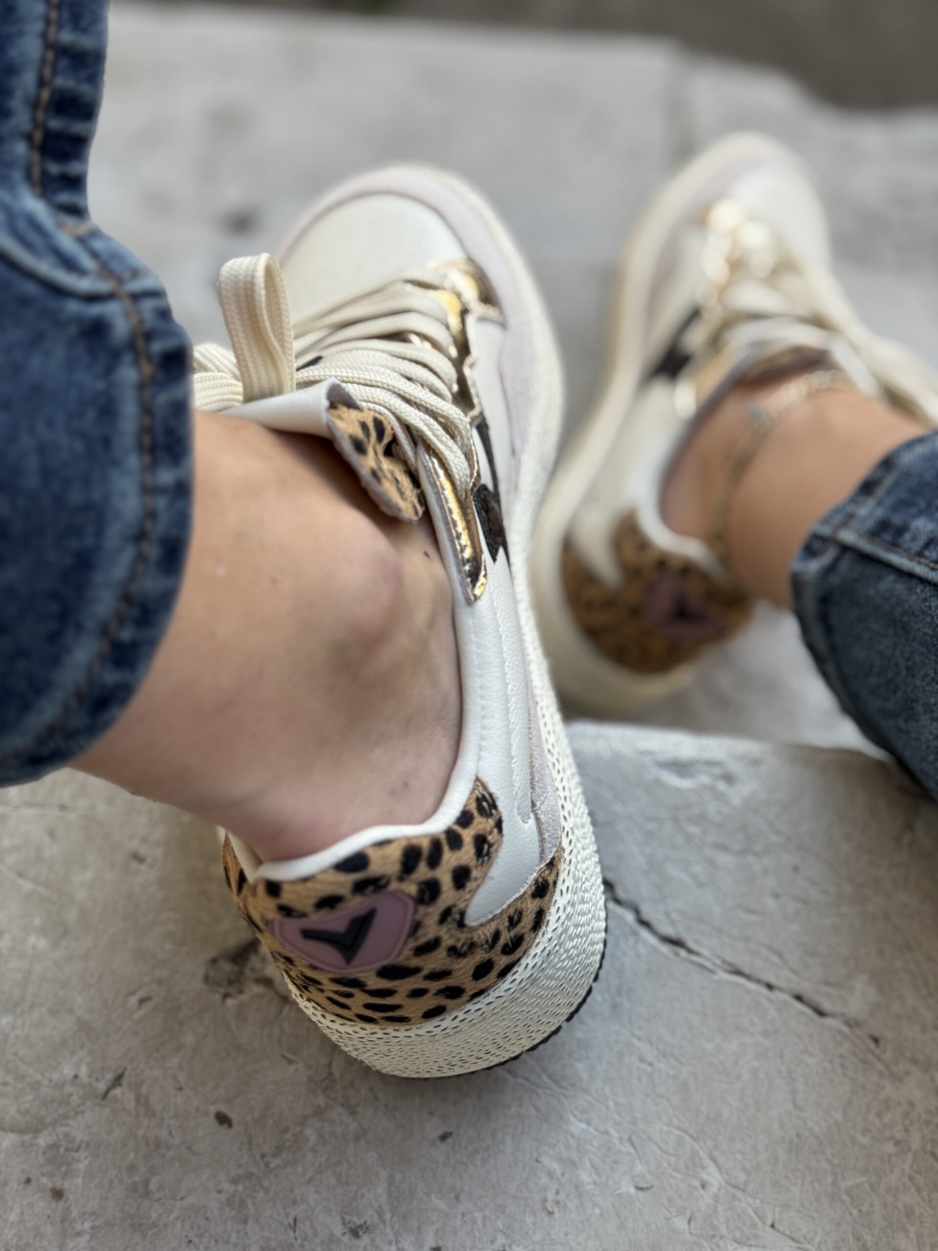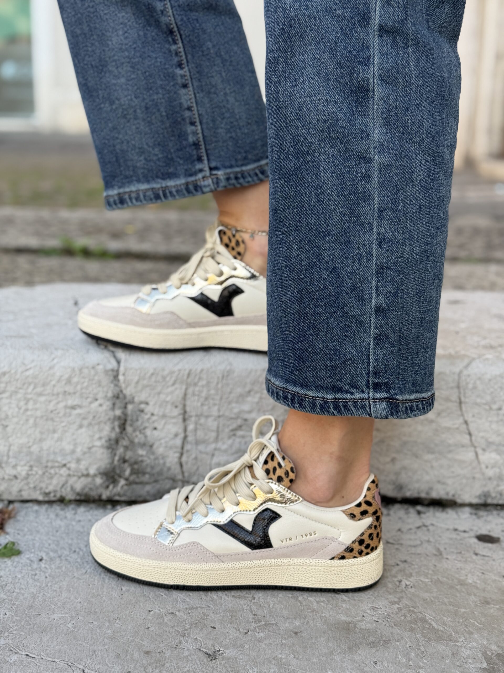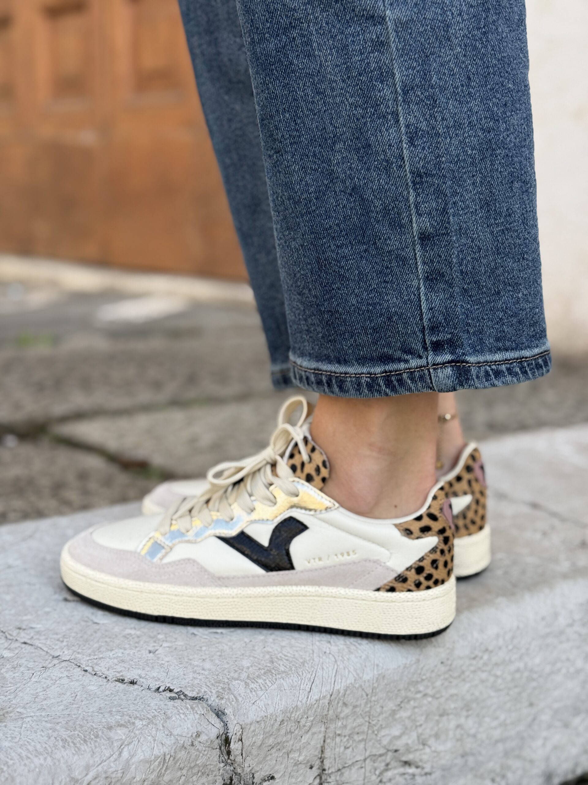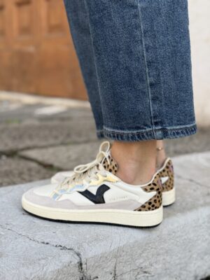 Dal gusto vintage e molto comode, così sono le sneakers da donna SMASH-ANIMAL della collezione 1985. Realizzate in pelle bovina con inserti in crosta di pelle bovina, con finitura stampa animale e pelle metalizzata. Incisione della collezione in oro sul lato e etichetta in gomma in rilievo sul retro. Suola in gomma leggermente ambrata con texture ruvida. Includono una soletta ergonomica che si adatta alla forma del piede regalando una sensazione di comfort.