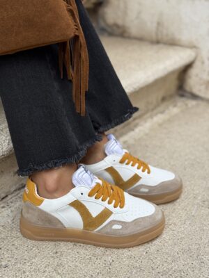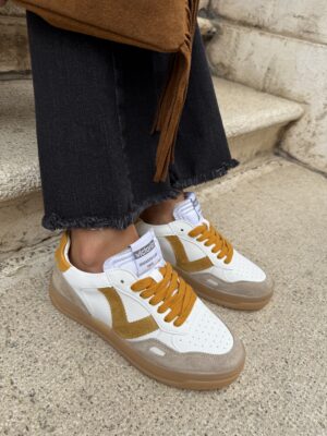 Sneakers unisex prodotte in Spagna in una combinazione di pelle della migliore qualità, certificata LWG (Leather Working Group), che garantisce un processo di concia responsabile, con un uso efficiente di acqua, energia e una gestione sostenibile dei rifiuti, e materiali sintetici.