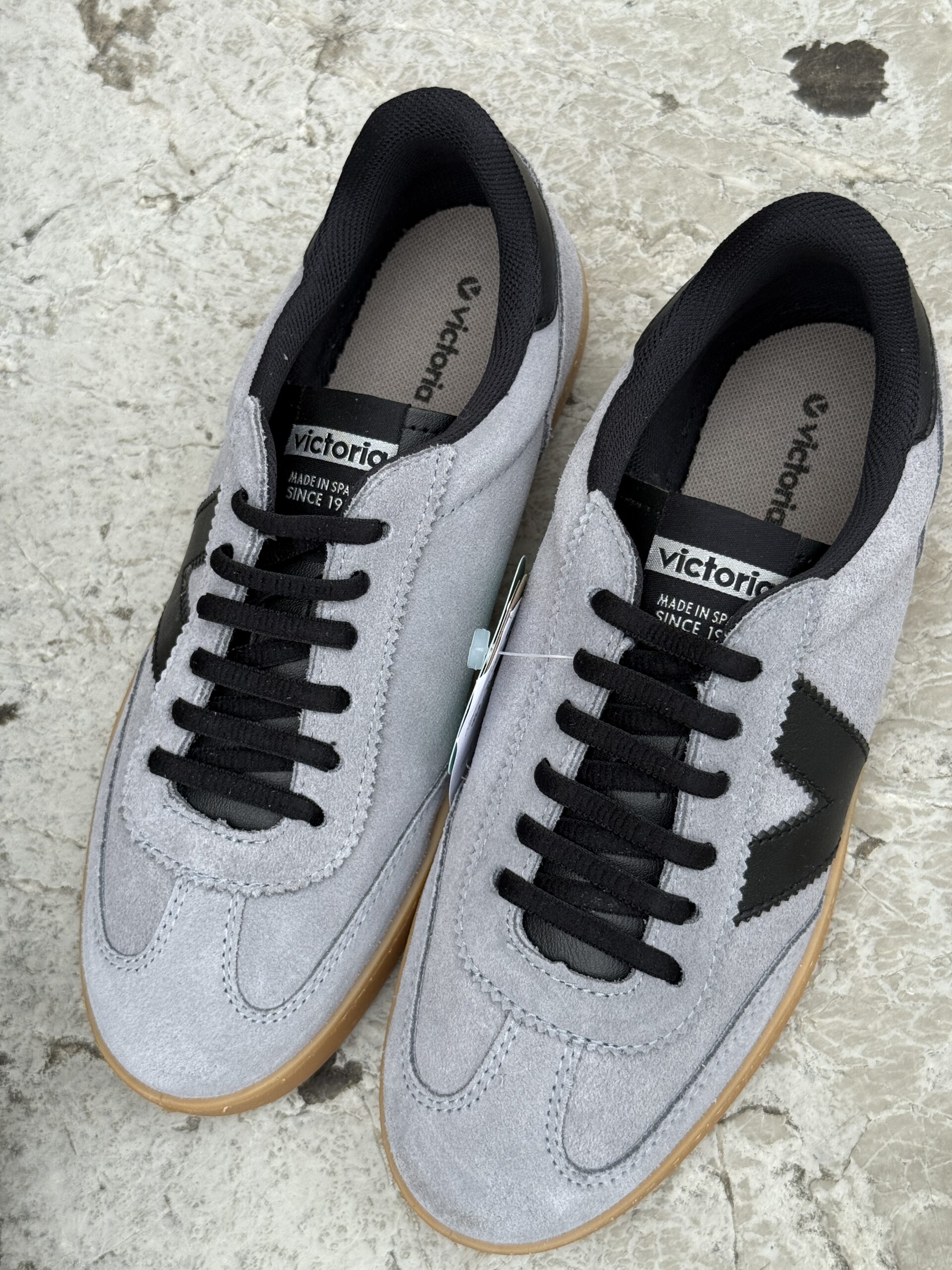 V laterale e inserto posteriore in materiale effetto pelle nero, con chiusura a lacci neri. Cuciture tono su tono. La suola traslucida color caramello aggiunge un tocco di stile retrò. Inoltre, includono una soletta più ergonomica, realizzata con materiali riciclati, che garantisce un comfort superiore a ogni passo.