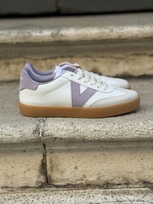 Sneakers da donna realizzate in nylon con inserti sovrapposti in camoscio. V laterale di Victoria in effetto pelle bianca a contrasto. Chiusura con lacci colorati di tipo rotondo con stampa coordinata. Suola bicolore in gomma con battistrada dentellato in EVA color caramello. Soletta estraibile.