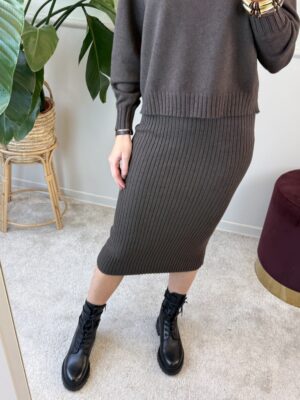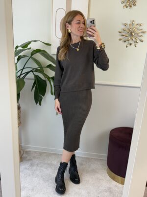 Abito midi Nero a coste con fiocco in vita Molly 836